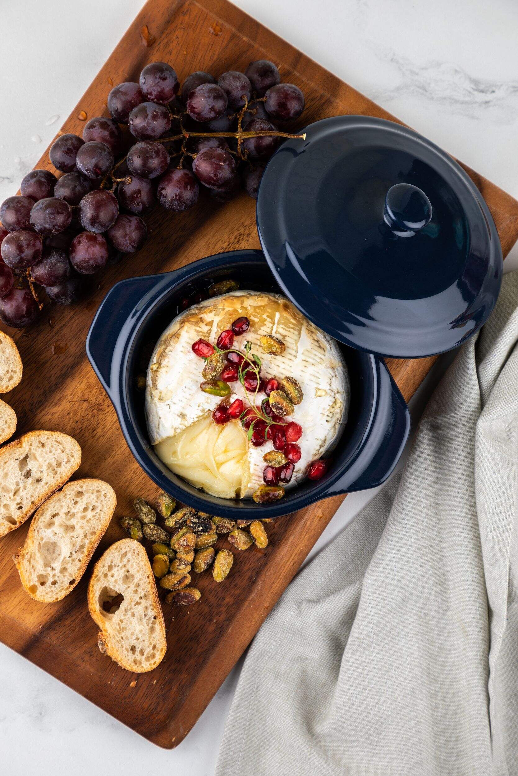 The MASTER Chef Stoneware Brie Baker retains heat and moisture during the cooking process and beyond