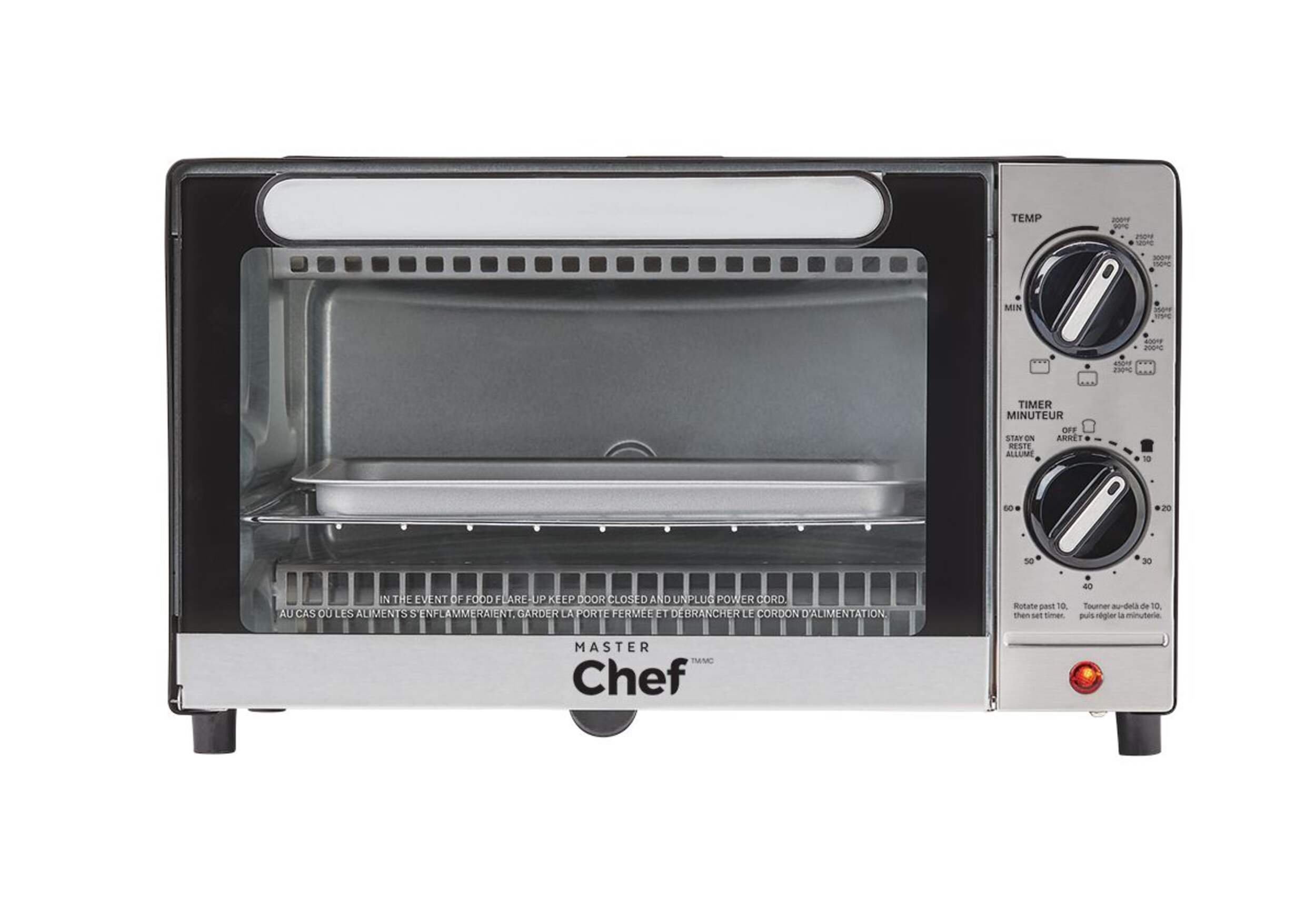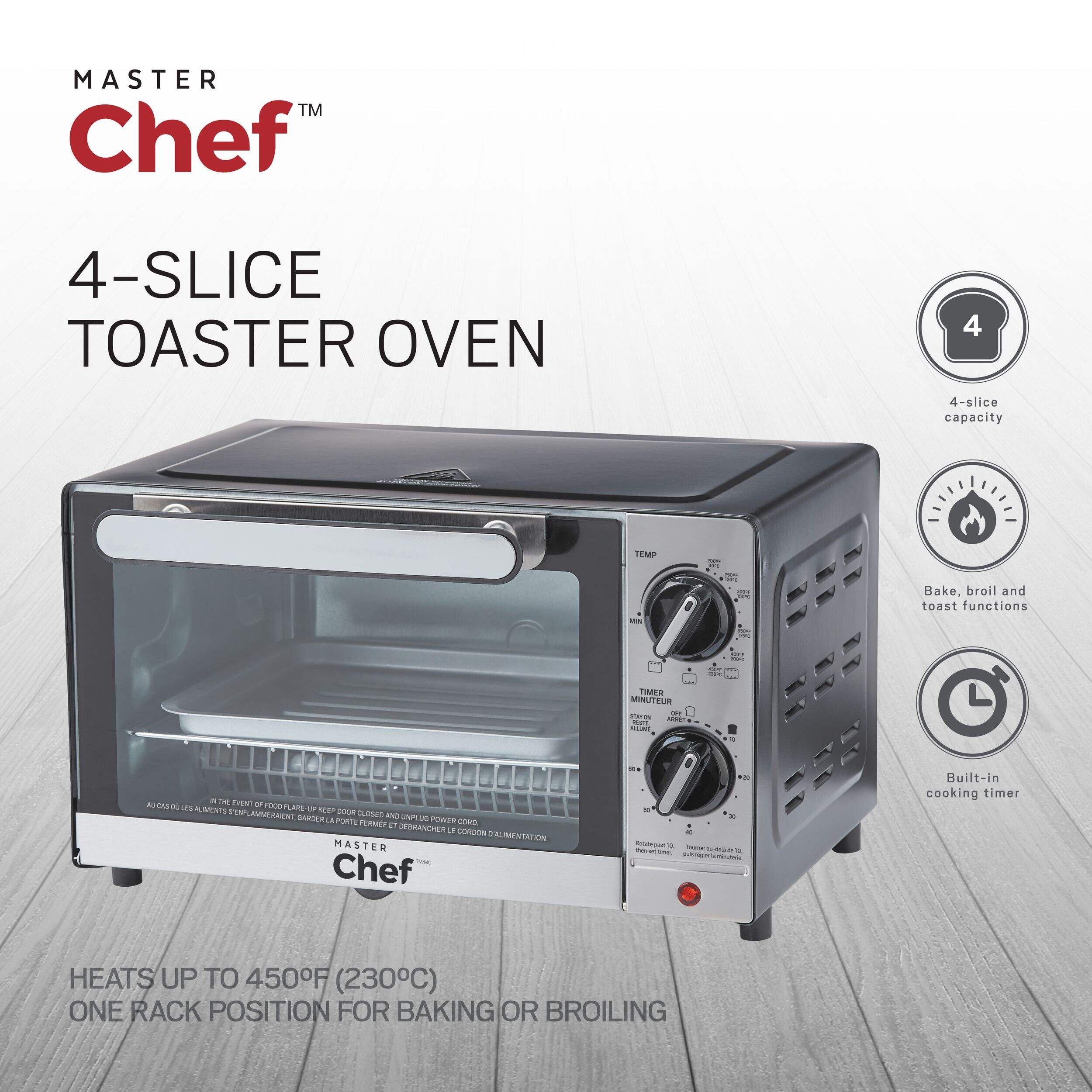 The MASTER Chef Stainless Steel Toaster Oven offers a compact yet versatile cooking solution with three key functions: bake, broil, and toast. With its 4-slice capacity, this toaster oven is perfect for small households, dorms, or campers. Its interior features three stainless steel heating elements that ensure even cooking across all modes. Its compact design ensures that it won’t take up too much space, while a removable crumb tray simplifies cleaning after every use.