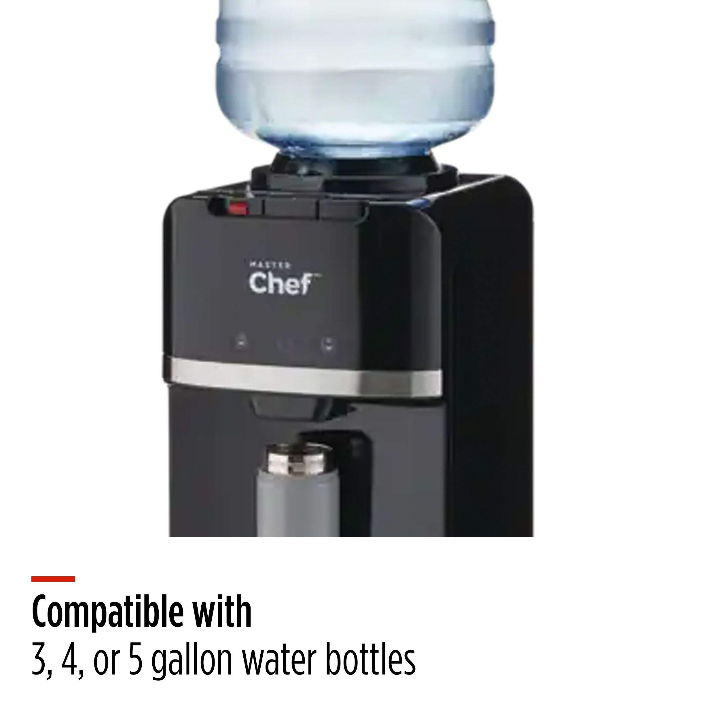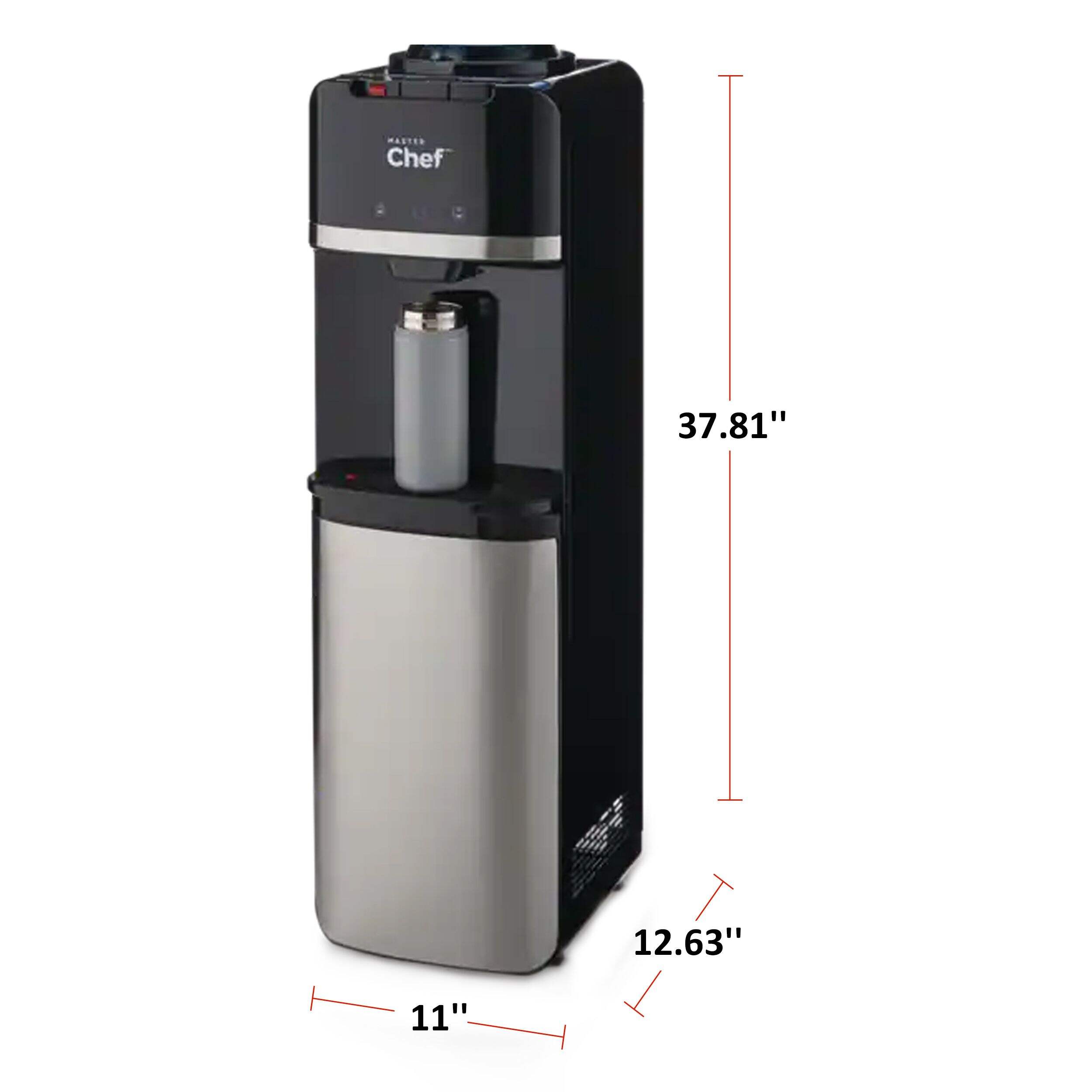 Stay hydrated at home or work using the MASTER Chef Top Load Water Cooler, designed for convenience and efficiency. With high-flow water output and options for both hot and cold water, this cooler makes it easy to enjoy a refreshing drink or quickly refill your cup. Its spacious fill area accommodates mugs, glasses and water bottles of all sizes. The removable drip tray and anti-leak bottle collar help prevent spills, while the child safety lock prevents accidental hot water dispensing. Featuring a classic, clean design, this water cooler blends seamlessly with any kitchen or office setup.
