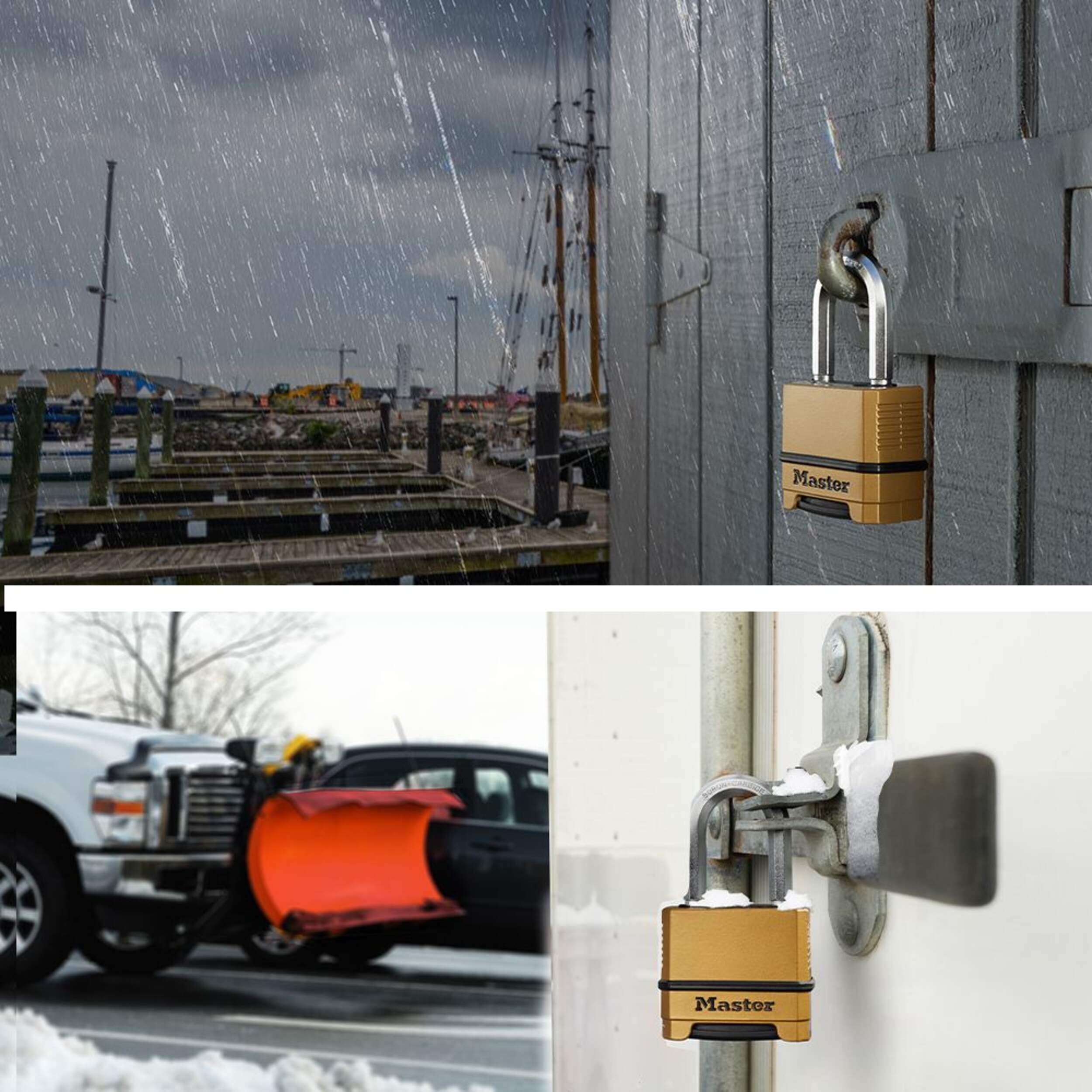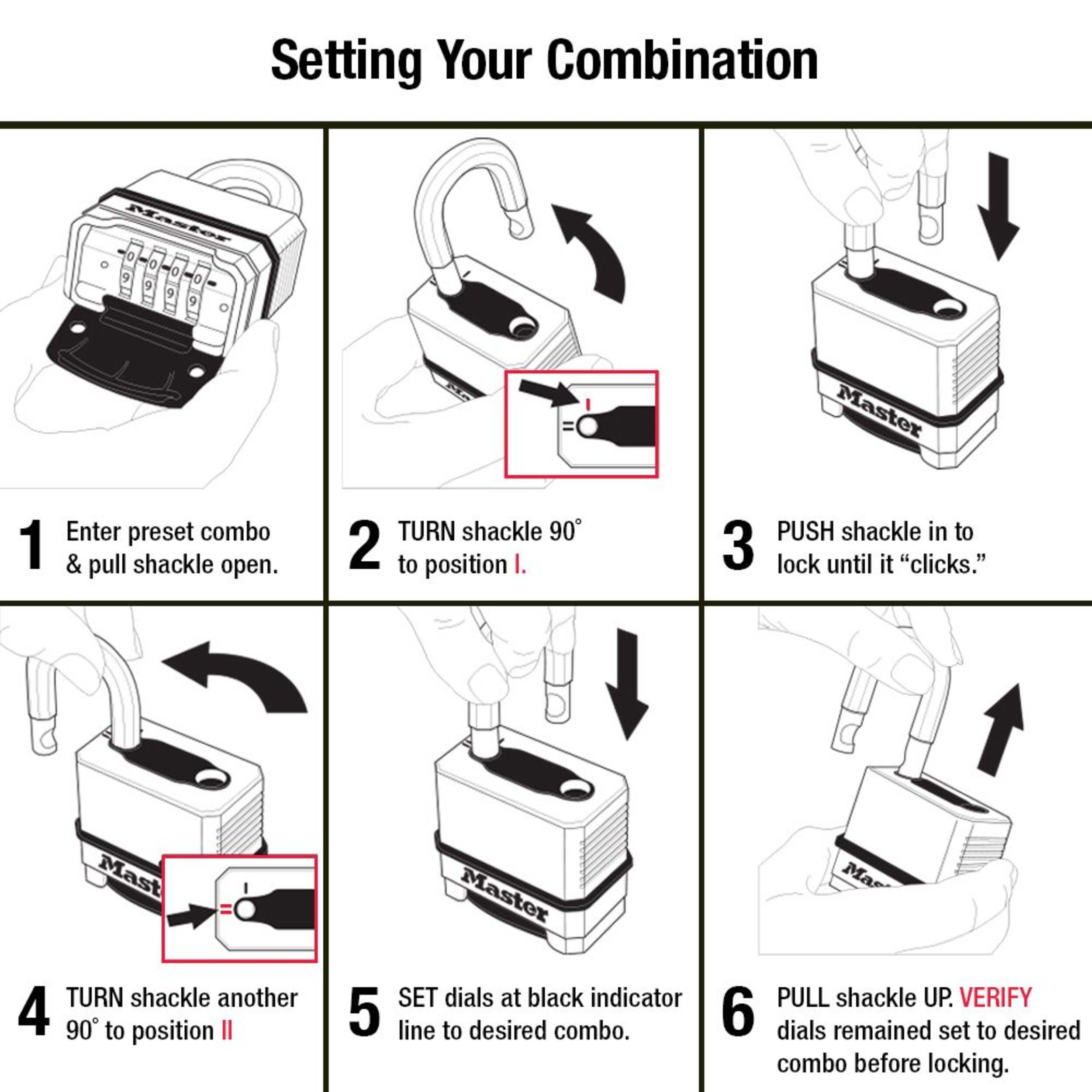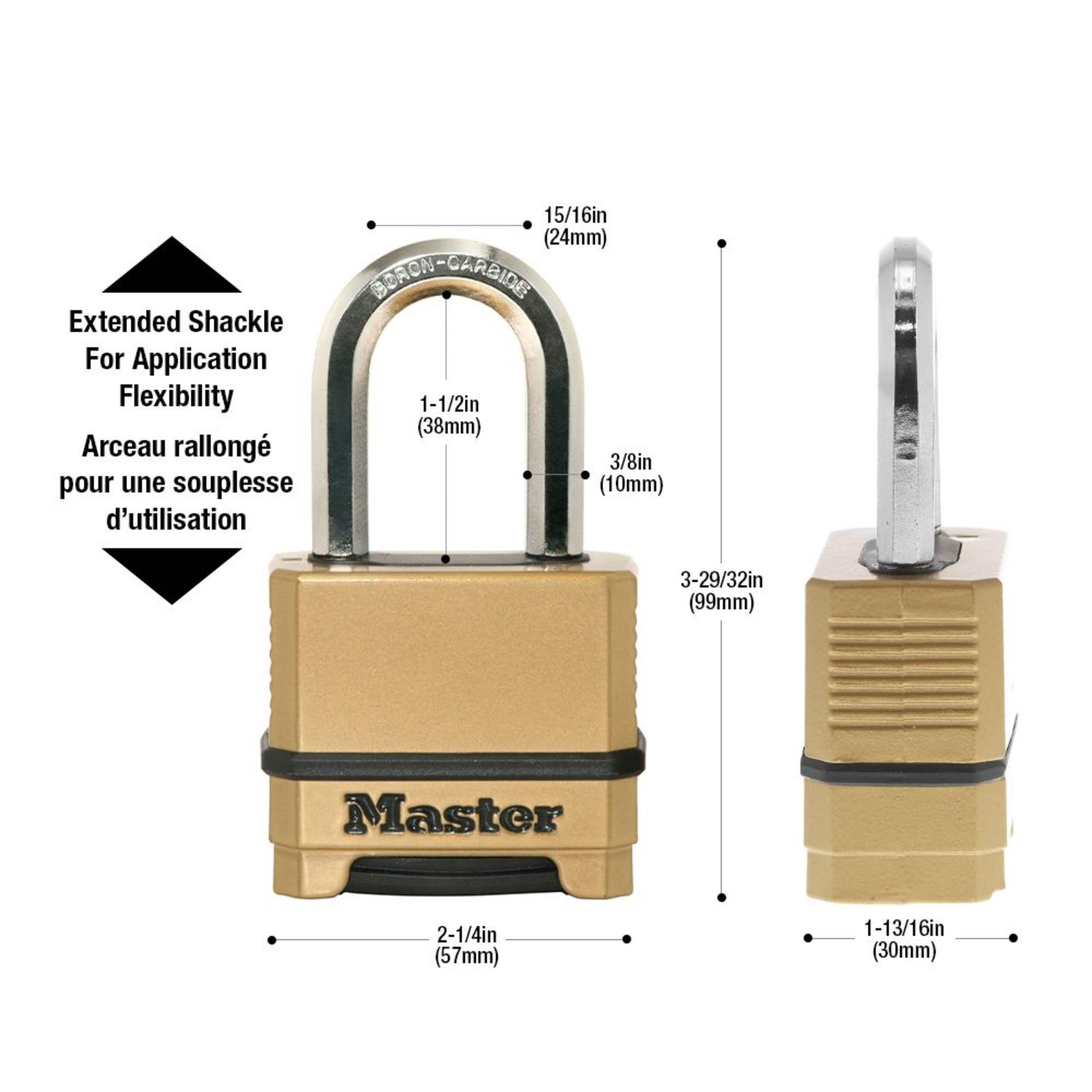 The Master Lock 51mm Wide Resettable Combination Magnum Padlock offers superior security and durability for indoor and outdoor use. Featuring a Tough-Cut™ boron-carbide shackle, it is 50% harder than hardened steel. Providing maximum resistance to cutting and sawing, it also includes a reinforced bumper to prevent scratches. This padlock allows you to set your own combination for convenience, making it ideal for securing storage units, fences, lockers, and more.