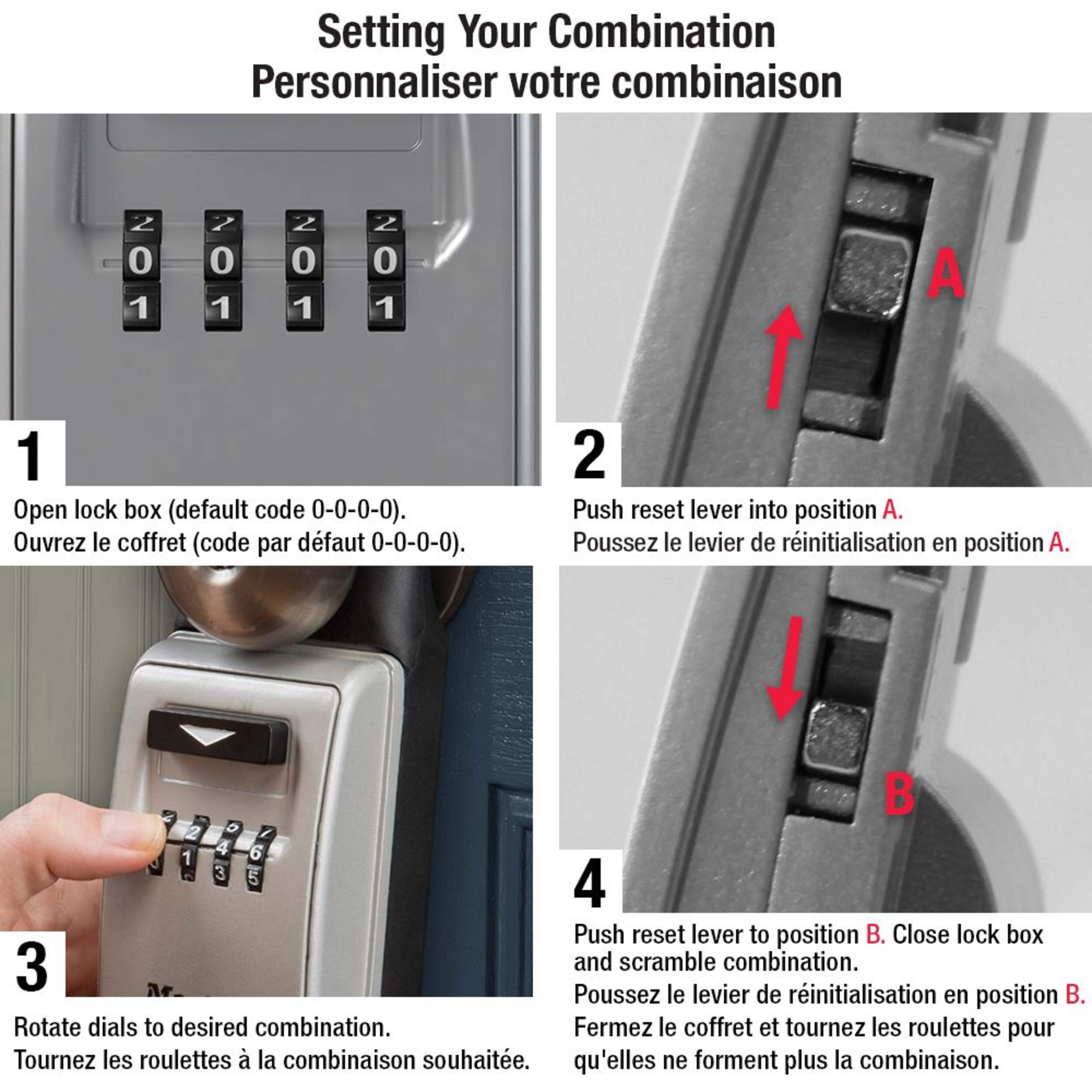 The Master Lock 72mm-Wide Resettable Numeric-Combination 4-Dial Portable Lock Box offers secure and convenient access to keys or access cards, making it ideal for homeowners, realtors, or anyone needing controlled entry. Its adjustable shackle fits most door hardware, ensuring a snug and secure fit, while the portable design allows for versatile use across multiple locations. Built for durability, it ensures reliable performance in any environment.
