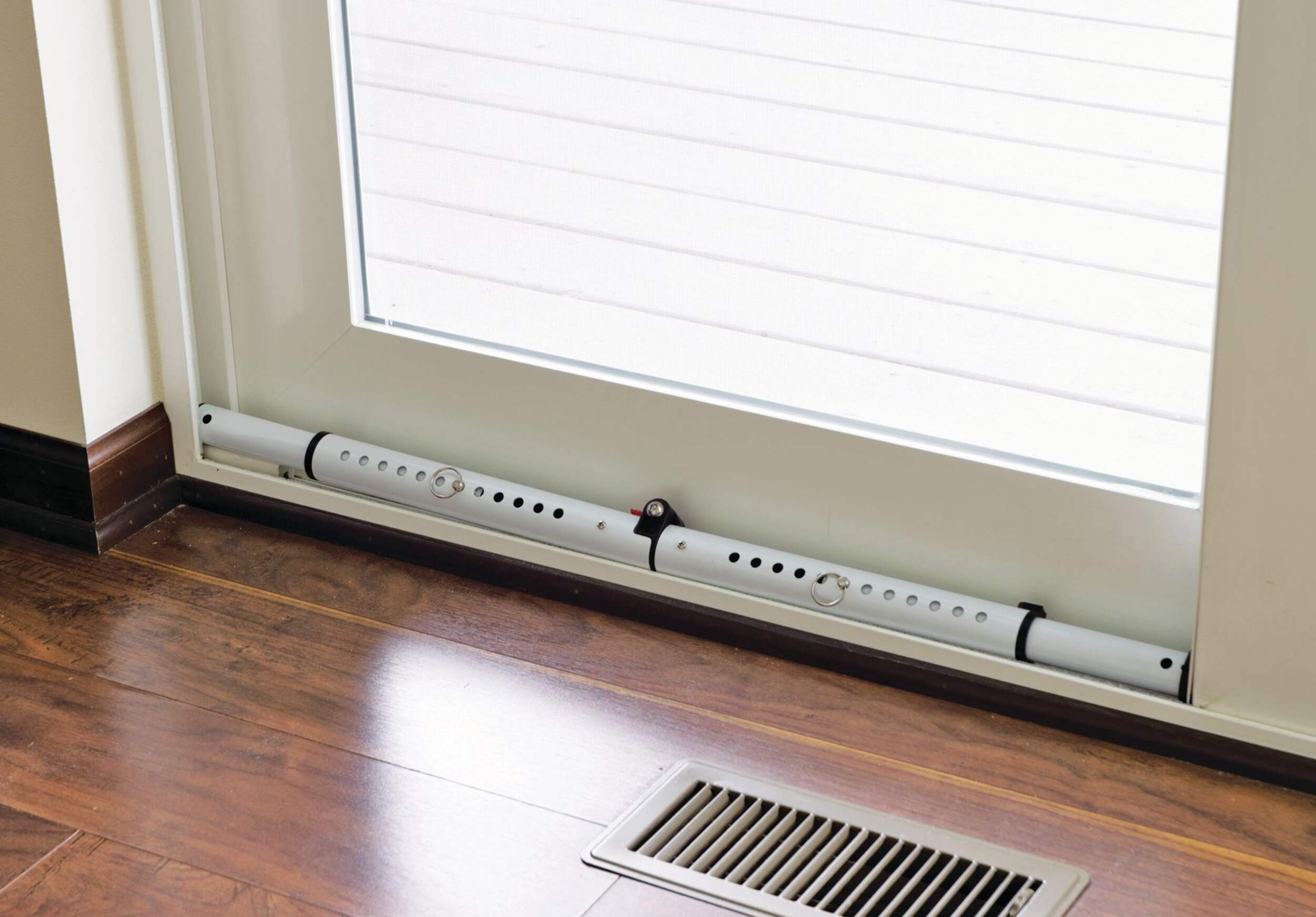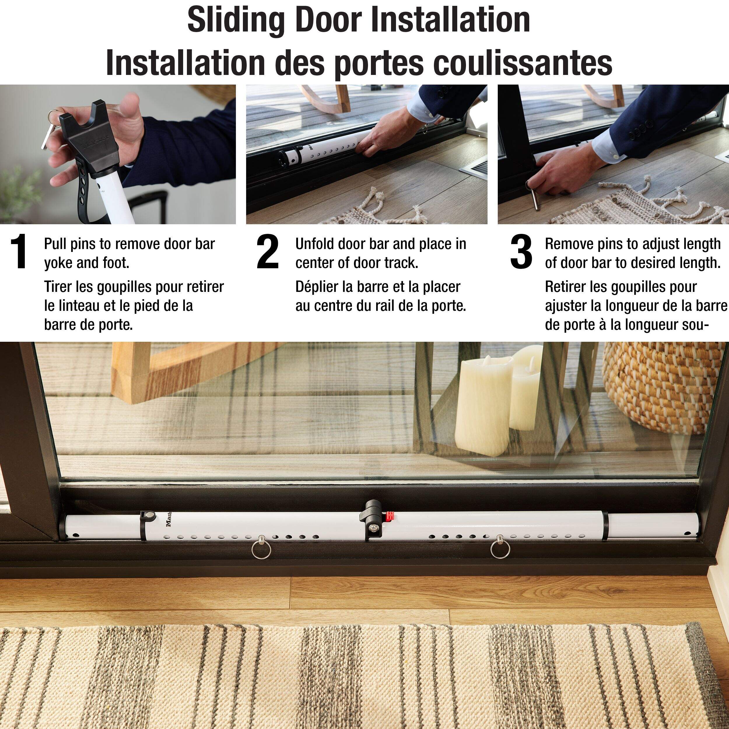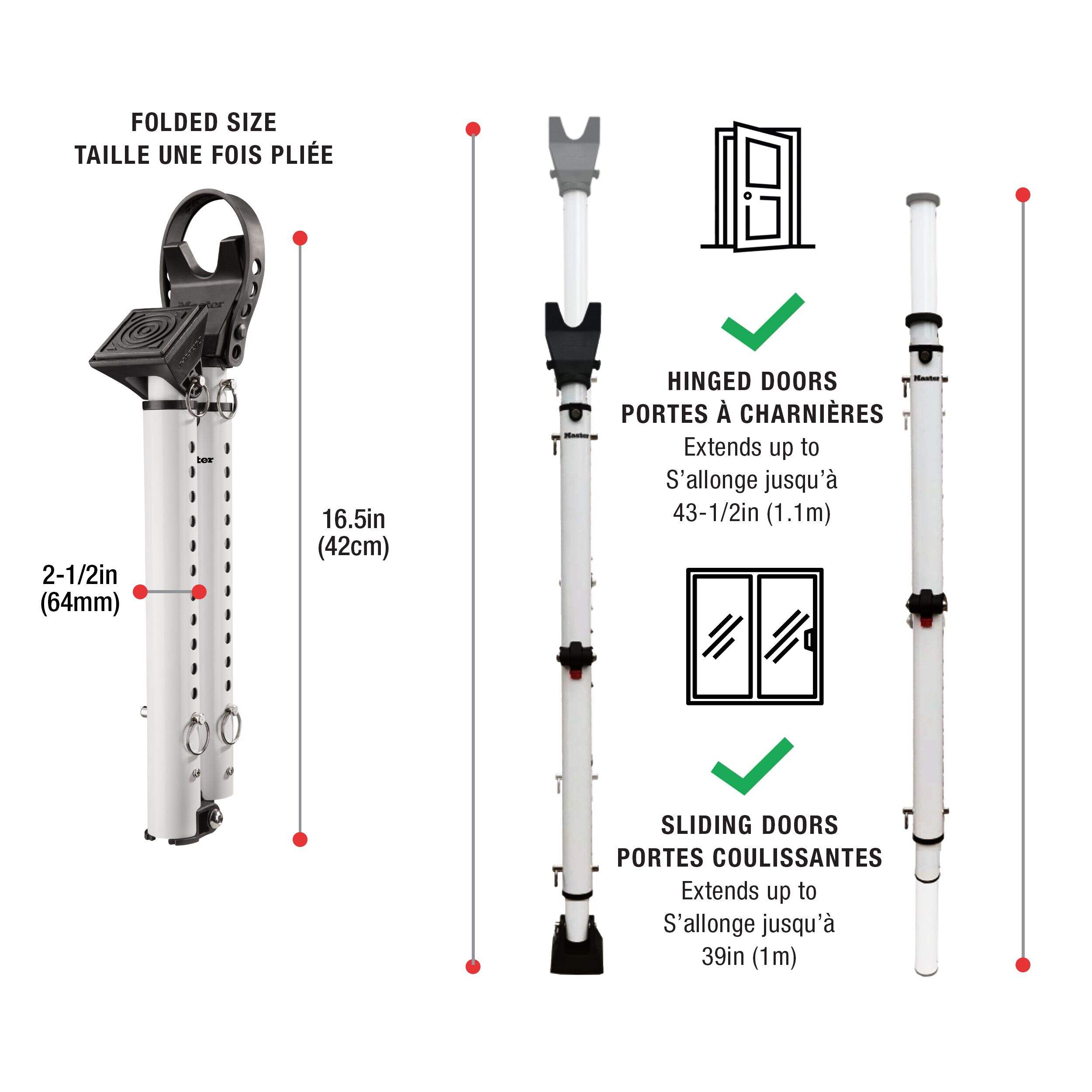Master Lock Compact Folding Door Stopper Security Bar features a compact design that unfolds to fit most sliding and hinged doors