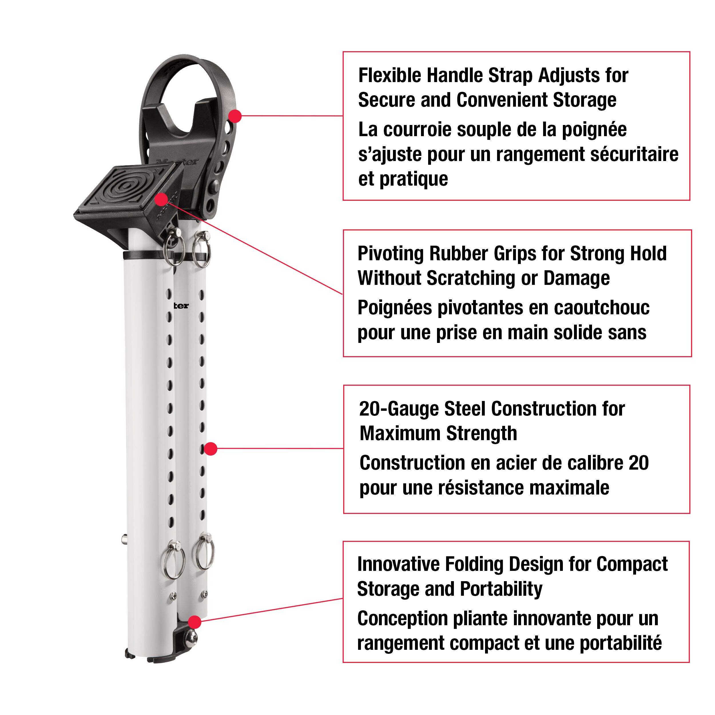 Pivoting rubber grips ensure strong hold without scratching or damaging doors and floors
