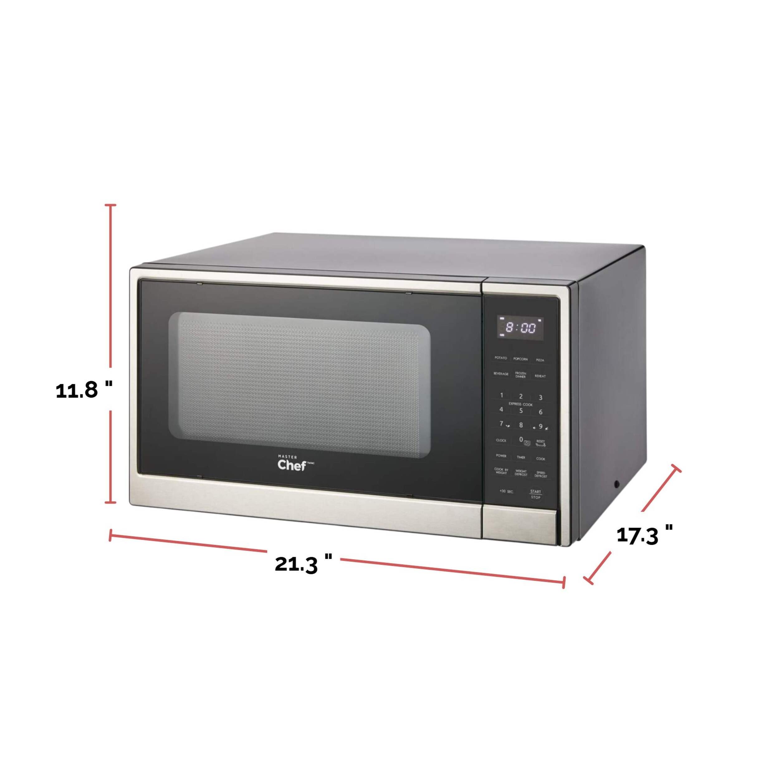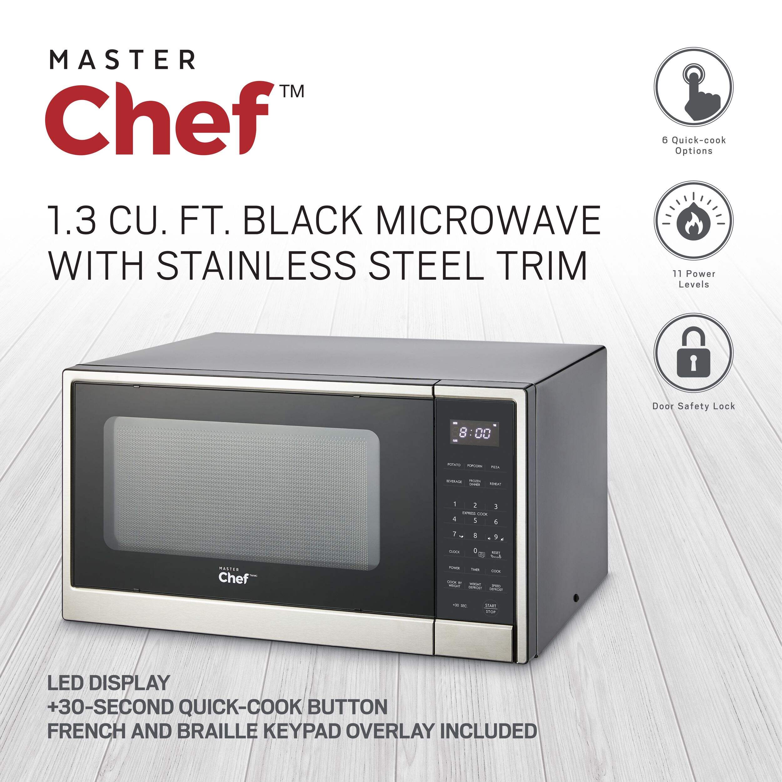 The MasterChef Microwave offers versatile cooking with its adjustable power levels and one-touch options for common meals. Its intuitive design includes quick cooking features, defrost settings, and an energy-saving mode. The stainless steel finish and user-friendly controls make it a stylish and efficient kitchen appliance.