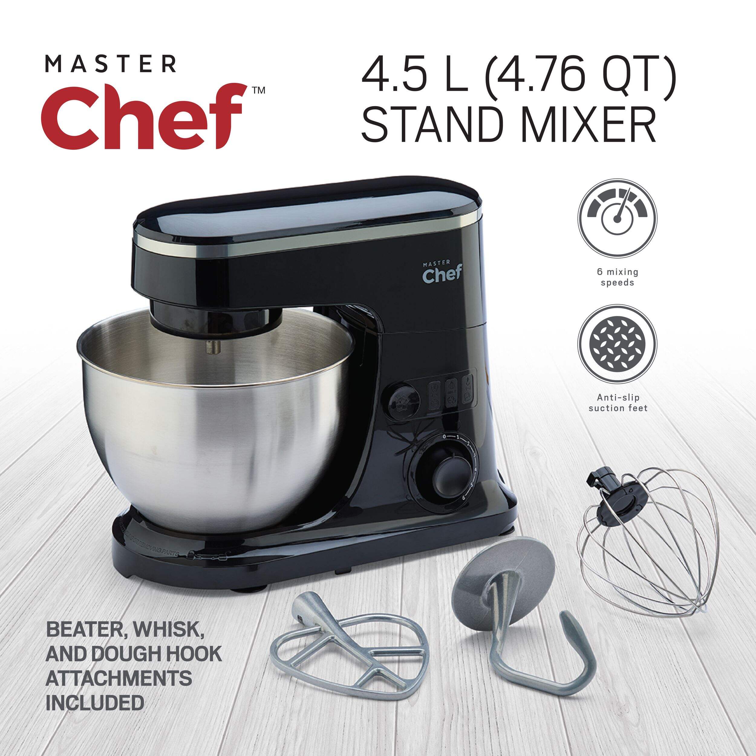 The MasterChef Multi-Function Stand Mixer in black is your ultimate kitchen companion for all your baking and cooking needs. With its sleek design and powerful 350 W motor, this mixer ensures efficient and thorough mixing every time. The tilt-head design allows for easy access to the bowl and attachments, making your culinary tasks a breeze.
