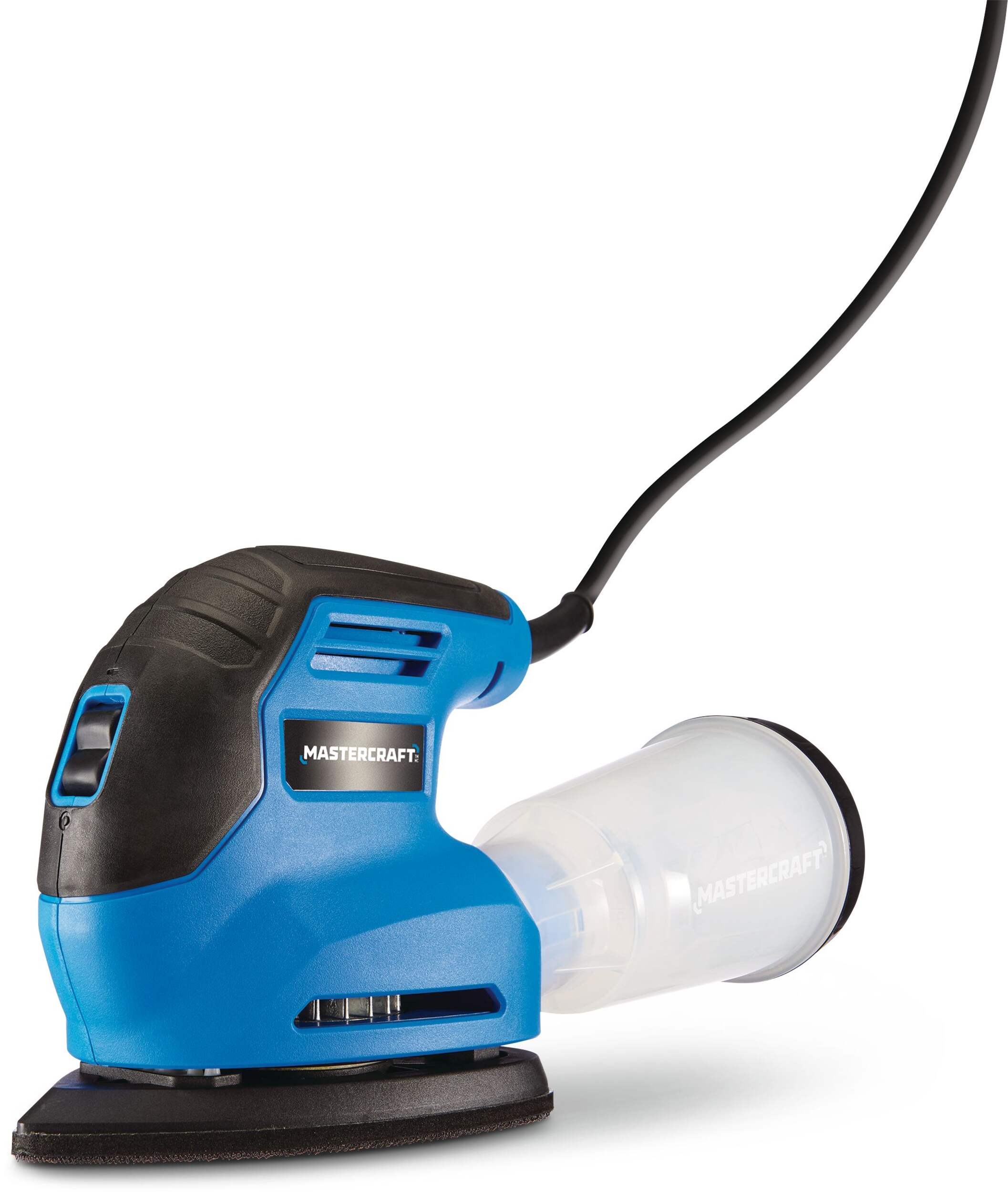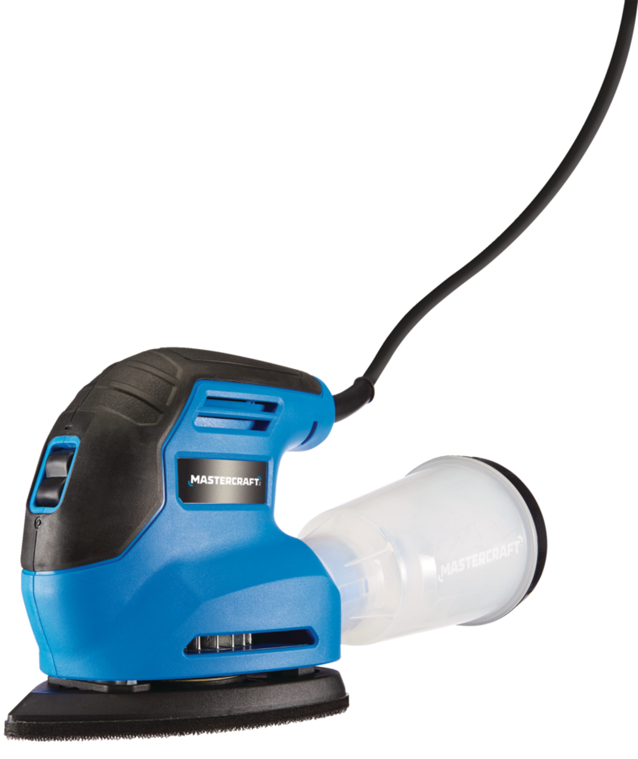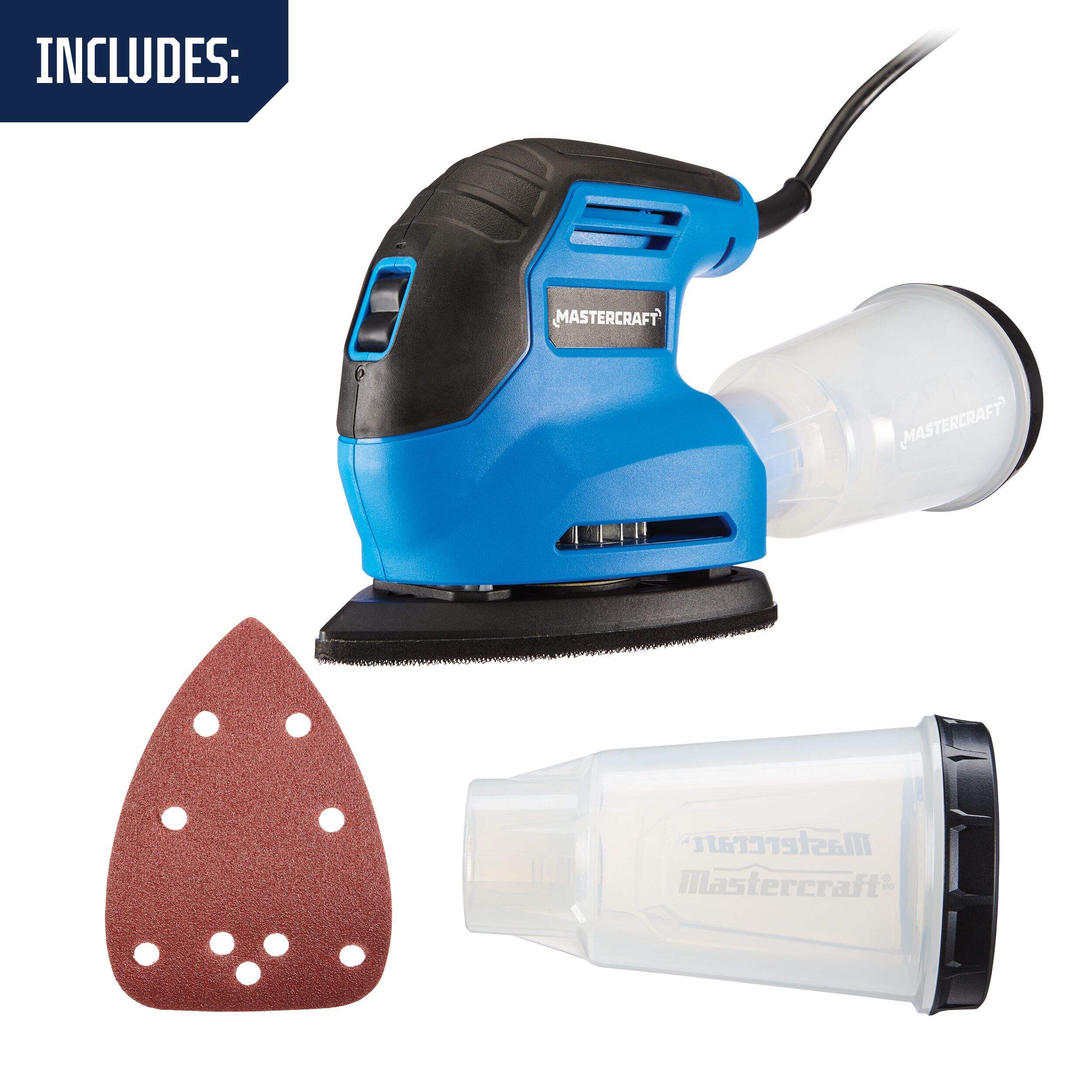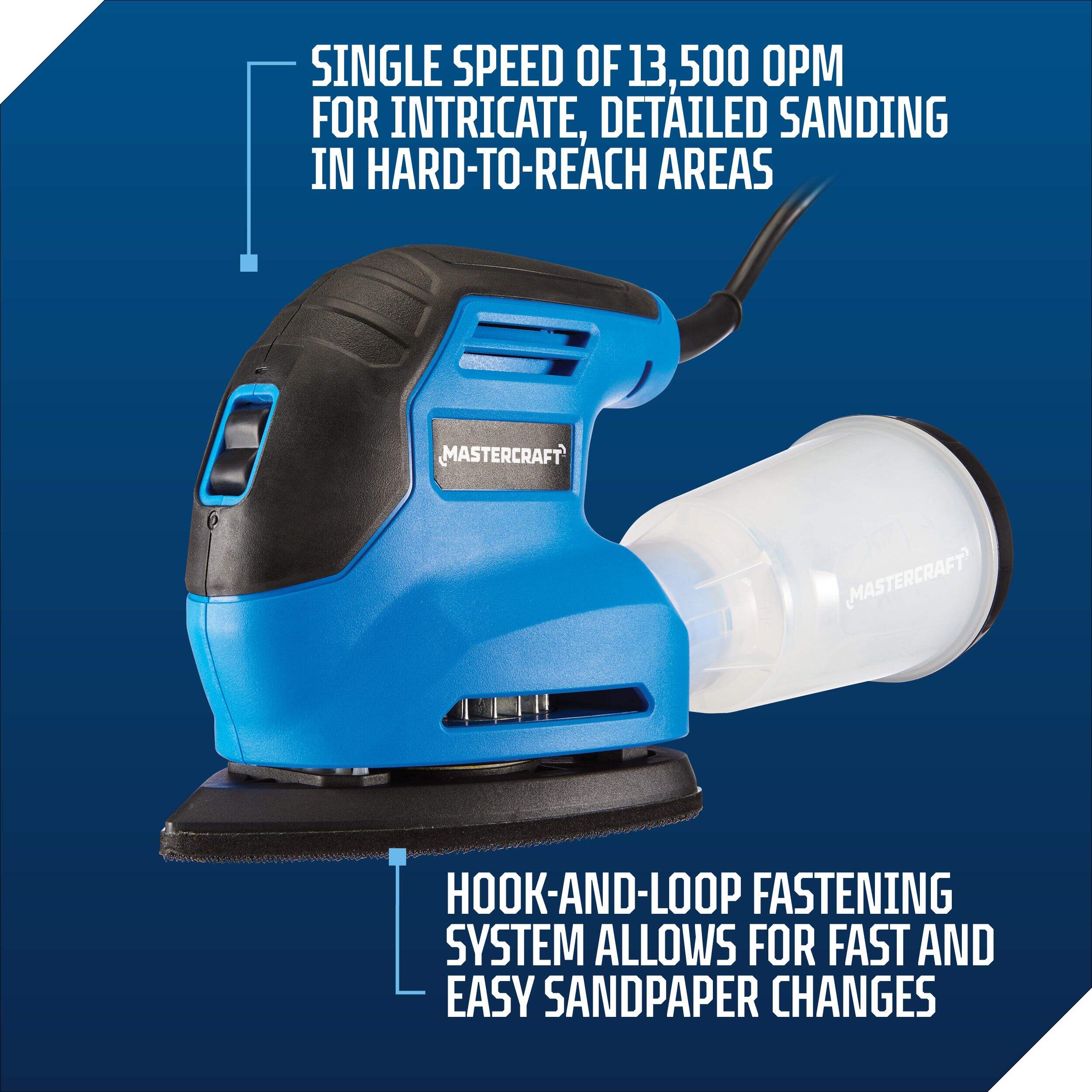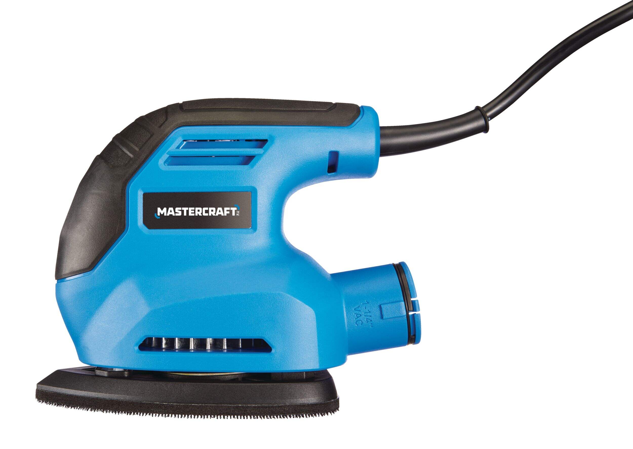 The Mastercraft 1.2A Corded Single Speed Detail Sander is ideal for detailed sanding in awkward or difficult-to-access areas such as between spindles and corners. This corded sander has a special fastening system that lets you swap out sandpaper quickly and effectively. With an ergonomic, perfectly balanced design, this sander cuts down on heavy vibrations for comfortable handling while sanding.