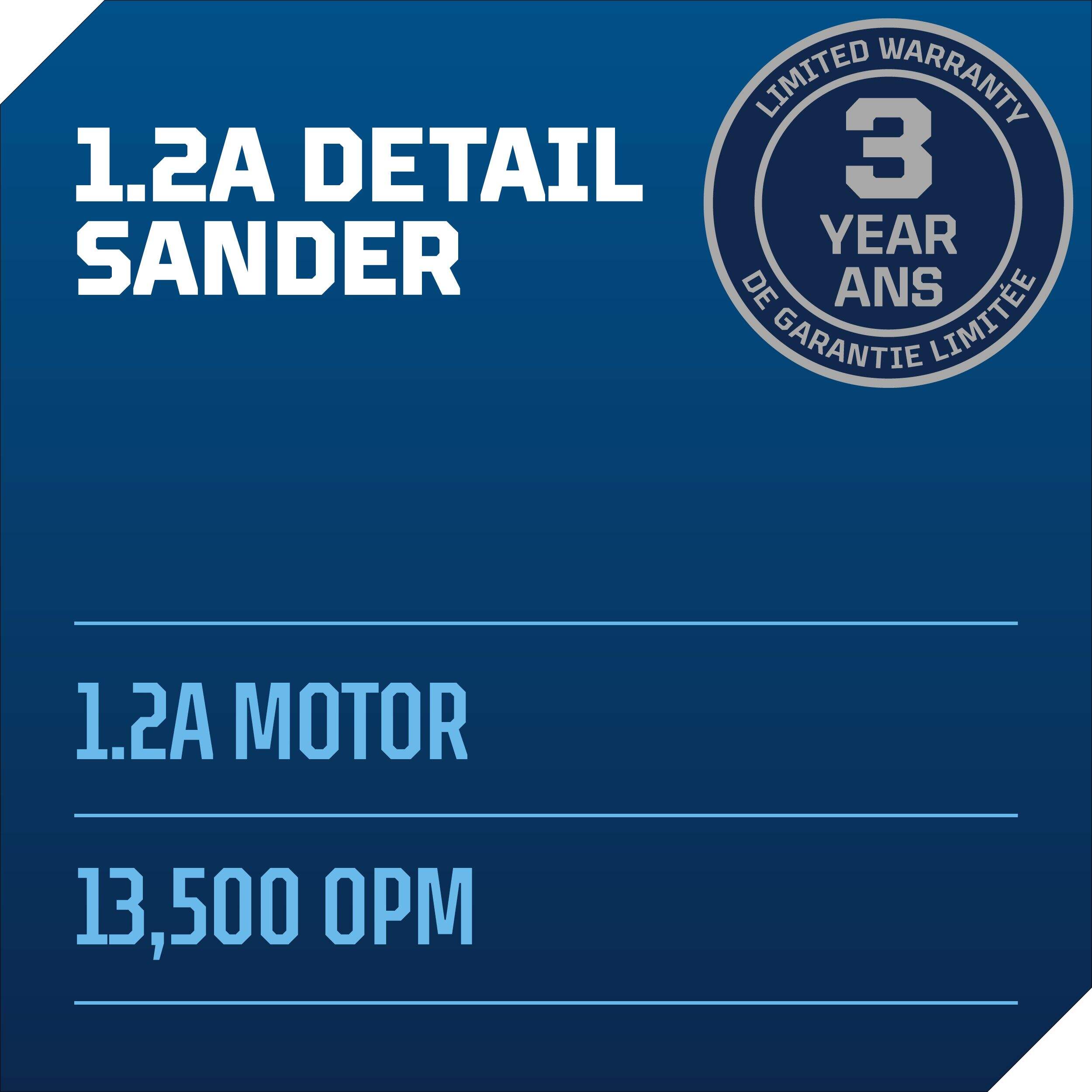 Features a single speed of 13,500 OPM for intricate detail sanding in hard-to-reach areas