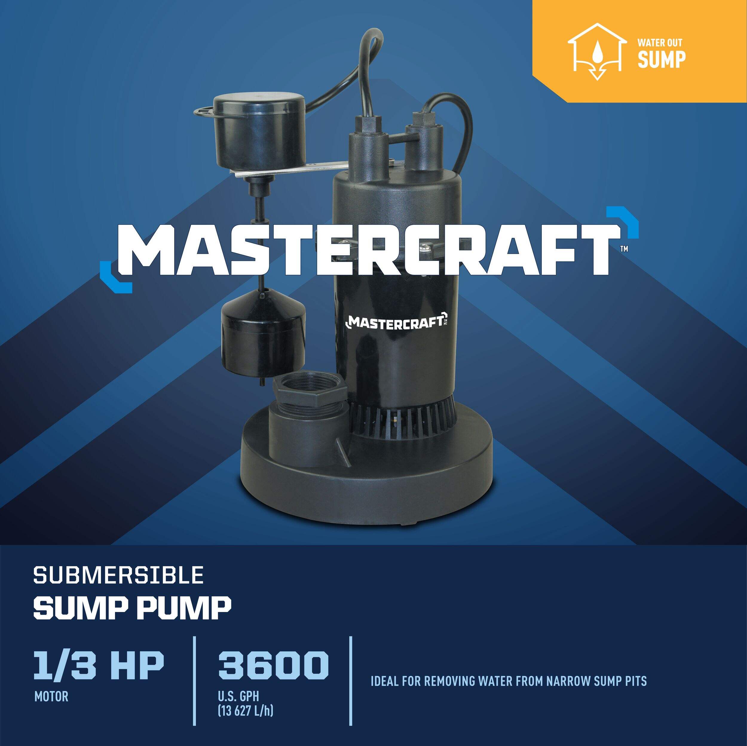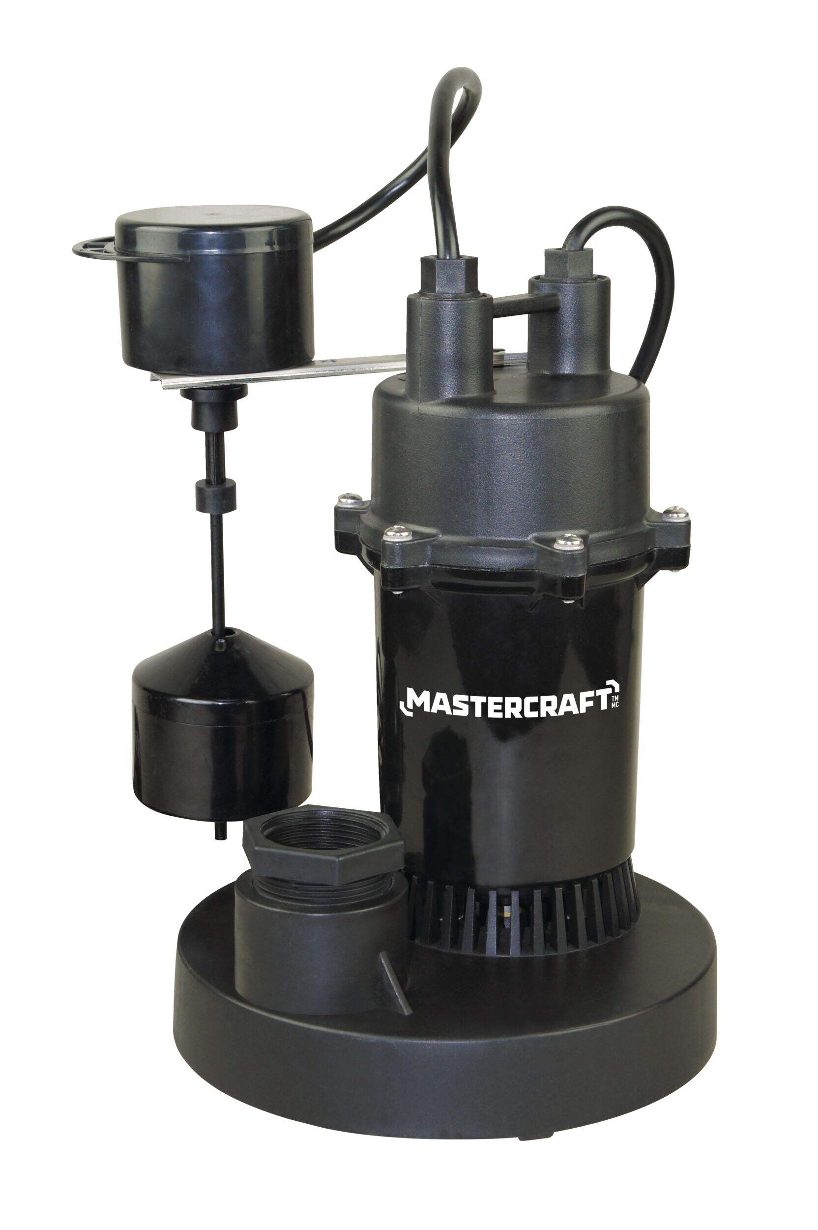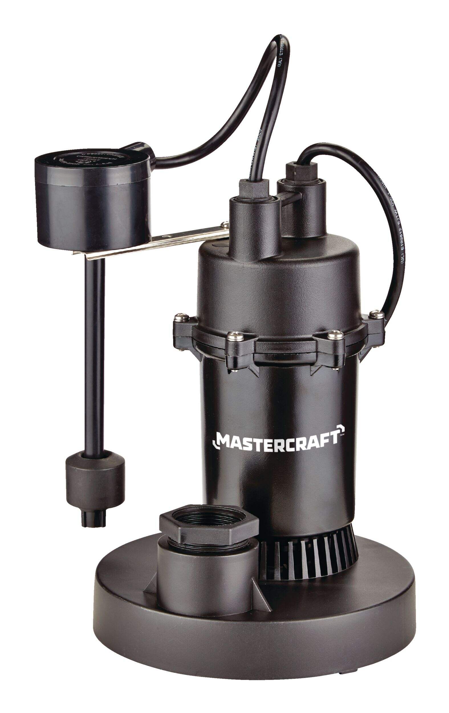 Banish water fast and effectively with the Mastercraft Thermoplastic Sump Pump. This powerful submersible sump pump is designed to silently handle water in sump pits, with an almost whisper-quiet motor that makes it perfect for basements. To prevent overheating, the pump has built-in protection that shuts it off as needed, while its top suction mechanism cuts down on annoying clogs and damaging air locks.