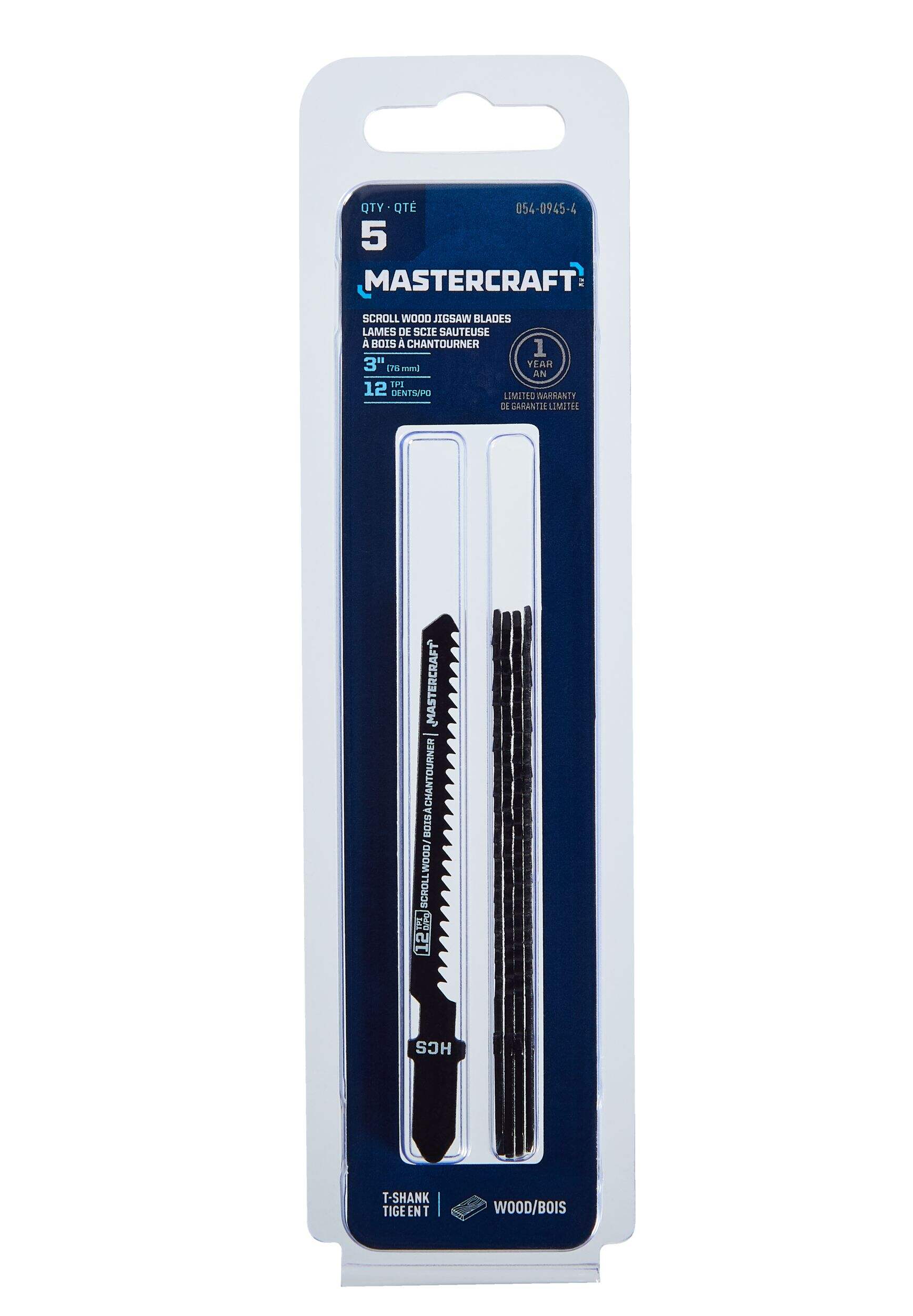 The Mastercraft 3” Scroll Wood Jigsaw Blades 5-Pack features blades with no less than 12 teeth per inch that allow it to scroll cut into various materials