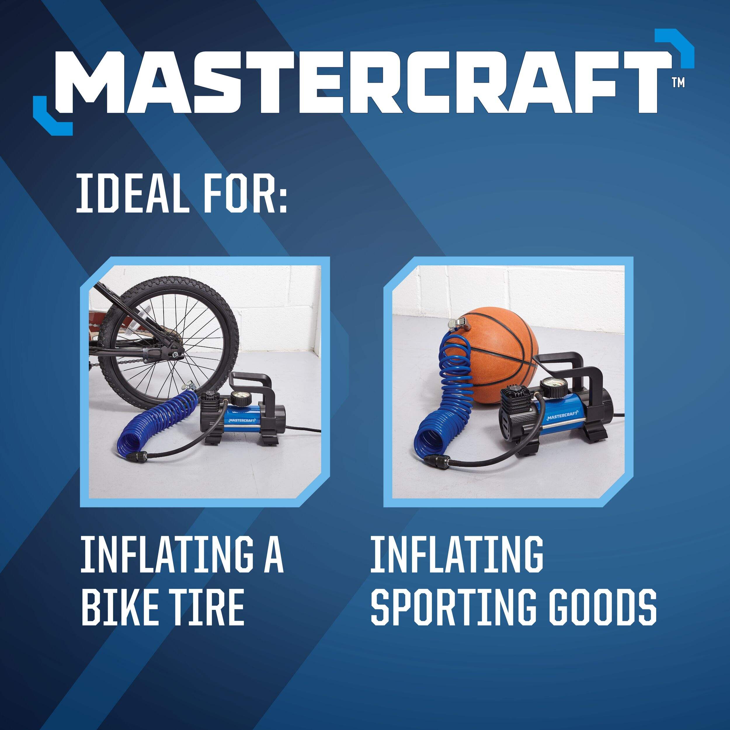 The Mastercraft Portable 120V Inflator with Built-in Analog Pressure Gauge is the ideal tool for quick and easy inflation tasks at home, in the shop, or while camping. Its fewer moving parts ensure durability, allowing it to outlast traditional gear-driven inflators. Perfect for inflating bike tires or sporting goods, the built-in analog pressure gauge provides precise inflation, making it a must-have for any toolkit.