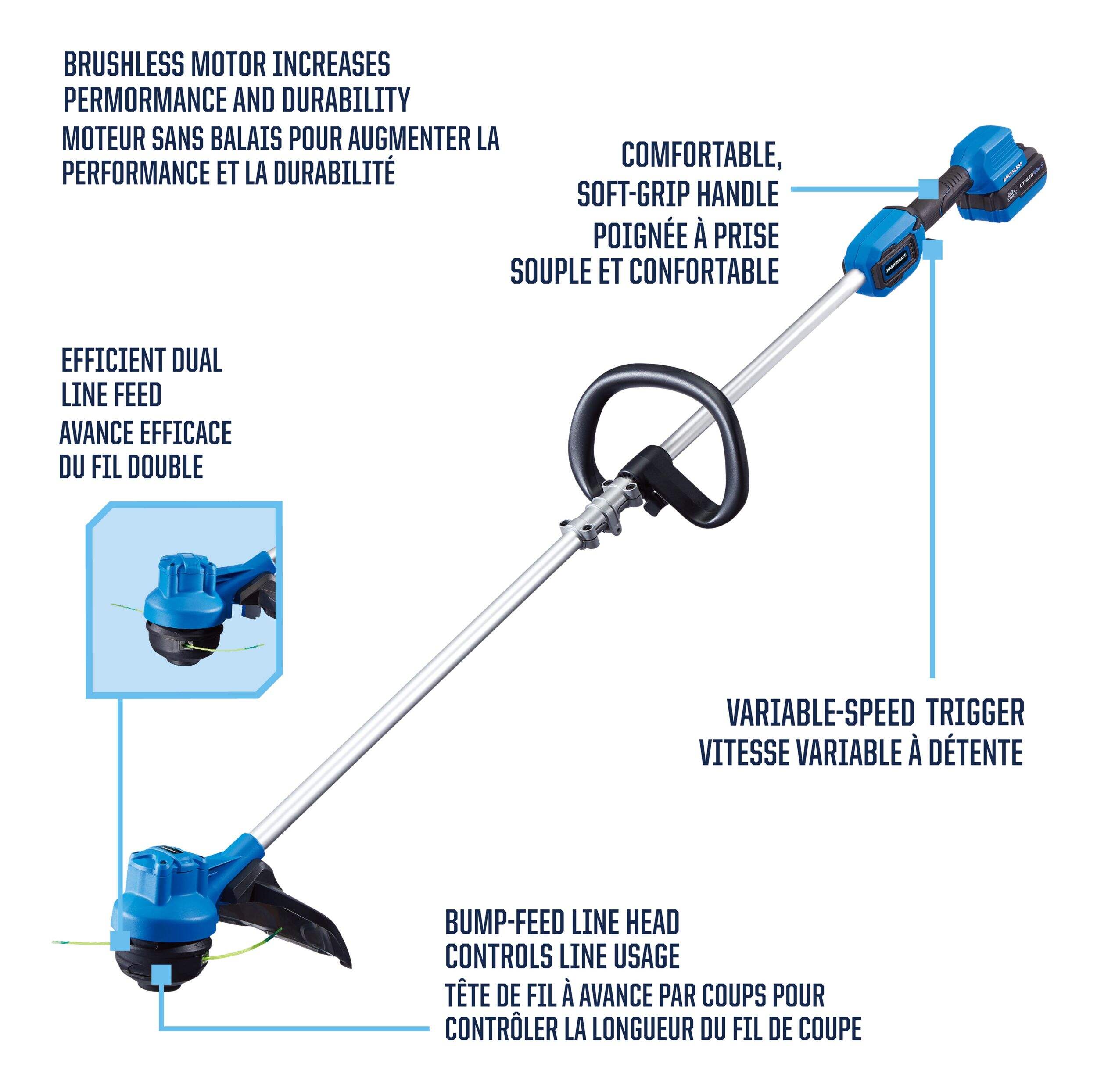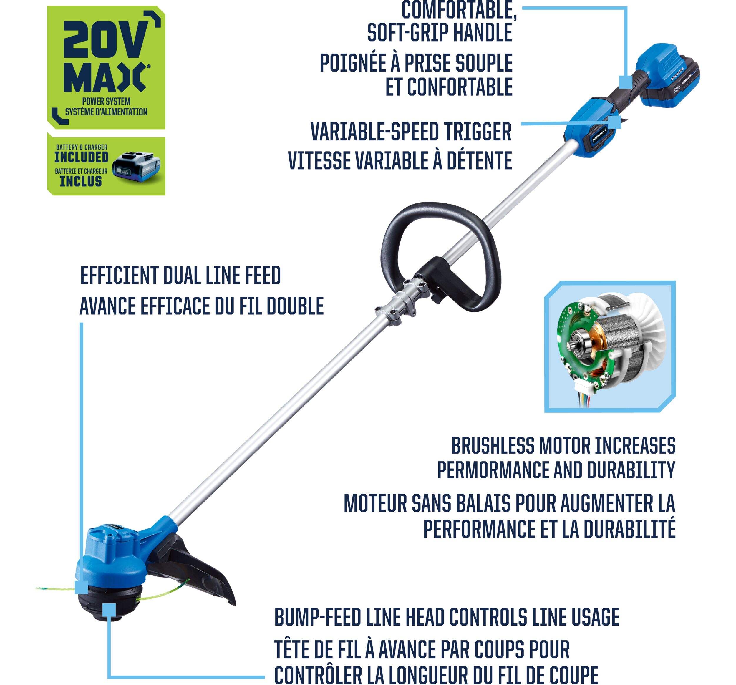 Mastercraft 20V Max Brushless Trimmer is powered by a high-efficiency brushless motor