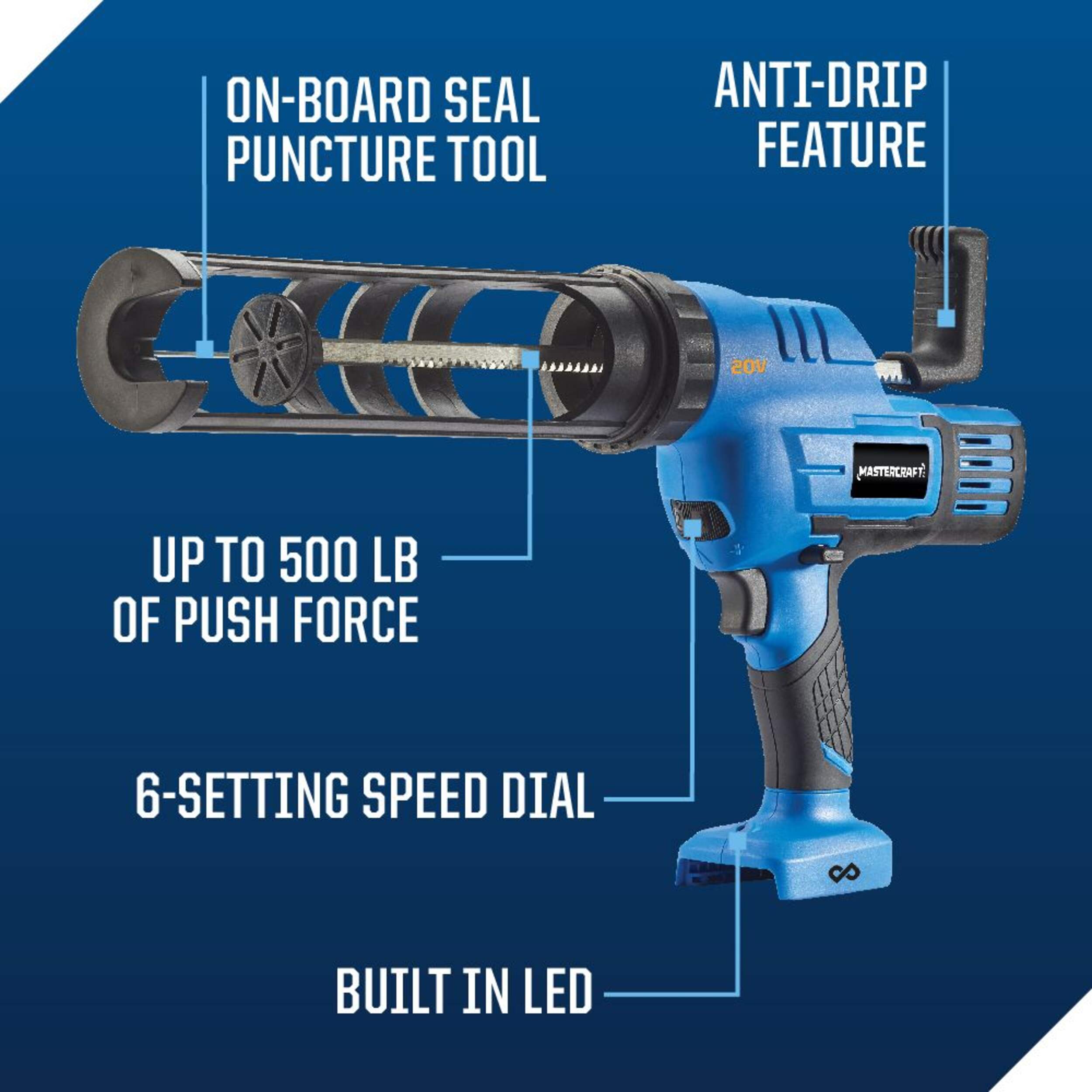 Mastercraft 20V Caulking Gun features over 500 lbs. of push force to handle all caulking jobs