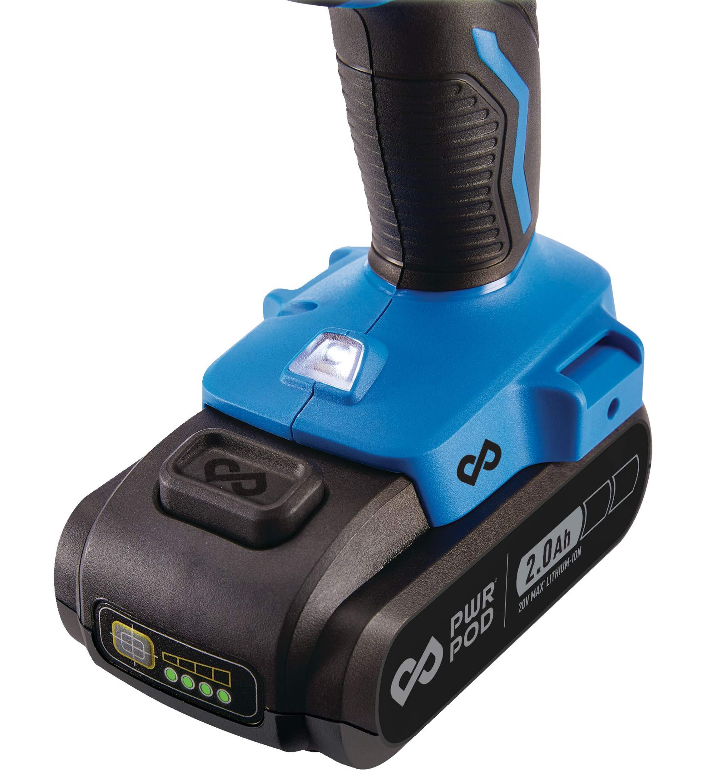 Powered by PWR POD 20V COMPACT 2 Ah battery that can be used across other PWR POD compatible products