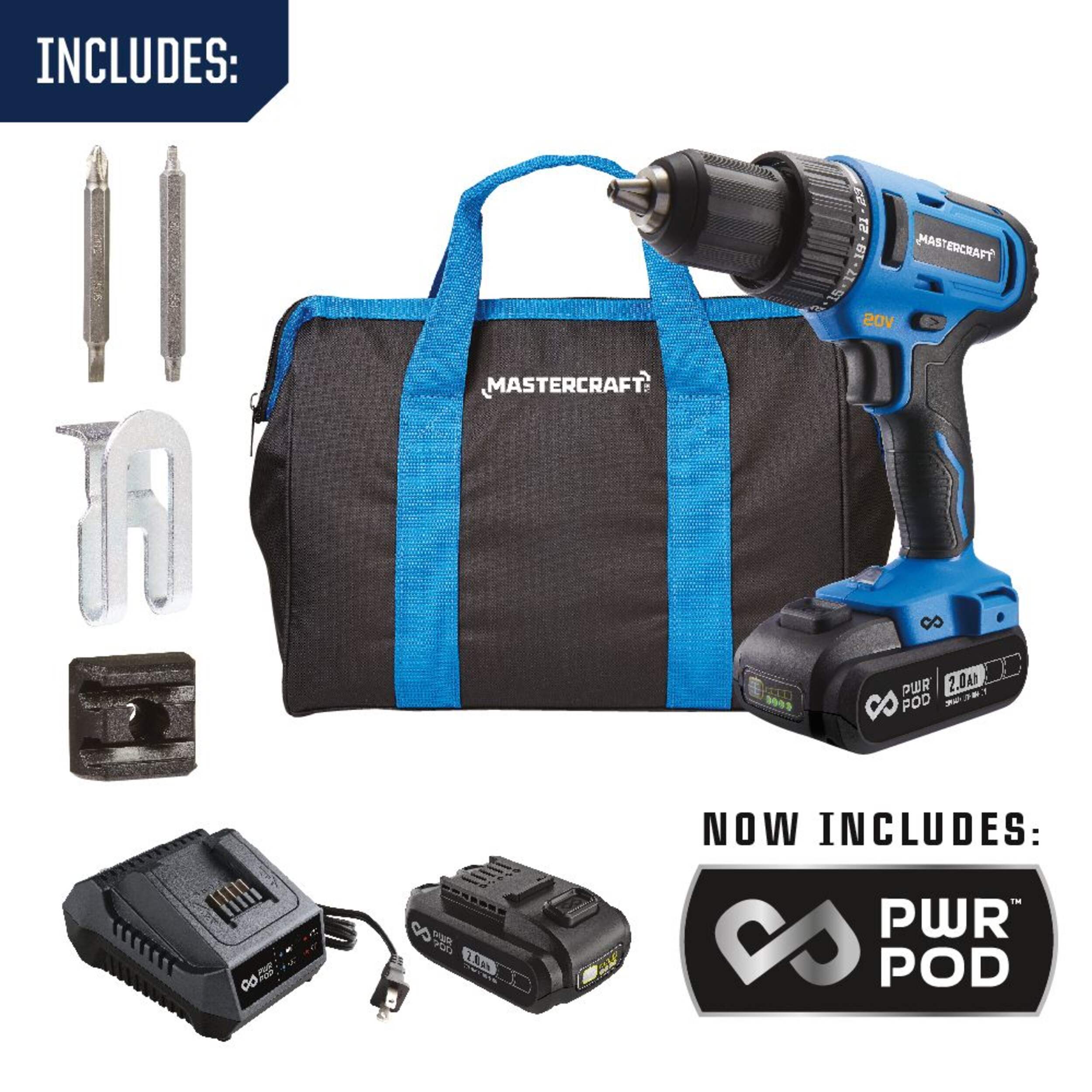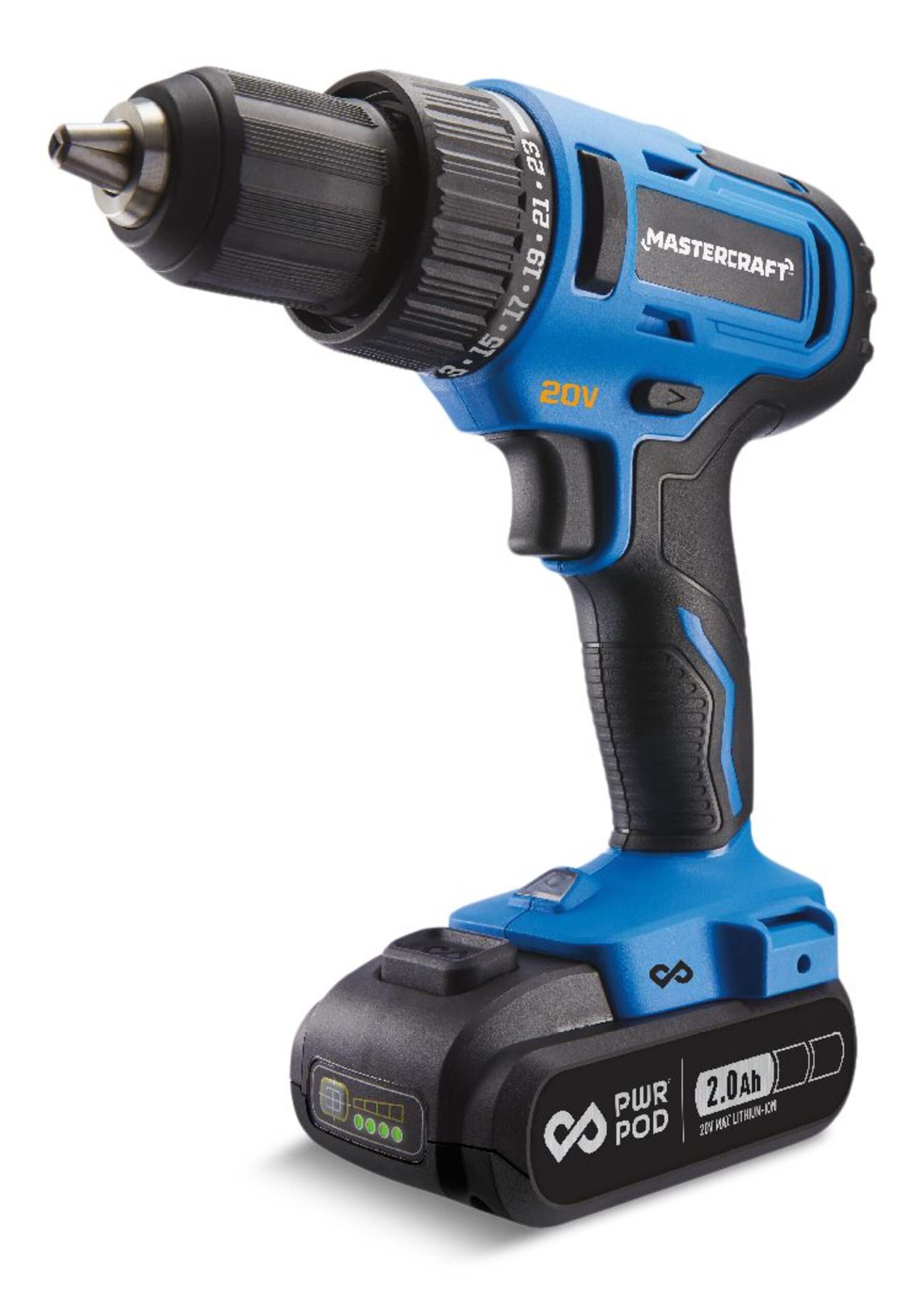 Mastercraft 20V Max Brushed 2-Speed Cordless Drill/Driver utilizes the same battery platform as existing Mastercraft power tools