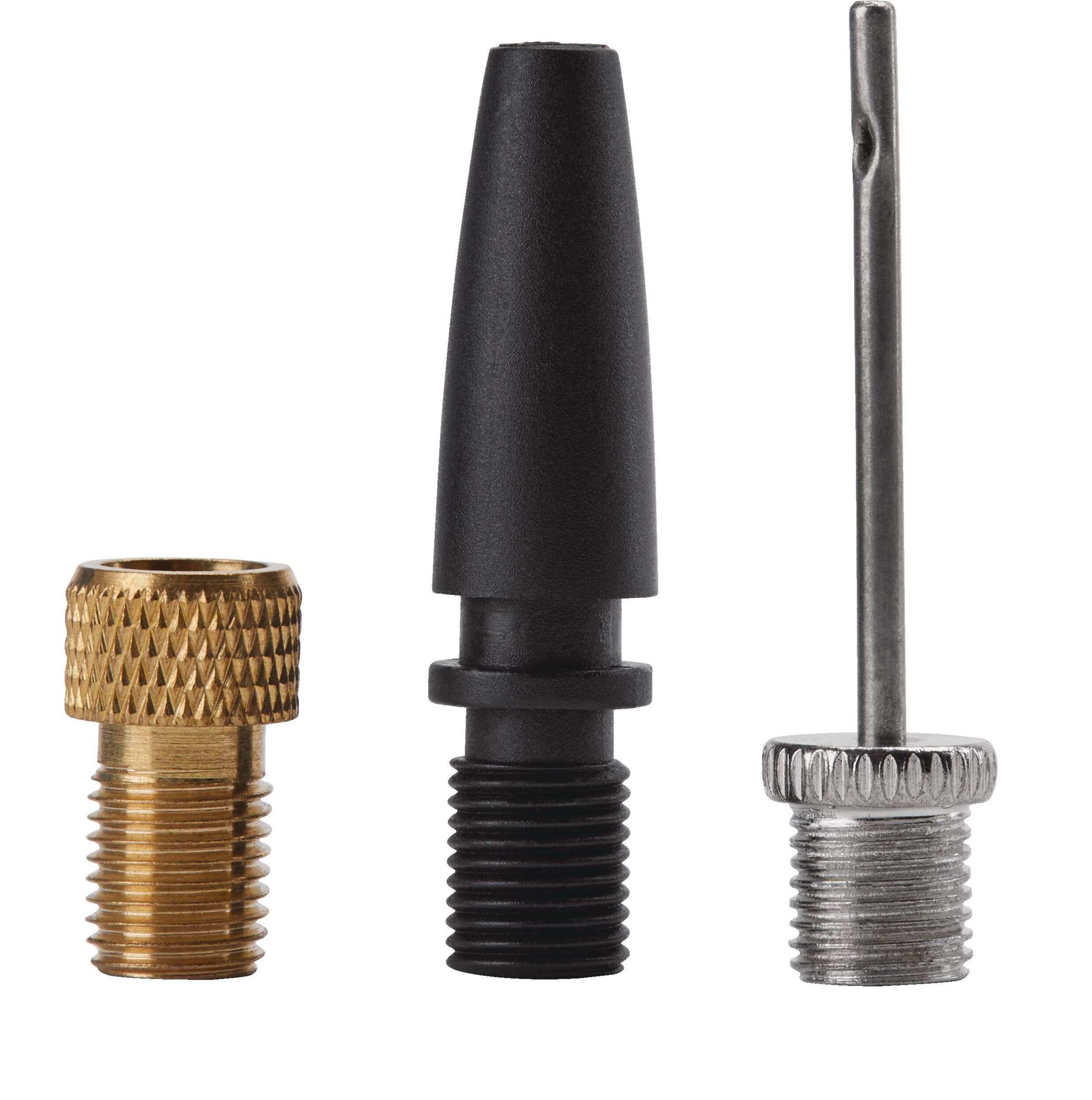 Includes: box inflator (bare tool only), 1-piece presta valve adaptor, 1-piece sports ball needle, 1-piece pinch valve adaptor and 1-piece large volume hose