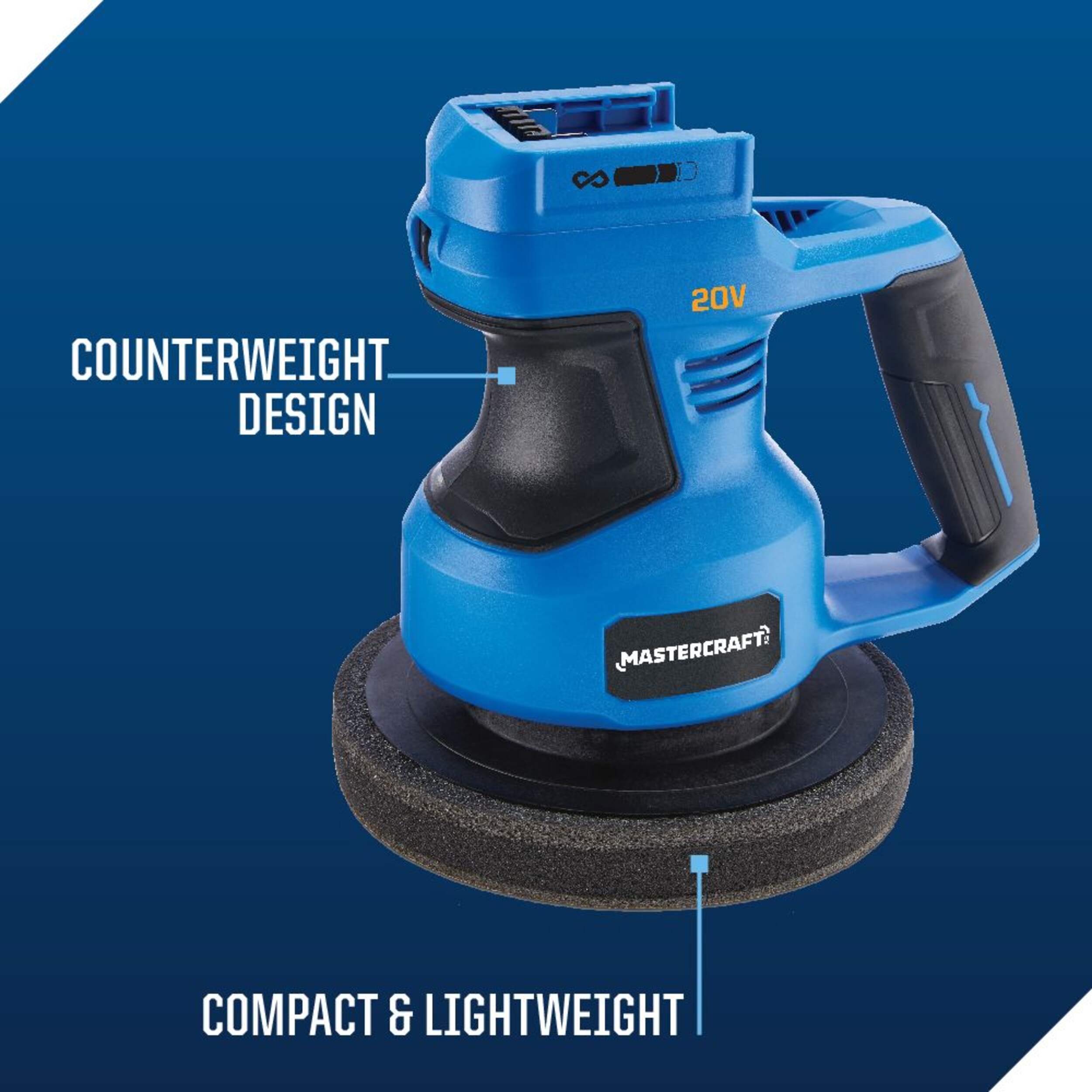 Mastercraft 20V Max Cordless Buffer/Polisher Tool-Only features a rubber-coated grip for improved grip