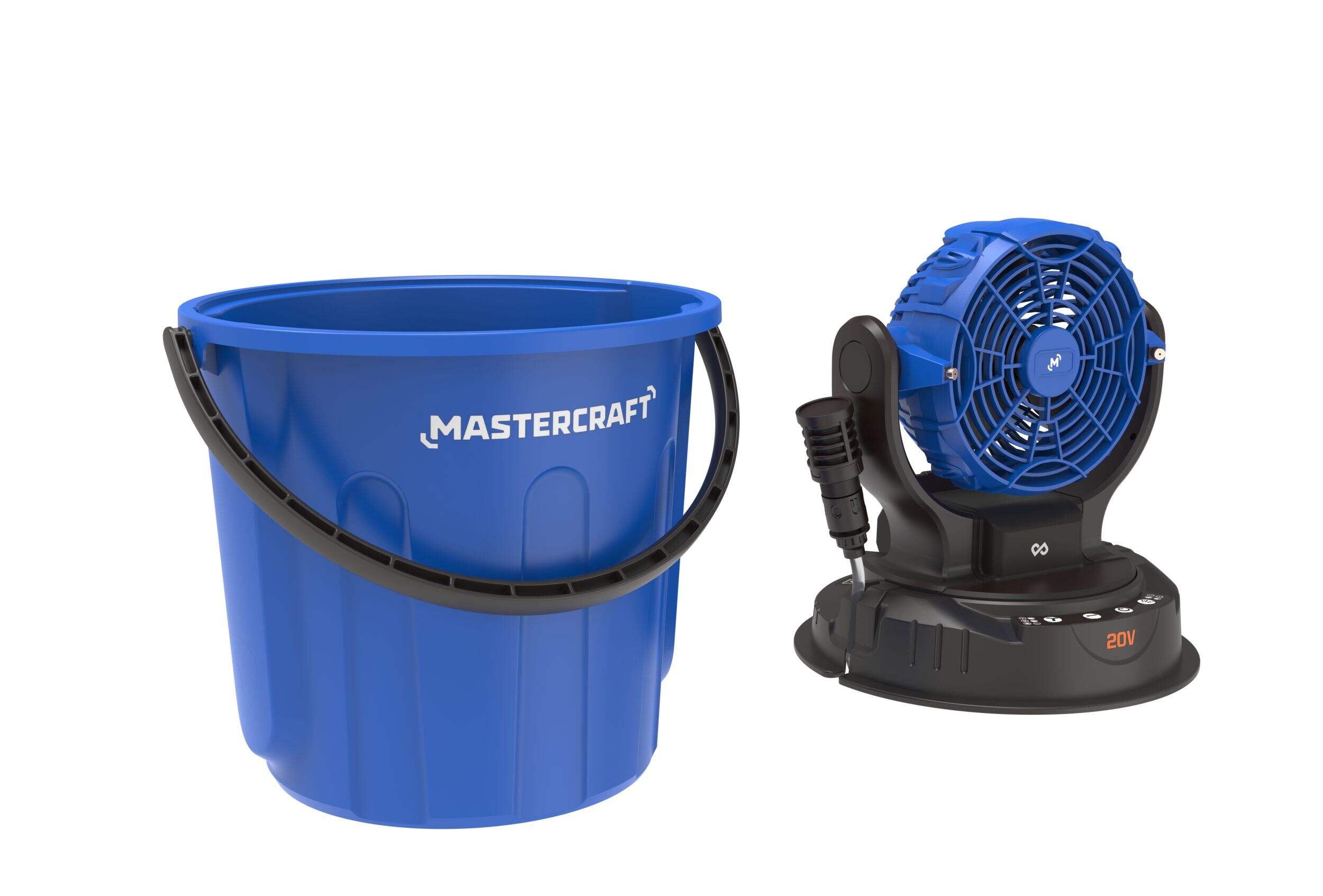 The Mastercraft® 20V PWR POD Misting Fan keeps you cool with its powerful misting capabilities. Its fan head pivots 160° and rotates 70° to provide ample coverage. Enjoy two mist levels and three fan speeds to customize your cooling experience. Designed for larger spaces, the included 6-gallon water bucket allows for extended use without frequent refills.