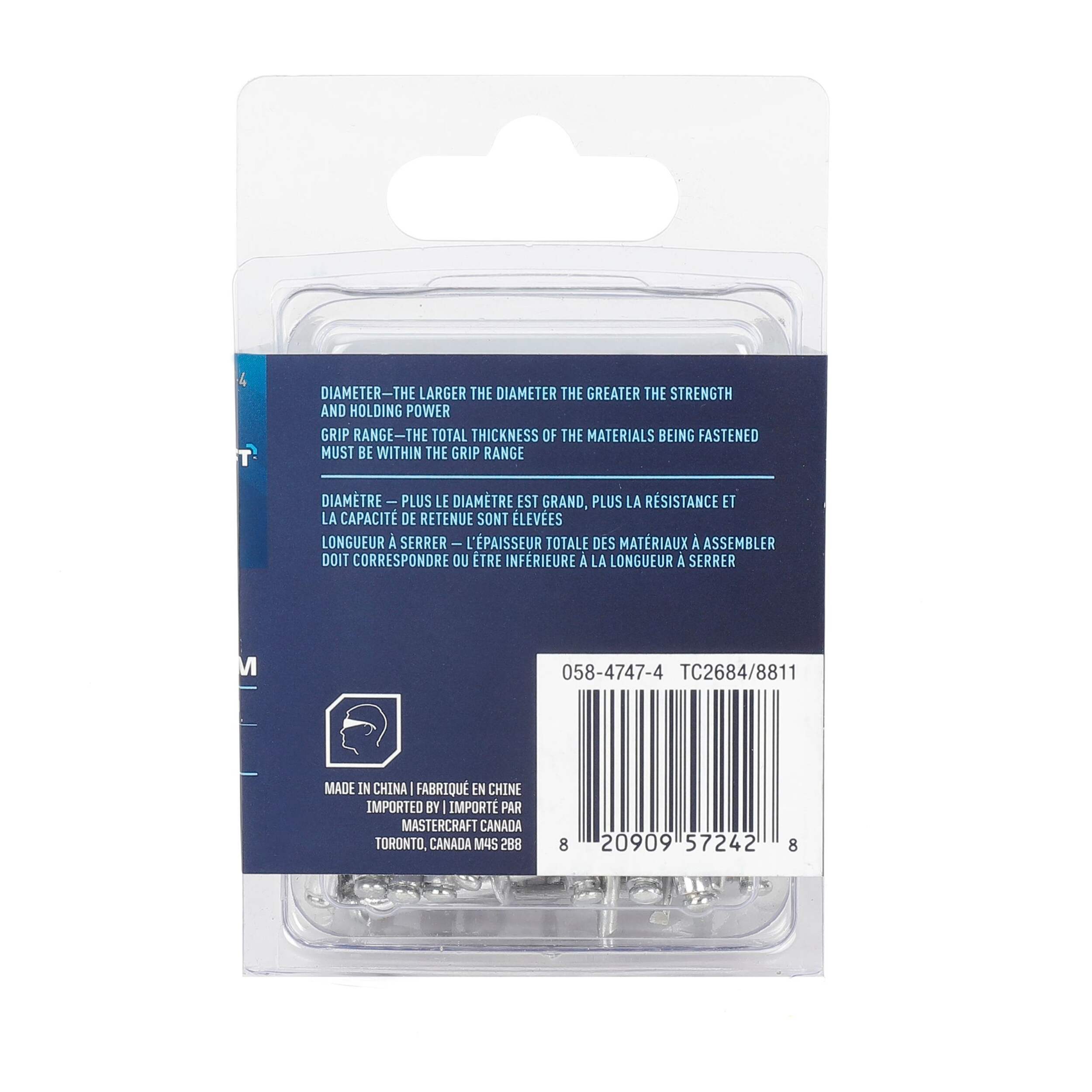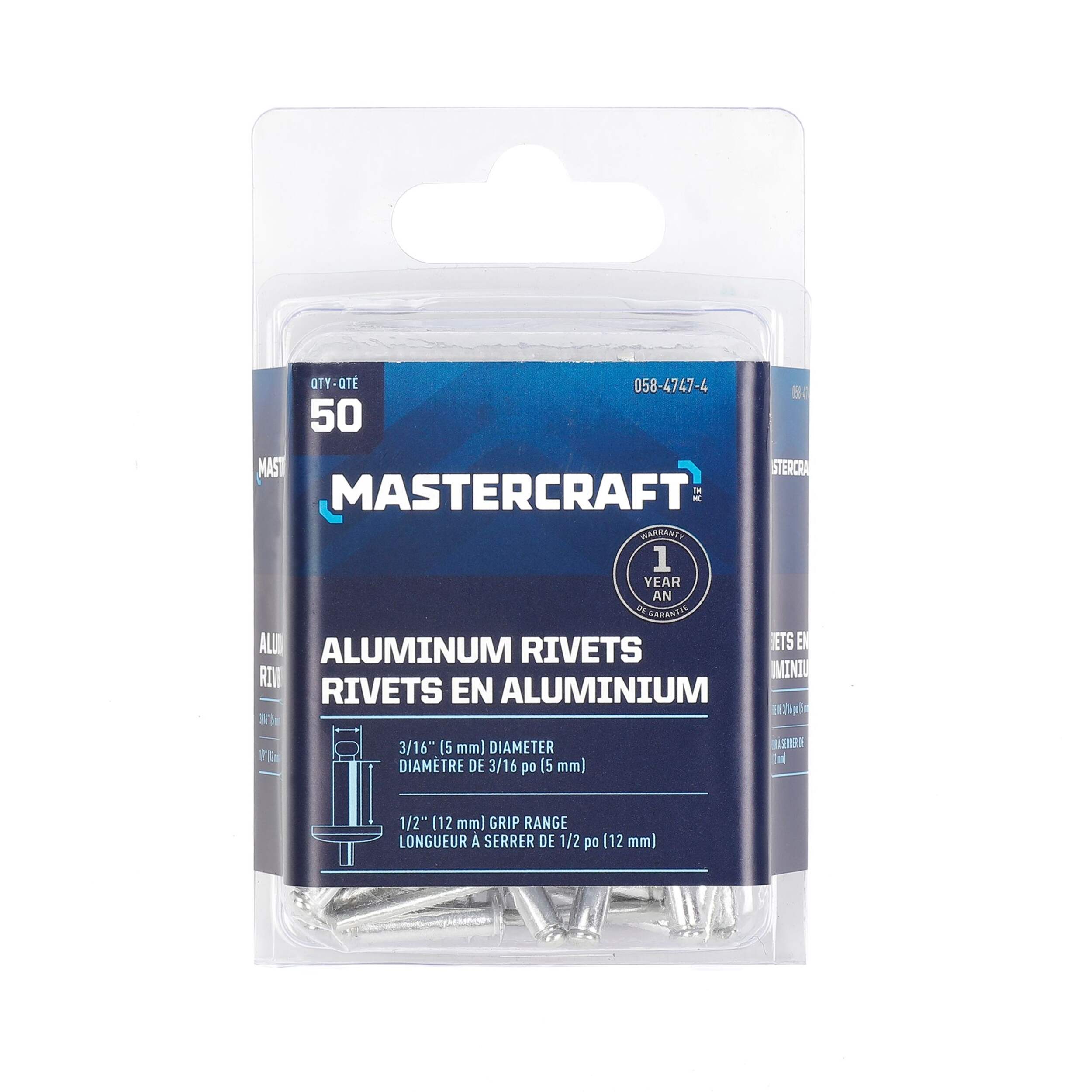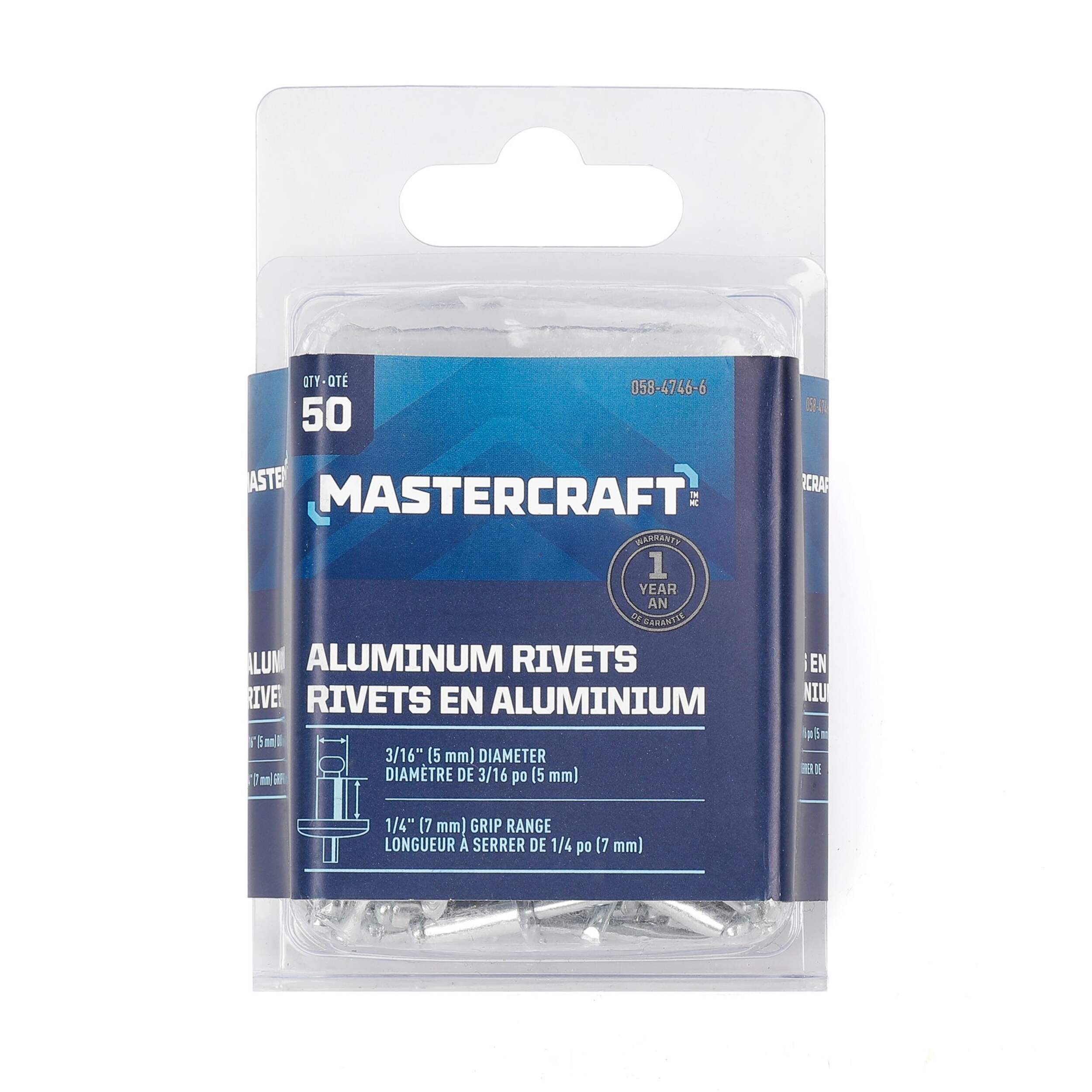 The 3/16" medium aluminum blind rivets from Mastercraft provide superior corrosion resistance and strength fastening for your construction projects. The aluminum composition makes them ideal for outdoor use, as they won't rust or degrade over time. These aluminum blind rivets are perfect for handling your medium-duty fastening needs with strength and durability.
