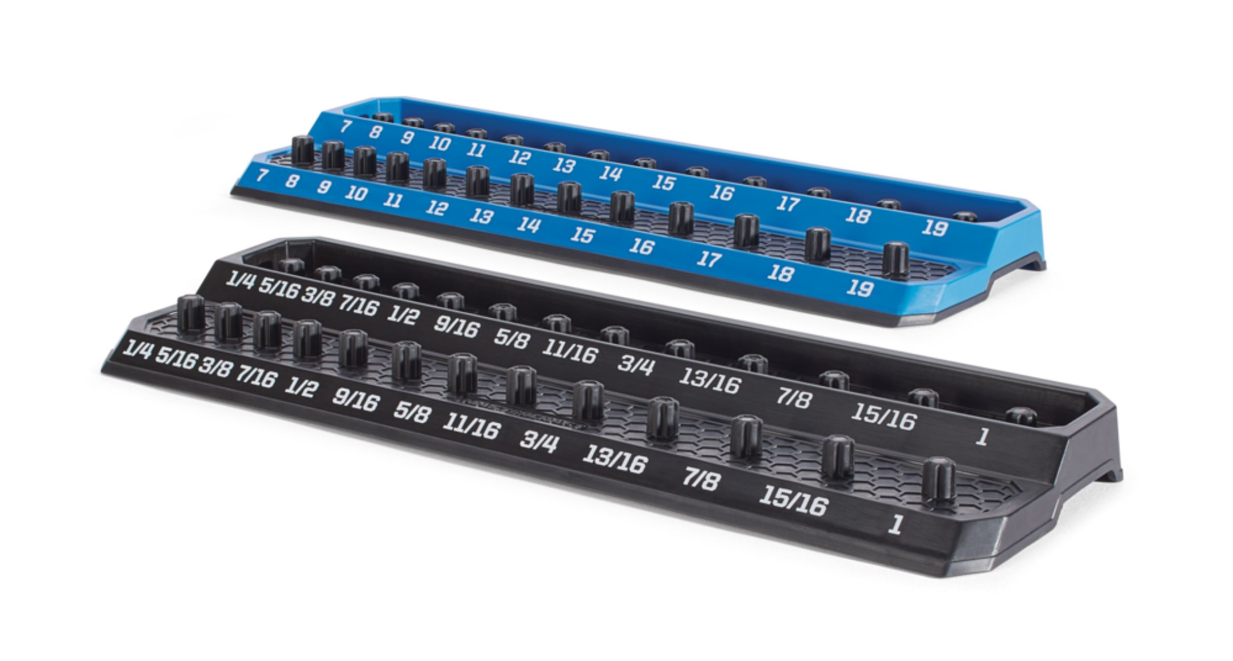 The Mastercraft 3/8-in Drive Socket Tray Organizer/Holder, 2-pk is easy to store in tool chests