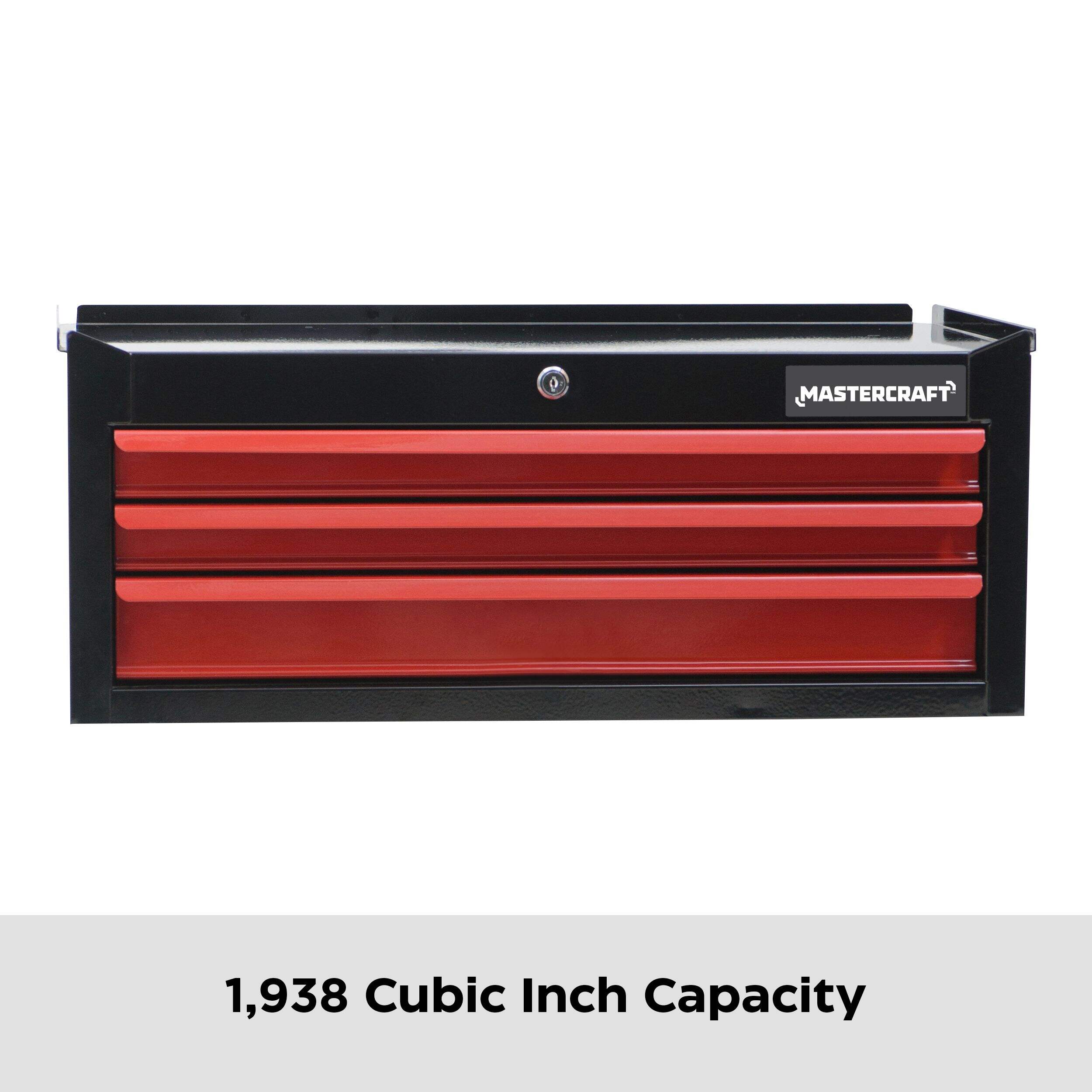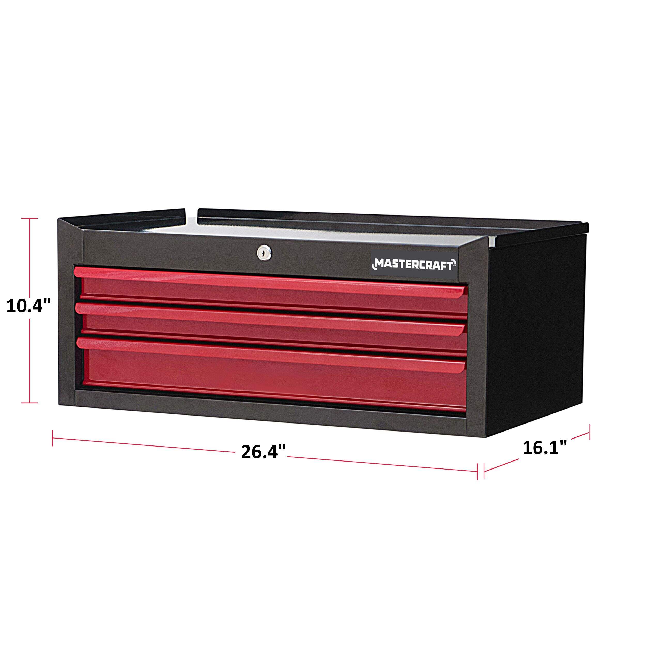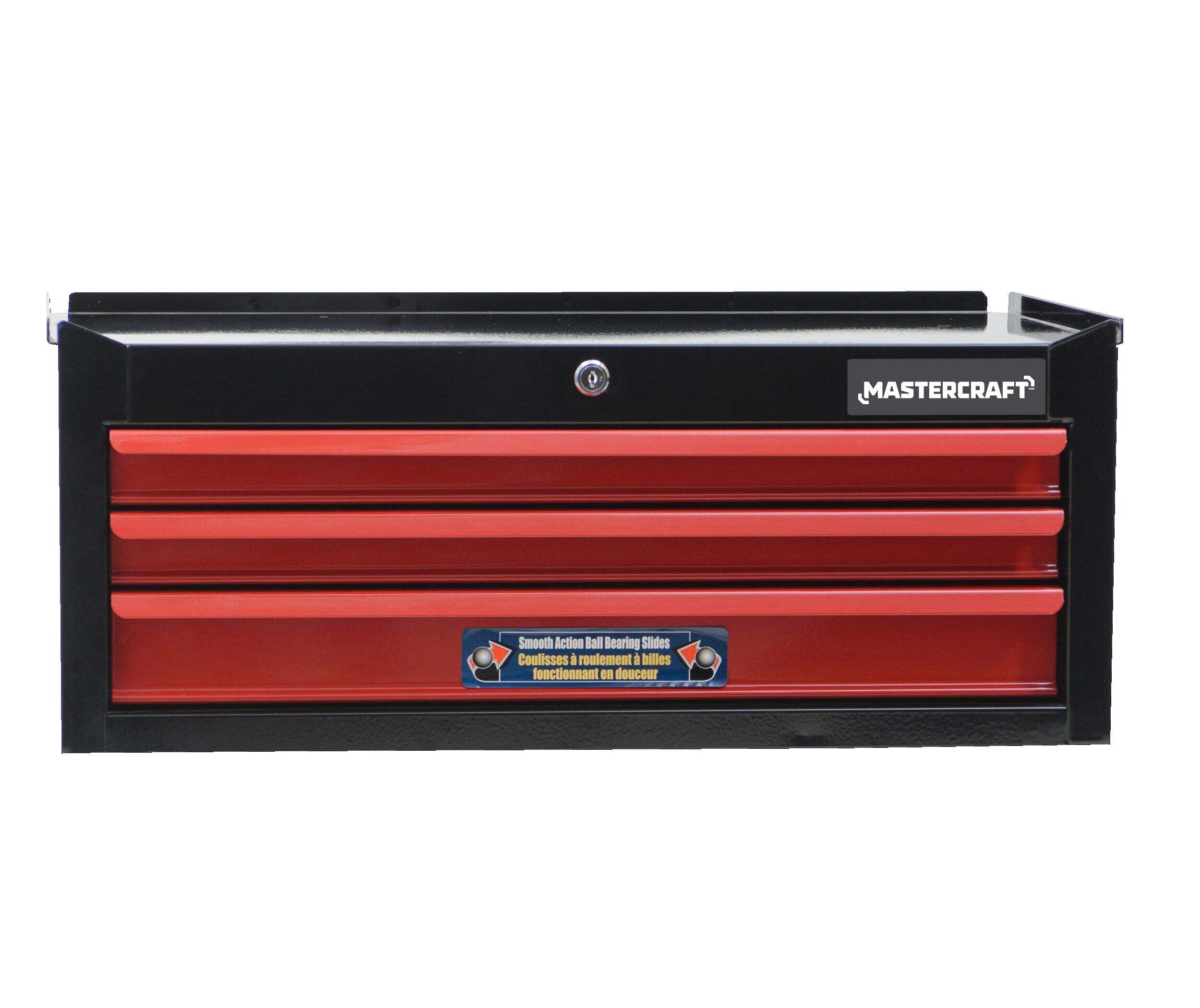 The Mastercraft 26" 3-Drawer Intermediate Tool Chest in black and red is designed to meet your workshop organization needs. The chest can support a total capacity of 400 lb. The spacious top of this tool chest can double as a workspace, and it can be easily stacked with other Mastercraft storage units for added functionality. Available in a stylish black and red colour combination, it’s a perfect blend of form and function.