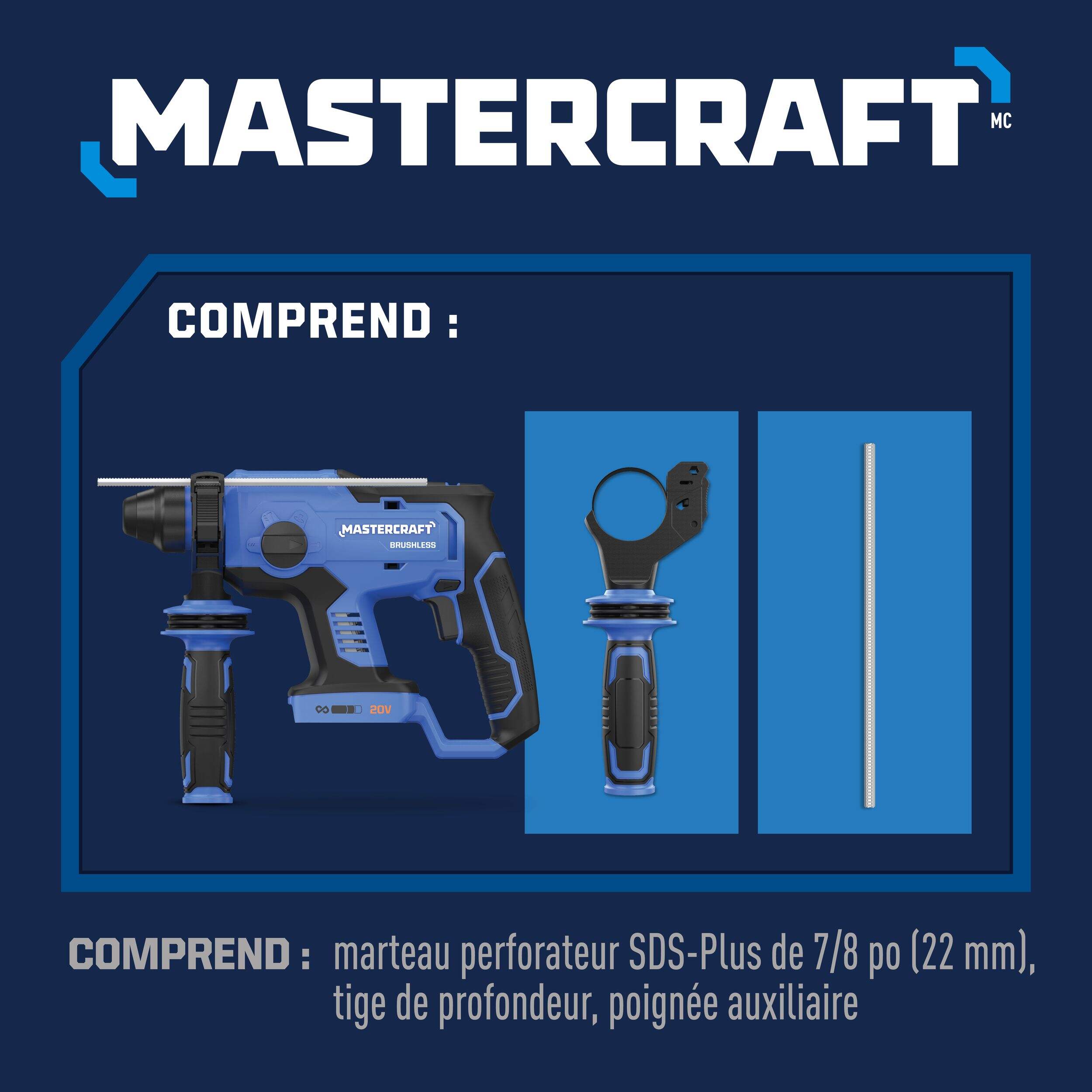 The Mastercraft 7/8-in Brushless Rotary Hammer is a durable and high-performing tool designed for tough, demanding tasks. It features a versatile design that is perfect for a range of applications, including heavy-duty drilling and chiselling. Built to withstand the rigours of the jobsite, this rotary hammer offers optimal performance for both professional and DIY use. Whether you’re drilling into concrete, masonry, or other hard materials, this tool is engineered for reliable results and long-lasting durability.