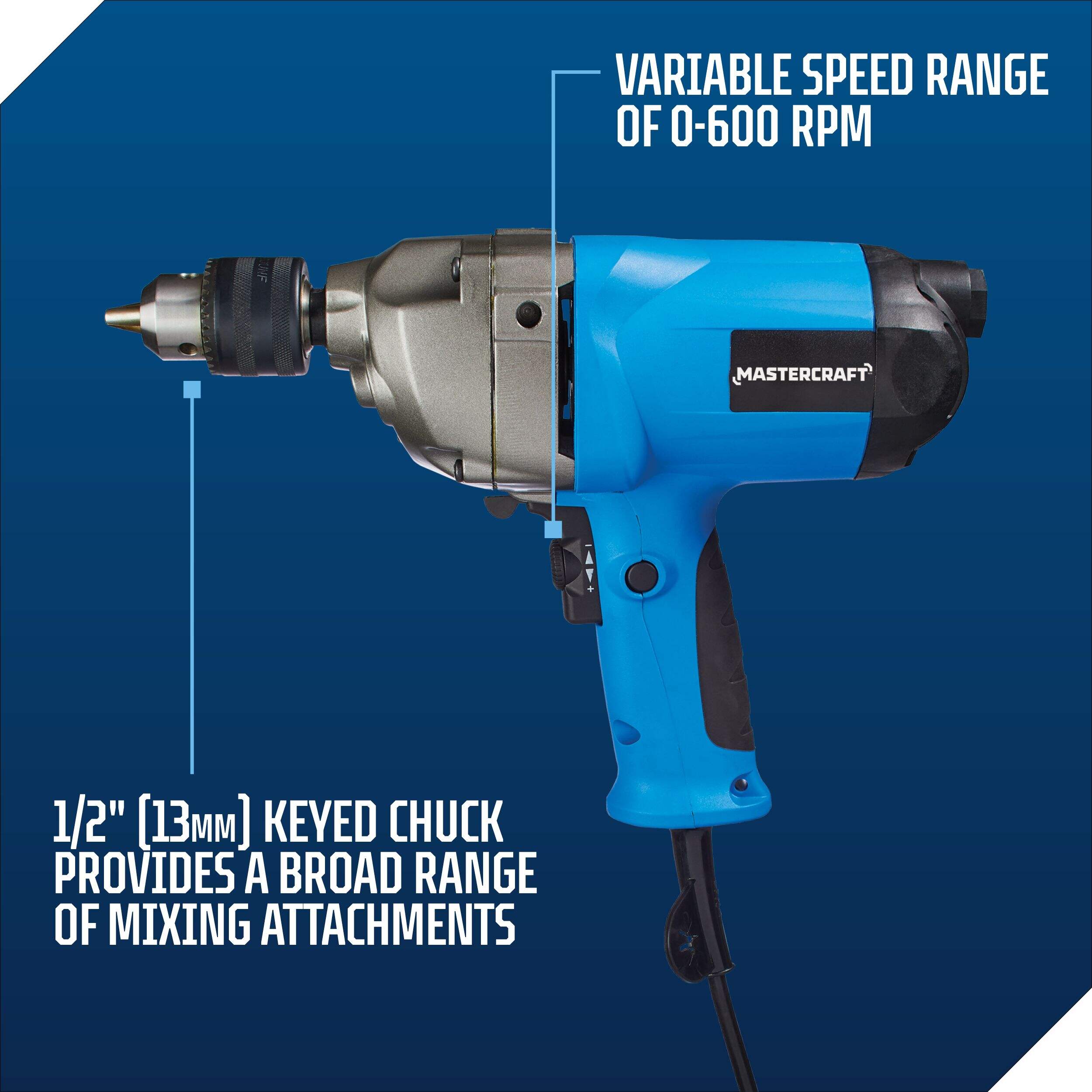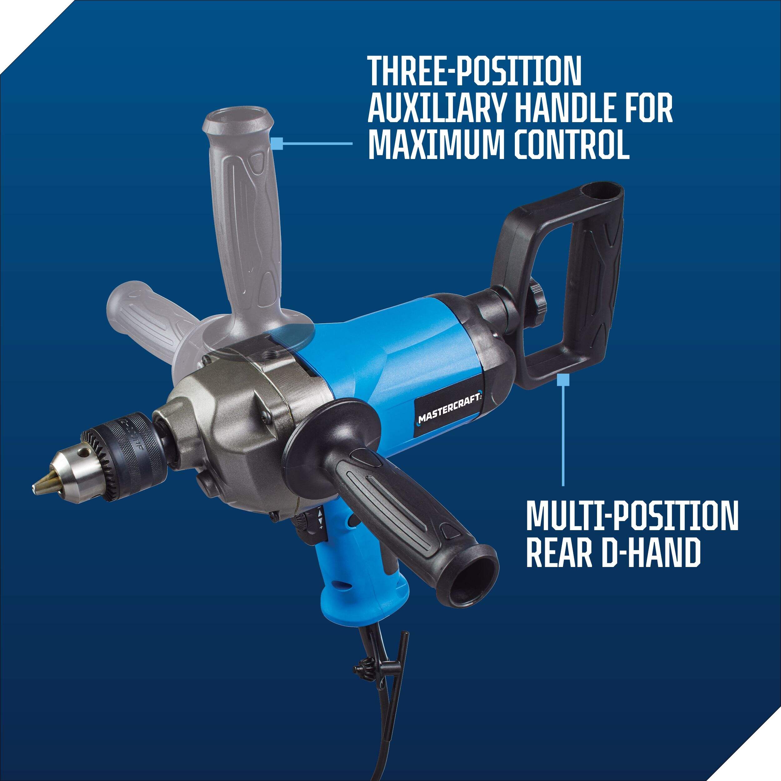The Mastercraft 9A Low-Gear Corded Variable Speed Drill Mud Mixer is the perfect tool for tackling heavy mixing jobs with ease. The dual handles—one rear D-grip and an auxiliary handle—provide superior control and leverage, ensuring that you achieve a perfectly blended mixture every time. Weighing in at just 6 lb 12 oz (3.05 kg), this lightweight tool is easy to maneuver while still being tough enough for the job.