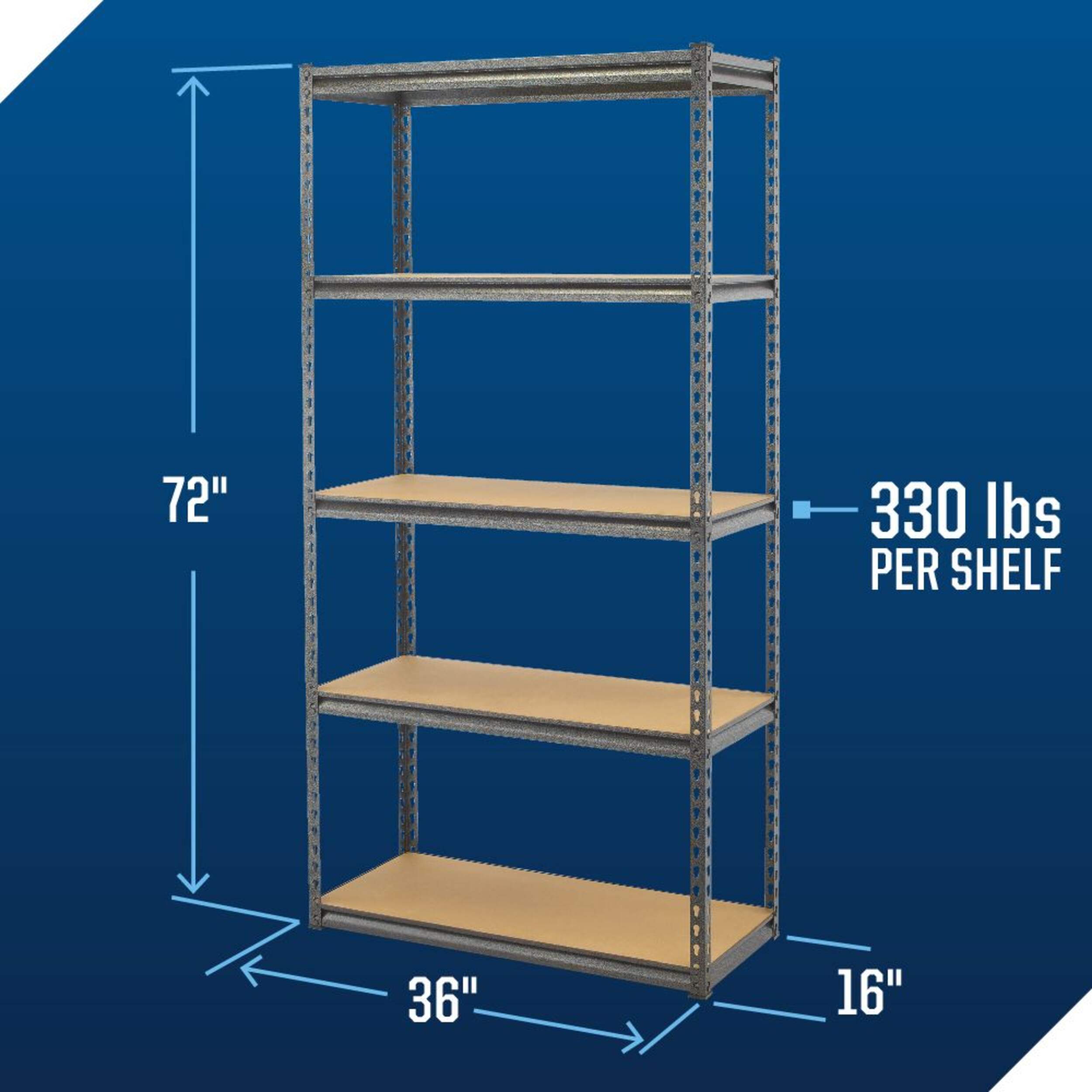 Put an end to messy and cluttered workspaces with the Mastercraft Adjustable 5-Shelf Steel Metal & Wood Storage Rack / Shelving Unit. This sturdy storage rack features five adjustable shelves to hold anything from tools and paint cans to sporting equipment. With an open design, the storage rack makes it quick and easy to locate what you need in a glance, and helps keep basements and garages neat and organized.