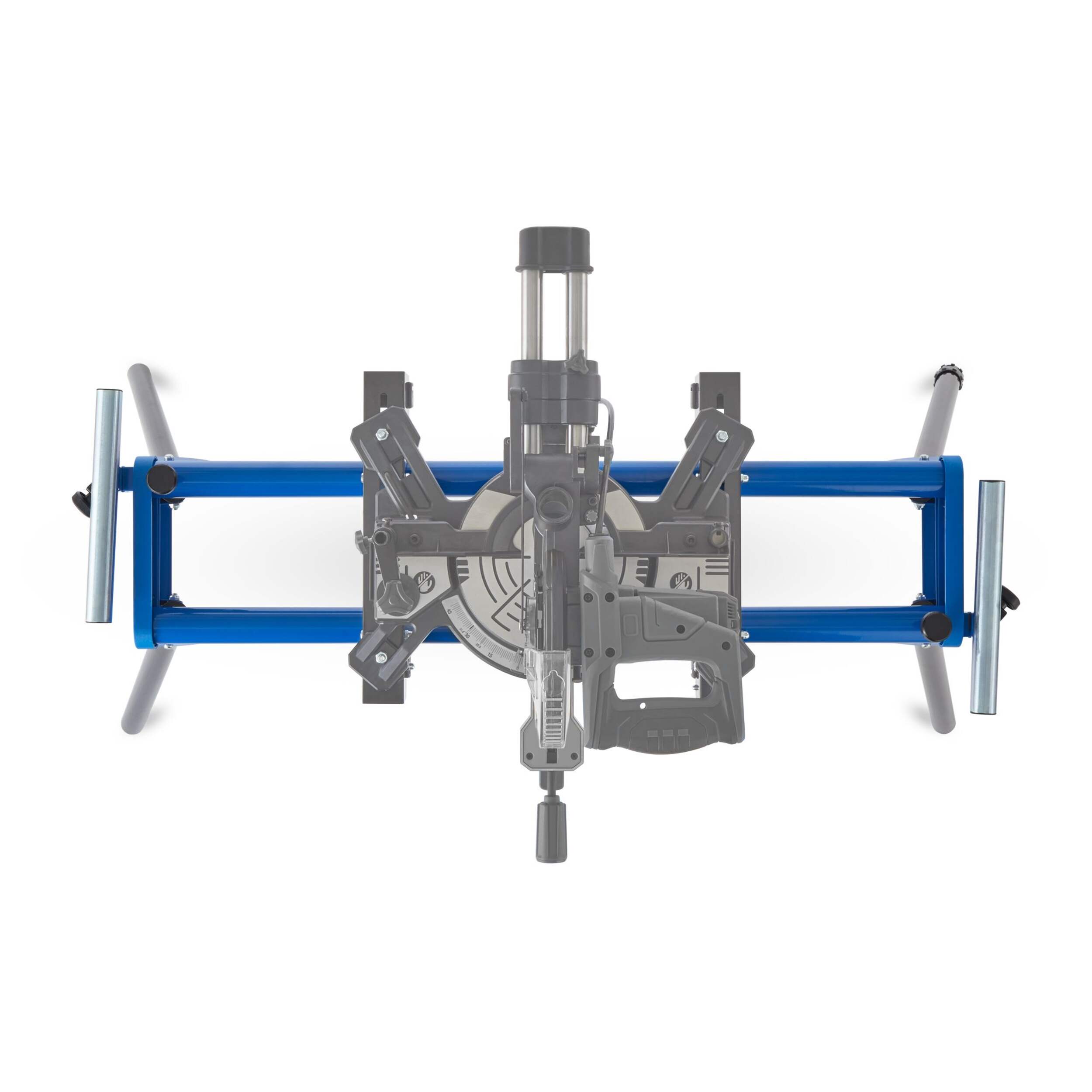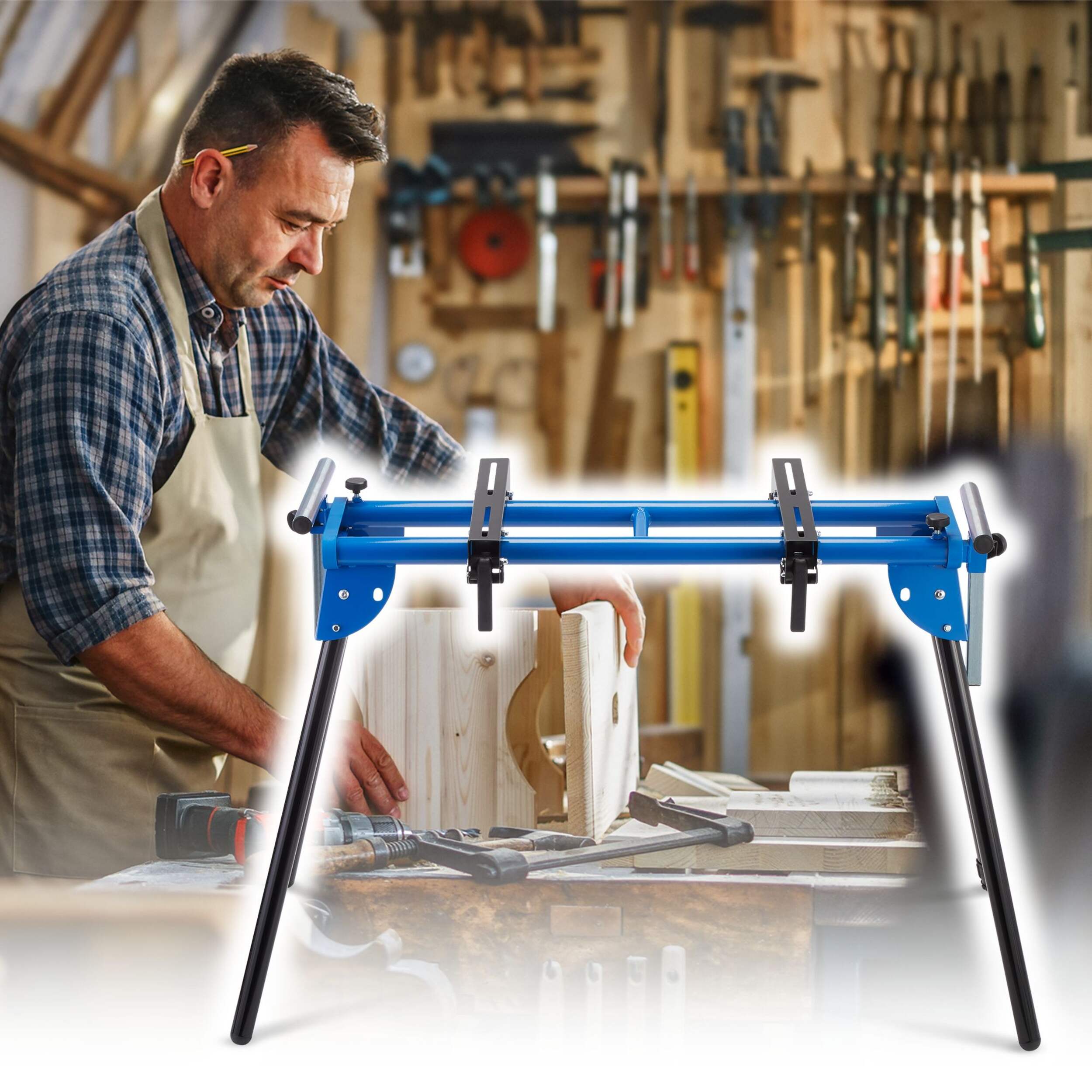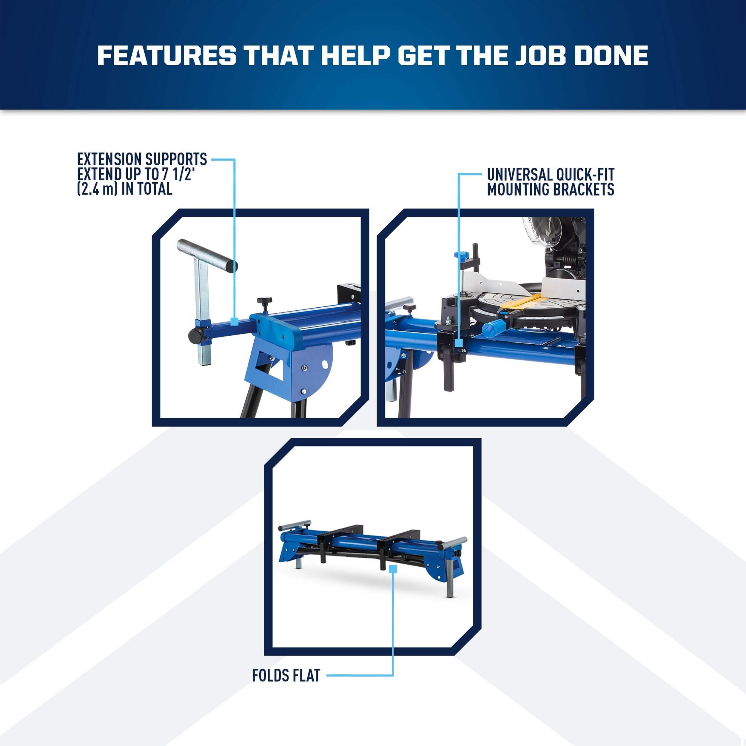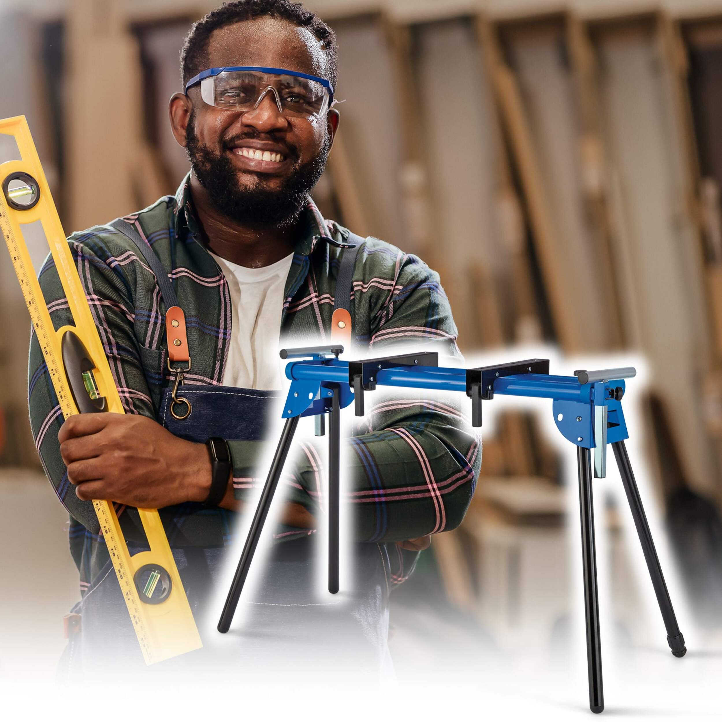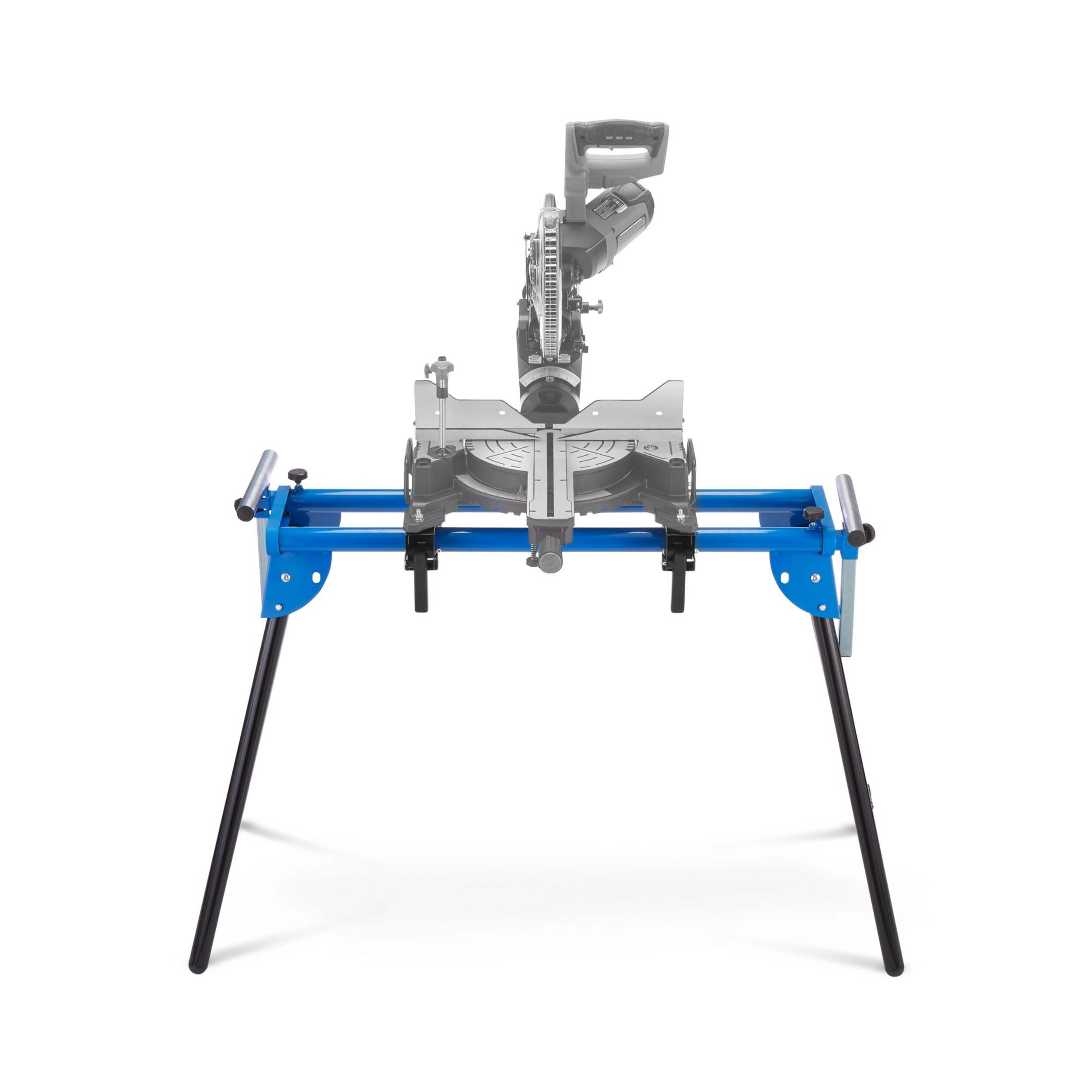 The Mastercraft Adjustable Leg Mitre Saw Stand with Extension Arm is an excellent tool for delivering professional-grade performance in any hobbyist or professional setting. Its sturdy, four-legged design ensures stability, even on uneven surfaces. The stand features a patented, user-friendly design with quick-mounting brackets for effortless setup. Lightweight yet stable, this mitre saw stand folds flat for easy transport to job sites and convenient storage when not in use.