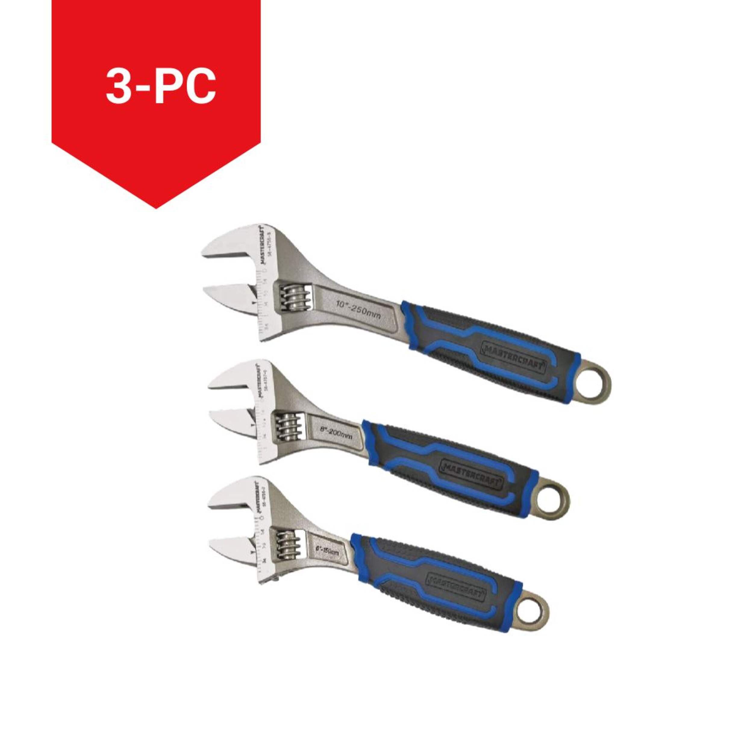 Tackle a variety of tasks with the Mastercraft Adjustable Wrench Set. This versatile set is built to last, constructed from corrosion-resistant metal for durability. The adjustable wrenches offer flexibility for different jobs, providing reliable performance and comfort during use. Backed by a no-time limit exchange warranty, this set is a great addition to any toolbox and is perfect for both DIY enthusiasts and professionals alike.