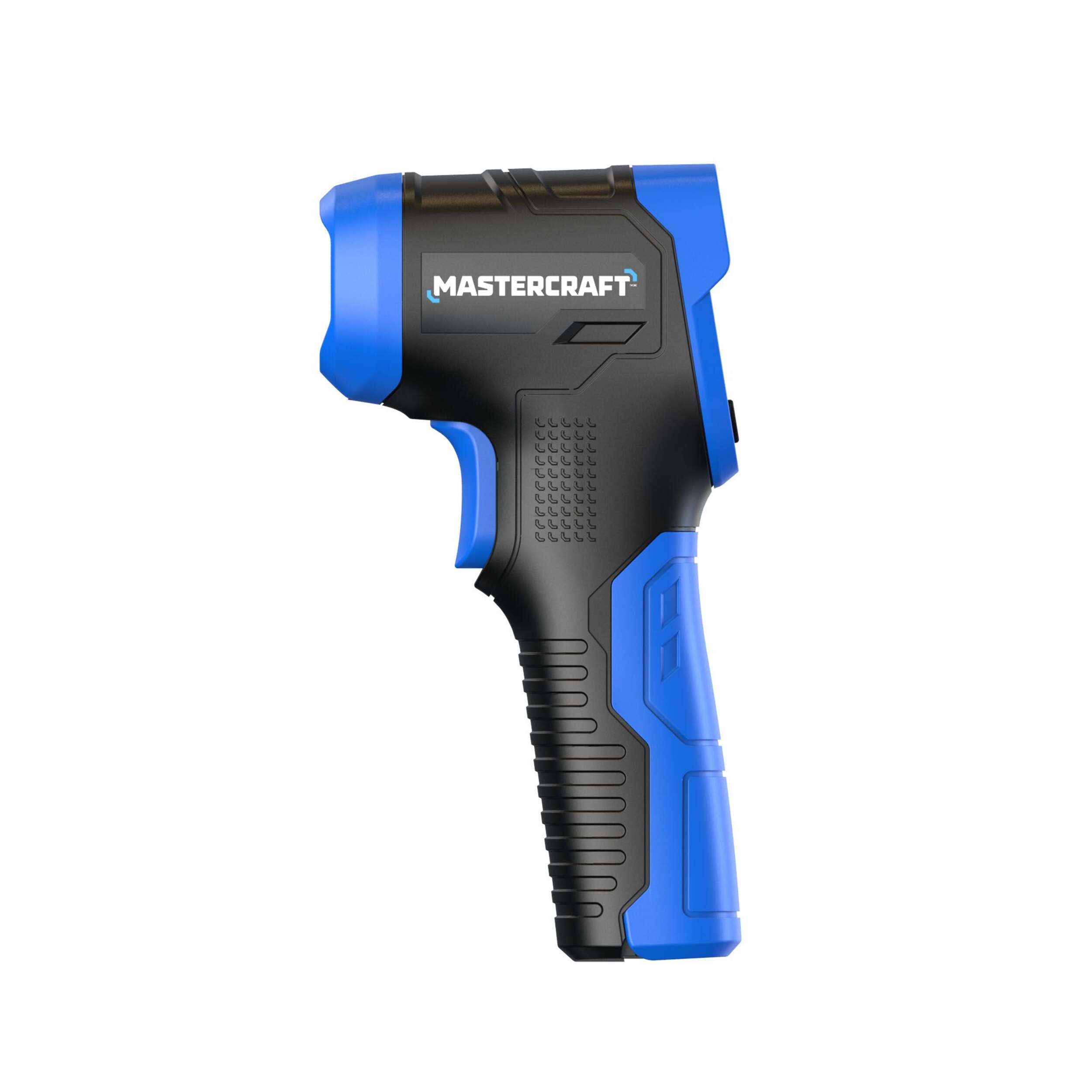 The Mastercraft Battery Powered Digital Temperature Reader allows for quick and precise measurement of surface temperatures without direct contact. This versatile tool is ideal for a range of household and professional applications. Its digital display offers easy readability and the ability to switch between Celsius and Fahrenheit effortlessly. The temperature reader is a practical choice for both occasional and frequent use.