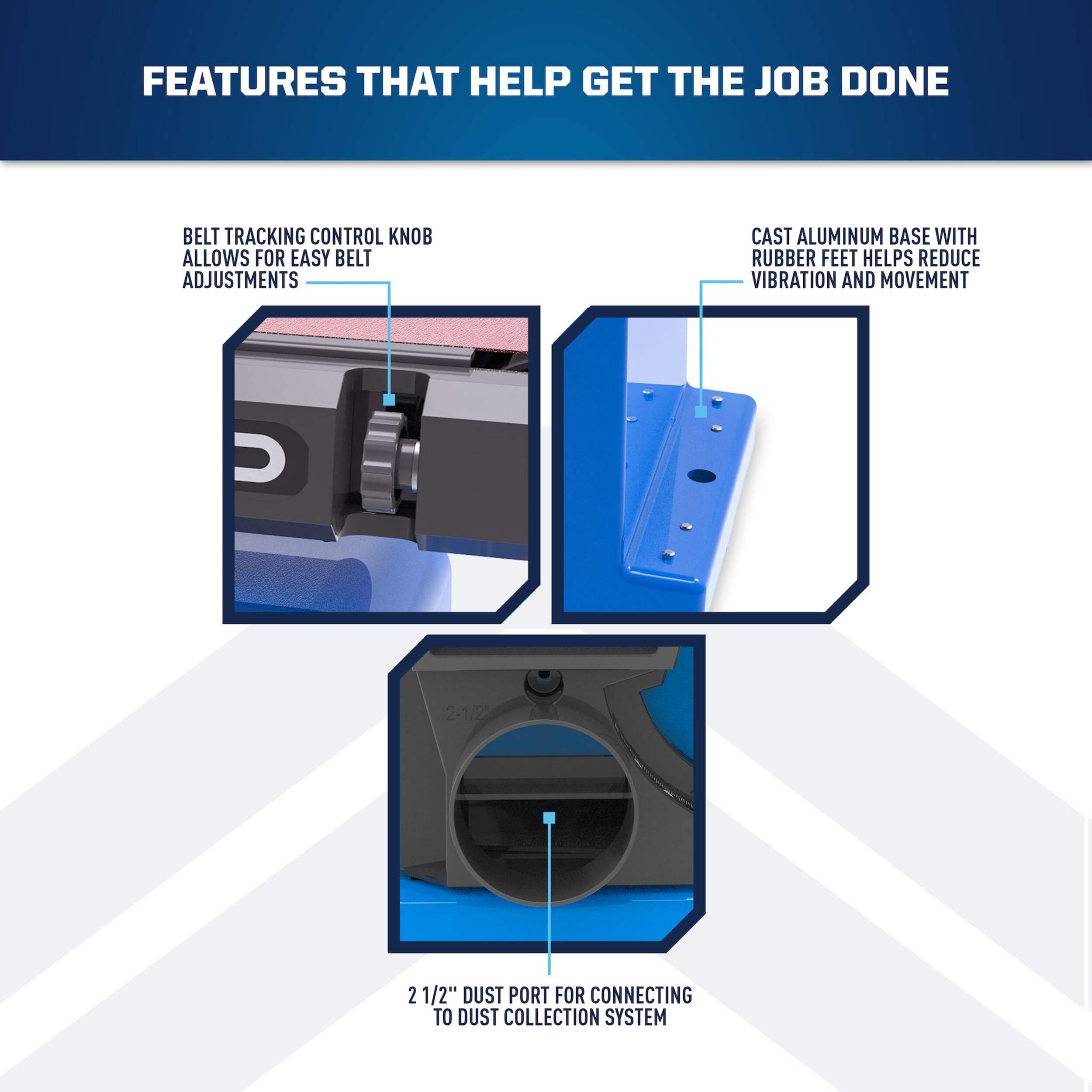 | Advanced Features | Belt Adjustment | Belt Adjustment | Cordless | Cordless, Variable Speed | Variable Speed | |