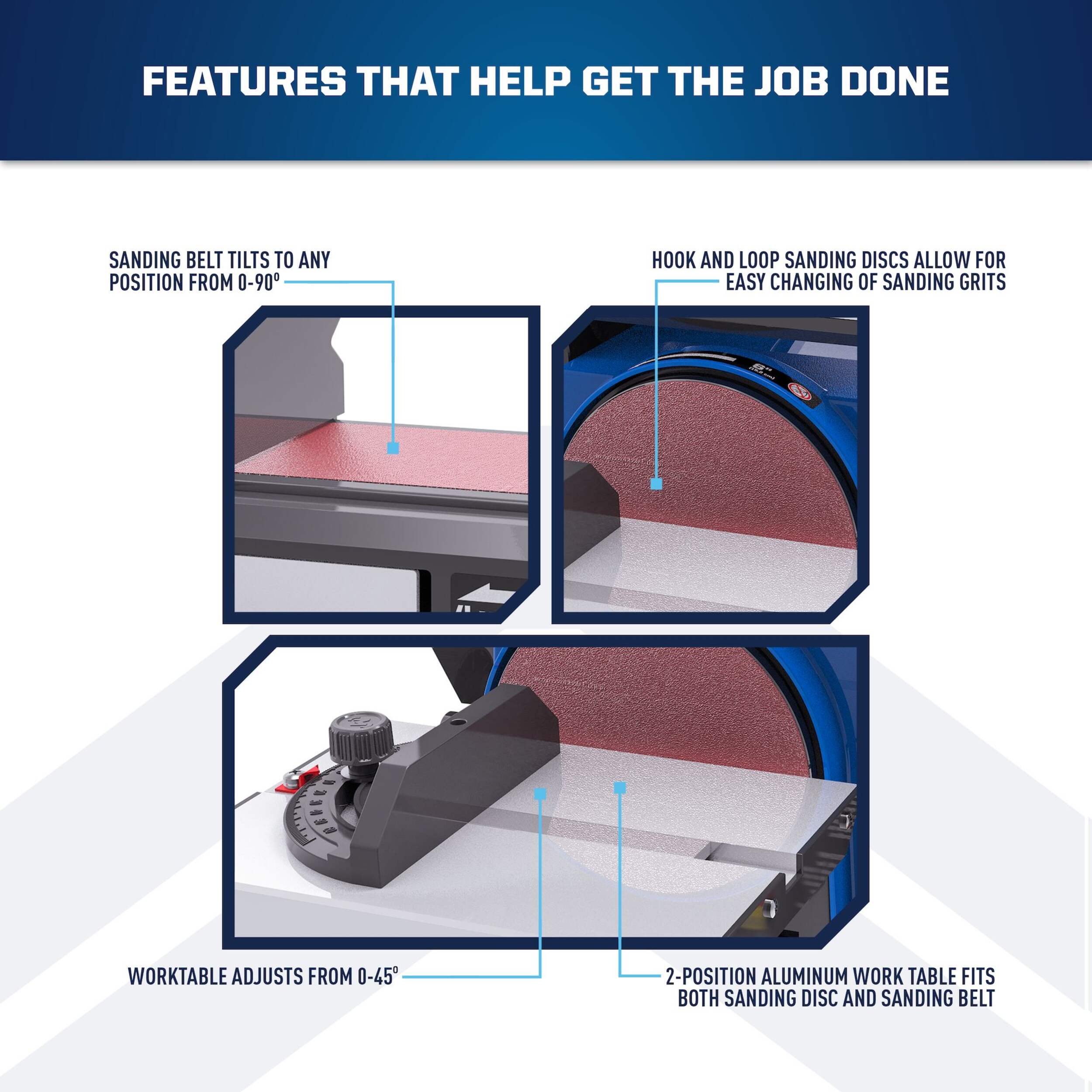 2-position aluminum work table fits for both sanding disc and belt
