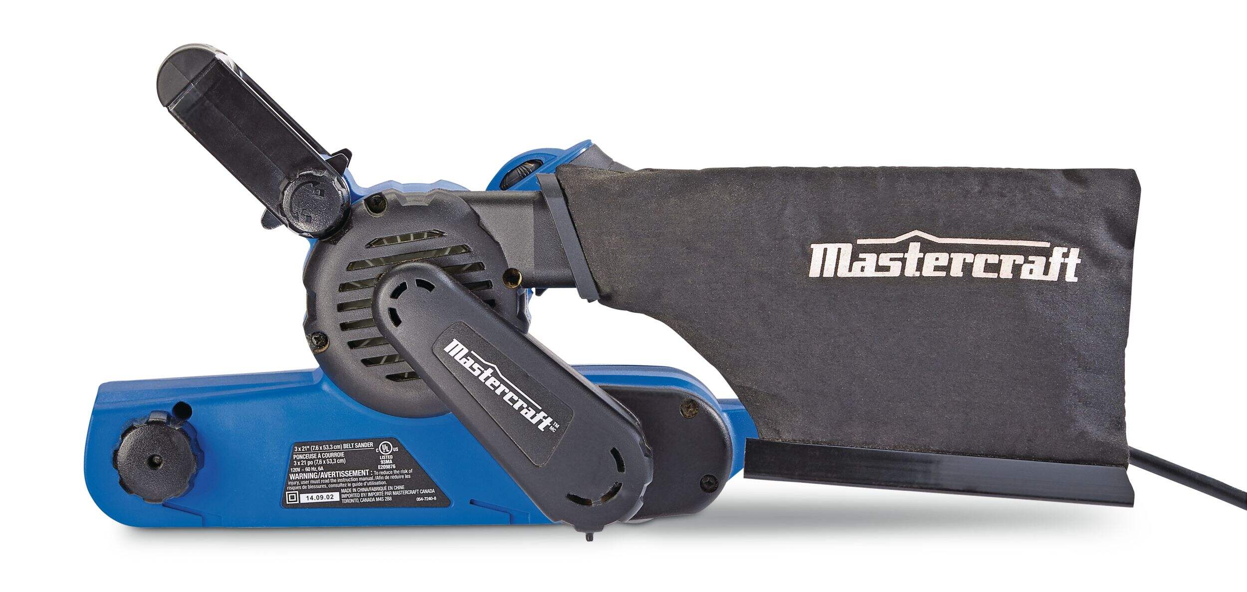 Make one of woodworking's worst jobs into a smooth, easy task. Our Mastercraft 3" x 21" belt sander will remove old finishes with speed, power and balance. 6 A motor controls six speed dial settings from 600- 1,100 ft/min (180-335 m/min). D-style handle is adjustable.