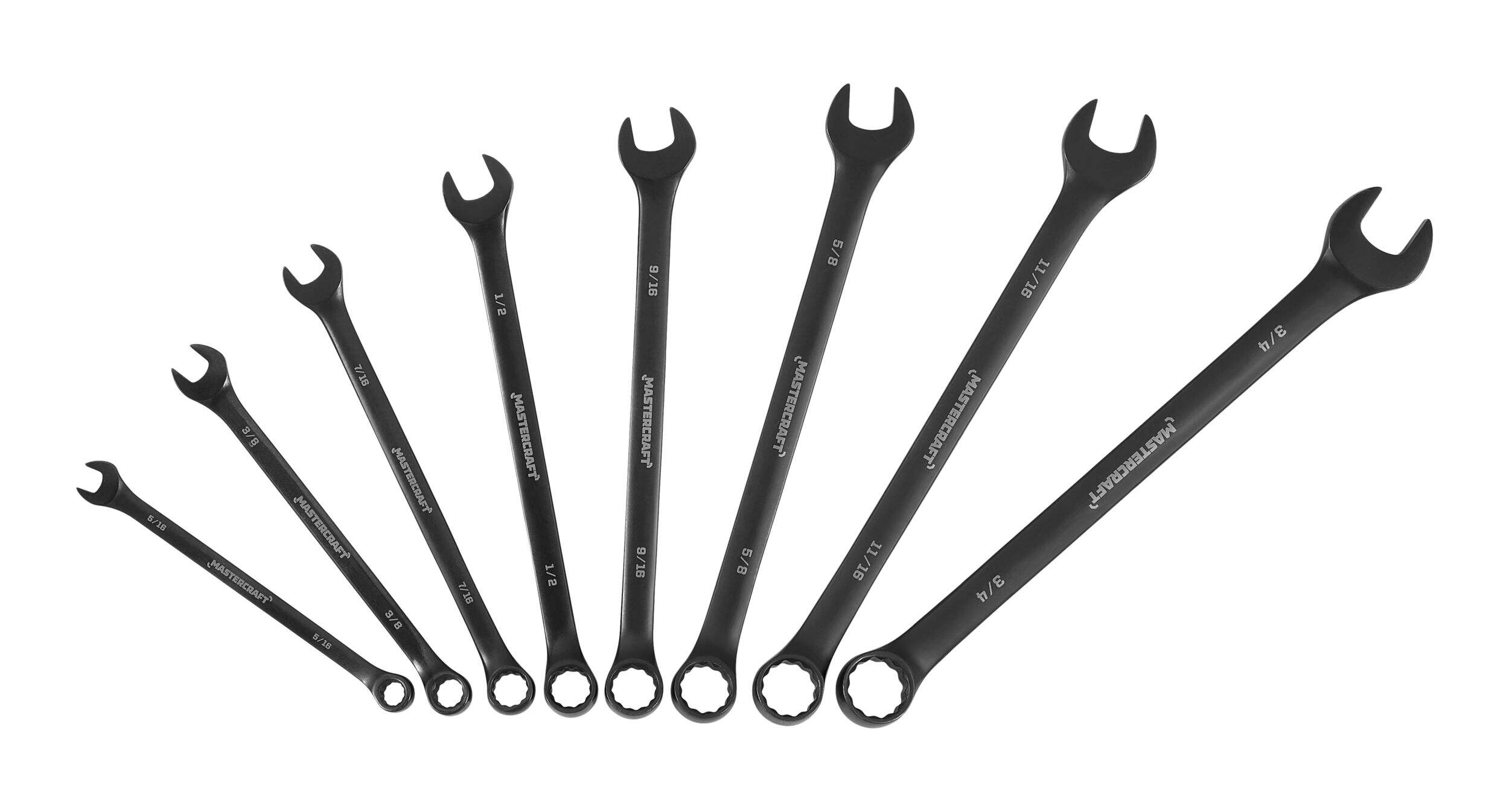 The Mastercraft Black Steel Combination Wrench Set is an essential addition to any toolkit. This 8-piece set offers a range of sizes, ensuring you have the right tool for various tasks. Designed for durability and precision, these wrenches provide excellent reach and access, making them perfect for both professional and DIY projects.