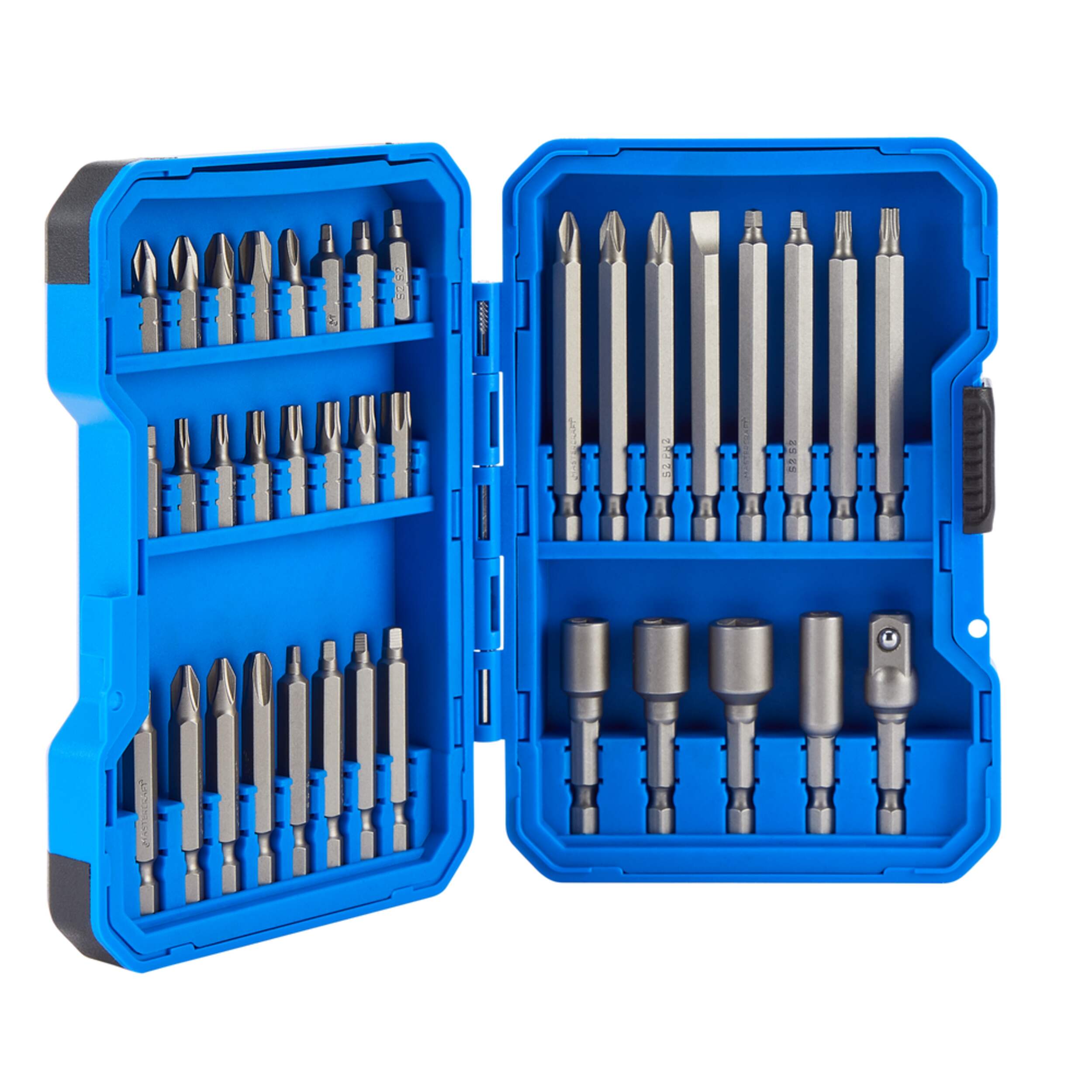 Ensure you have all the tools to do the job with this Mastercraft Carbide Assorted Screwdriver Bit Set. This high-quality set contains 37 pieces and includes everything you need for general DIY jobs in the shop or around the house. Versatile and magnetized for easier use, these screwdriver bits are built for long life and superior durability, and ensure you'll always have the correct bit for the job.