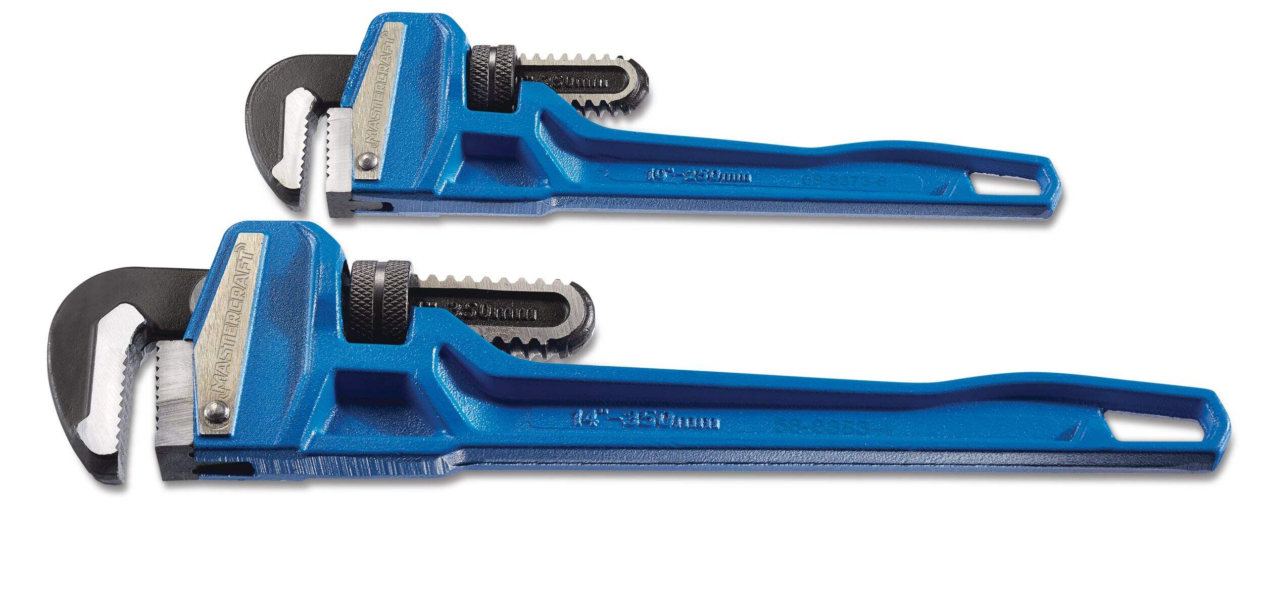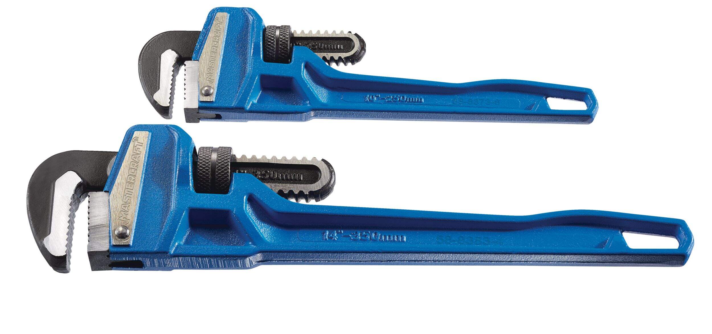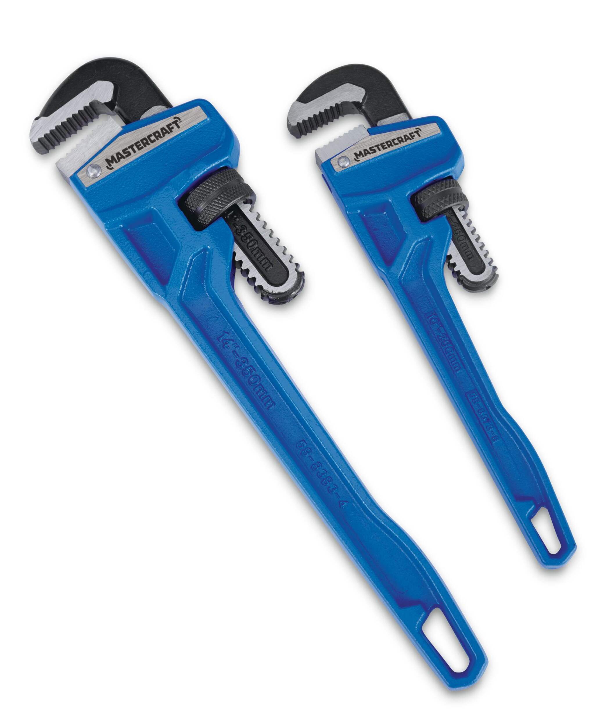 The Mastercraft Cast Iron Pipe Wrench Set includes two wrenches, each featuring a robust cast-iron handle for exceptional strength and durability. Designed with ridged jaws for maximum torque, these pipe wrenches are perfect for tackling tough plumbing jobs that require added weight or the leverage of a cheater bar. This set is an essential addition to any toolbox, ensuring reliable performance for all your plumbing needs.