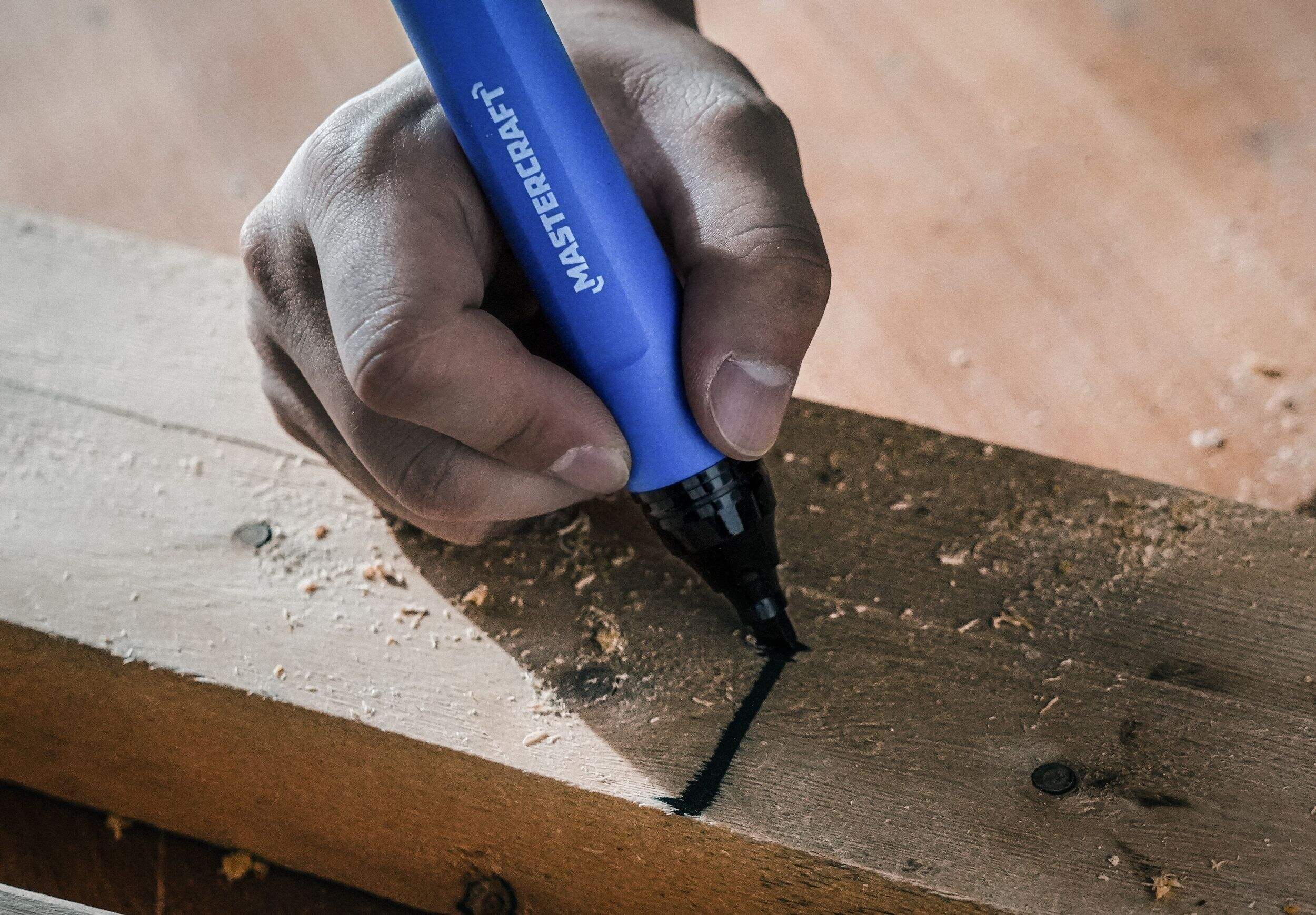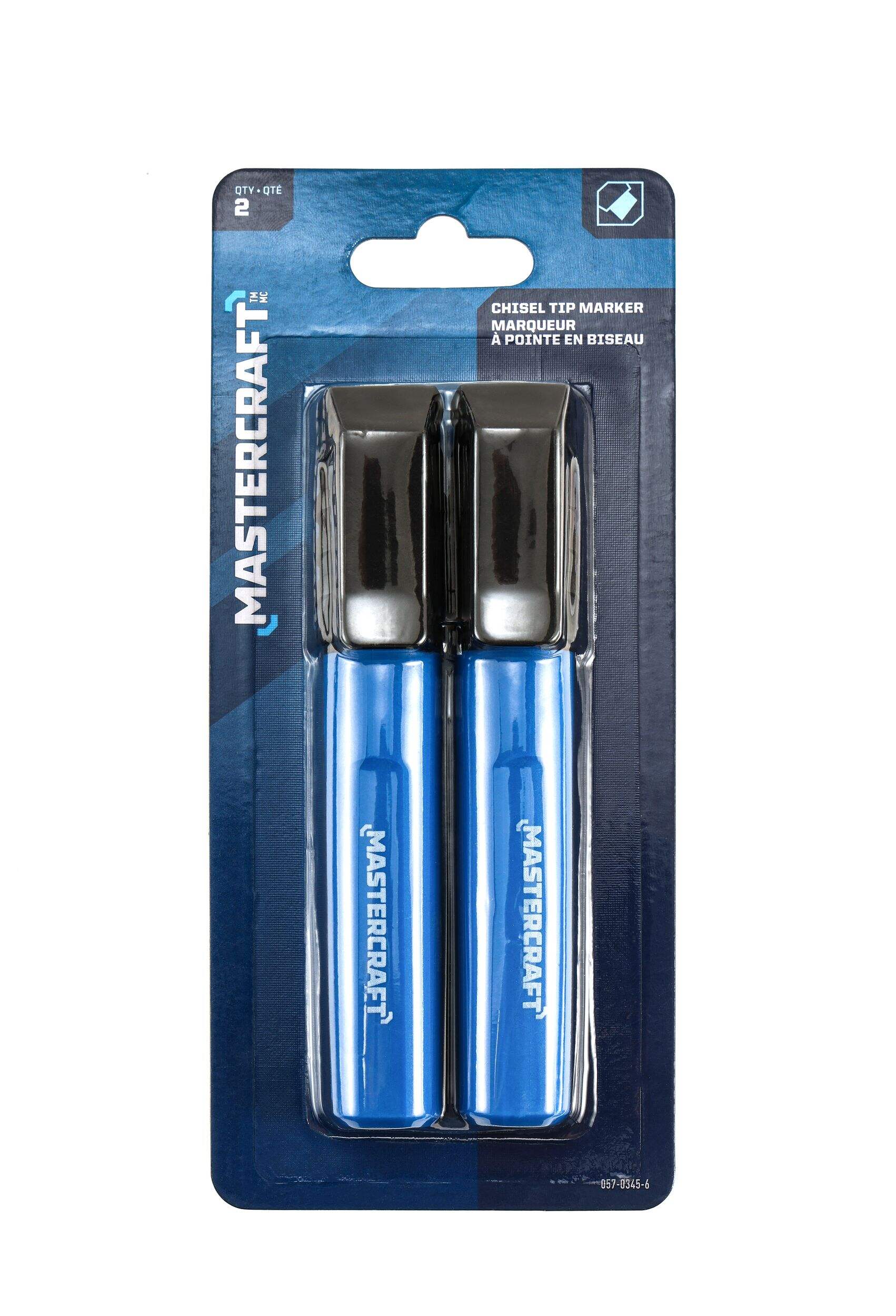 The Mastercraft Chisel Tip Markers are designed with black permanent ink, making them ideal for marking hard-to-reach areas such as drilled holes, tight corners, and even for DIY art projects. These versatile marking tools can be used on most wet and dry surfaces, allowing for a wide range of applications. Whether you need to mark intricate spots or express your creativity, the Mastercraft markers provide a reliable solution with their long-lasting permanent ink.