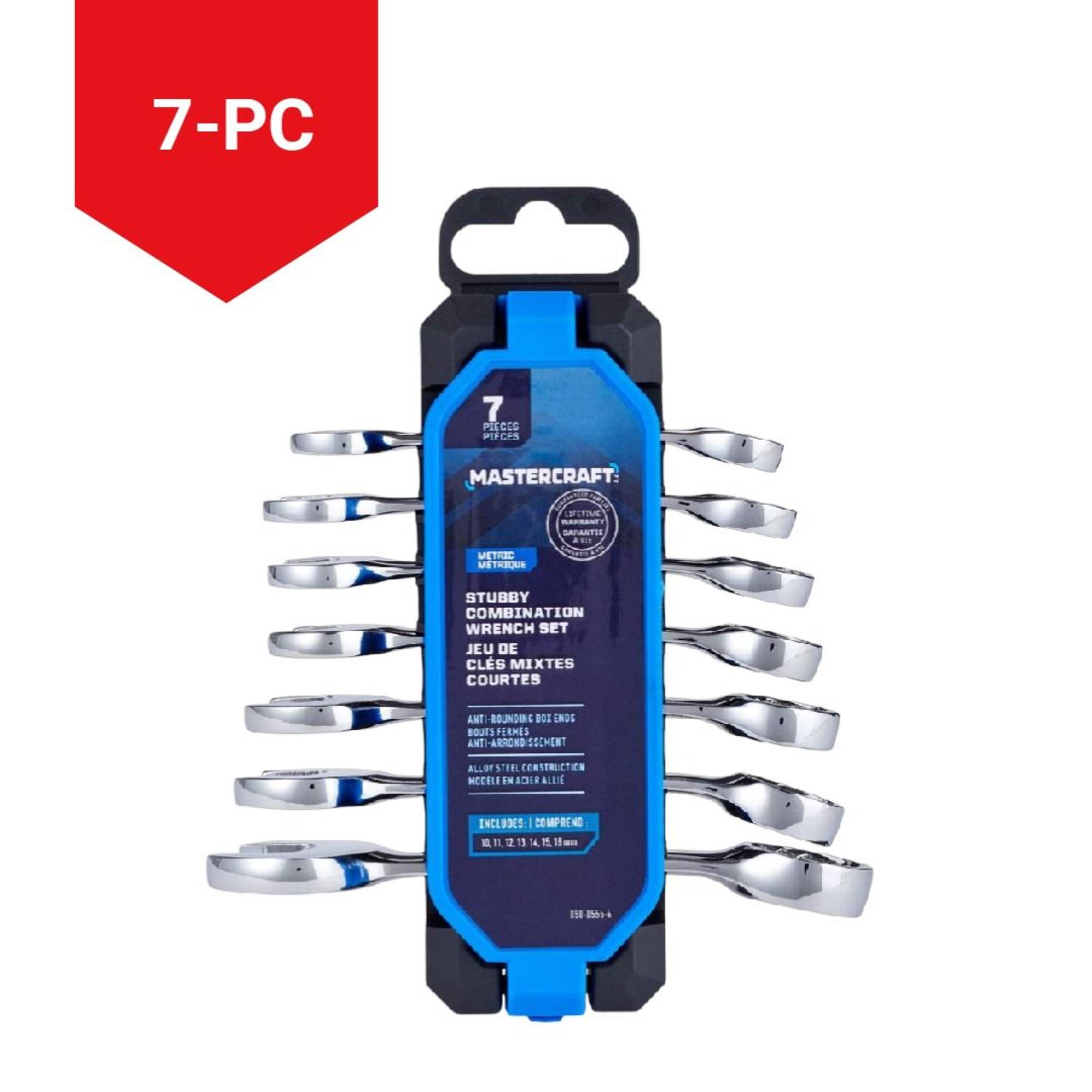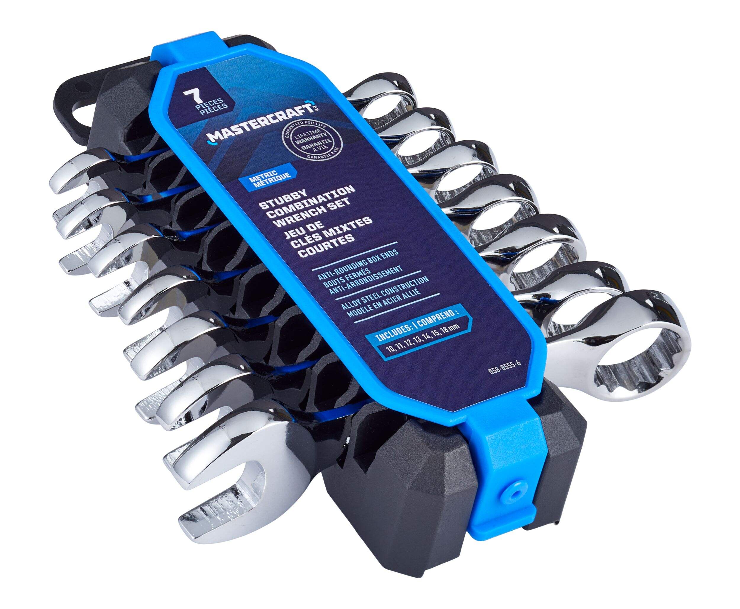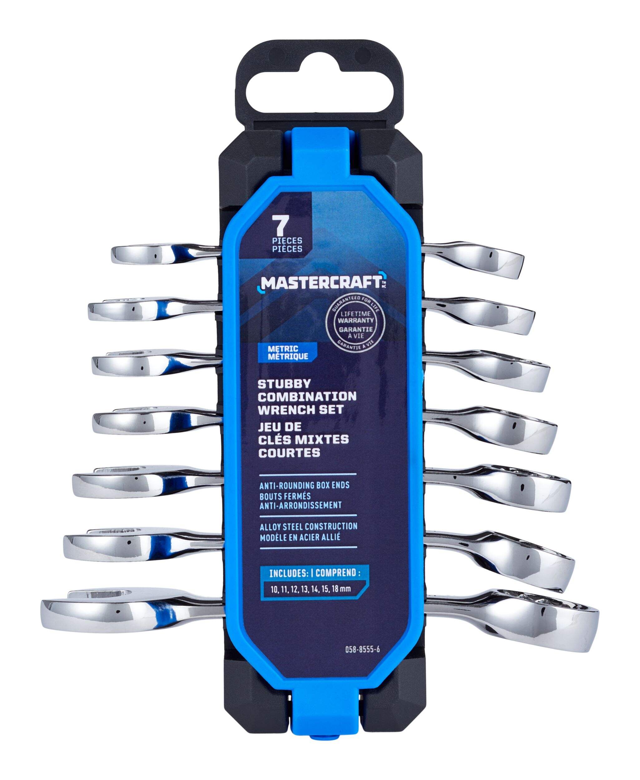 The Mastercraft Metric Stubby Combination Wrench Set is designed for versatility and convenience, featuring multiple short-handled wrenches. Each stubby wrench is crafted from durable alloy steel construction, ensuring strength and longevity. The shorter handles provide easy access to tight spots, which is ideal when working in confined areas. This set is perfect for both professionals and DIY enthusiasts looking to tackle a variety of tasks with efficiency and reliability.