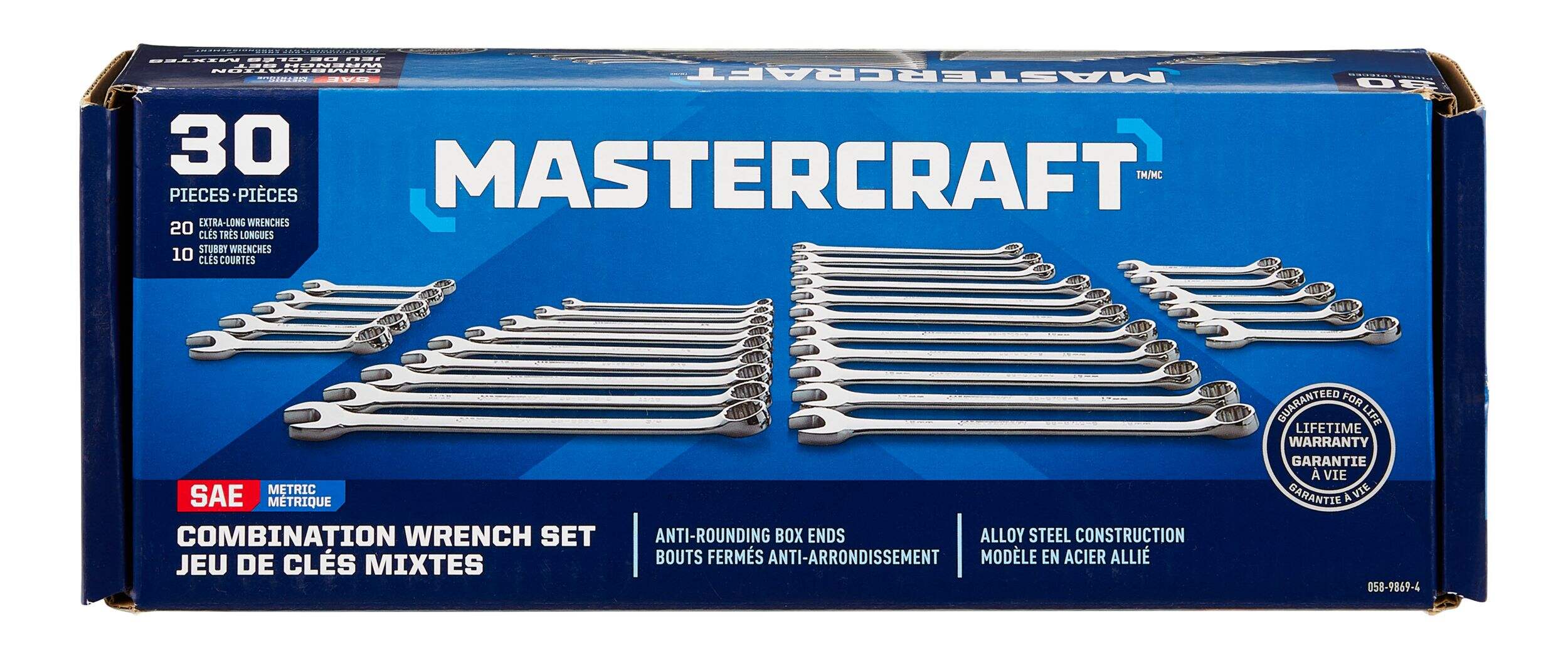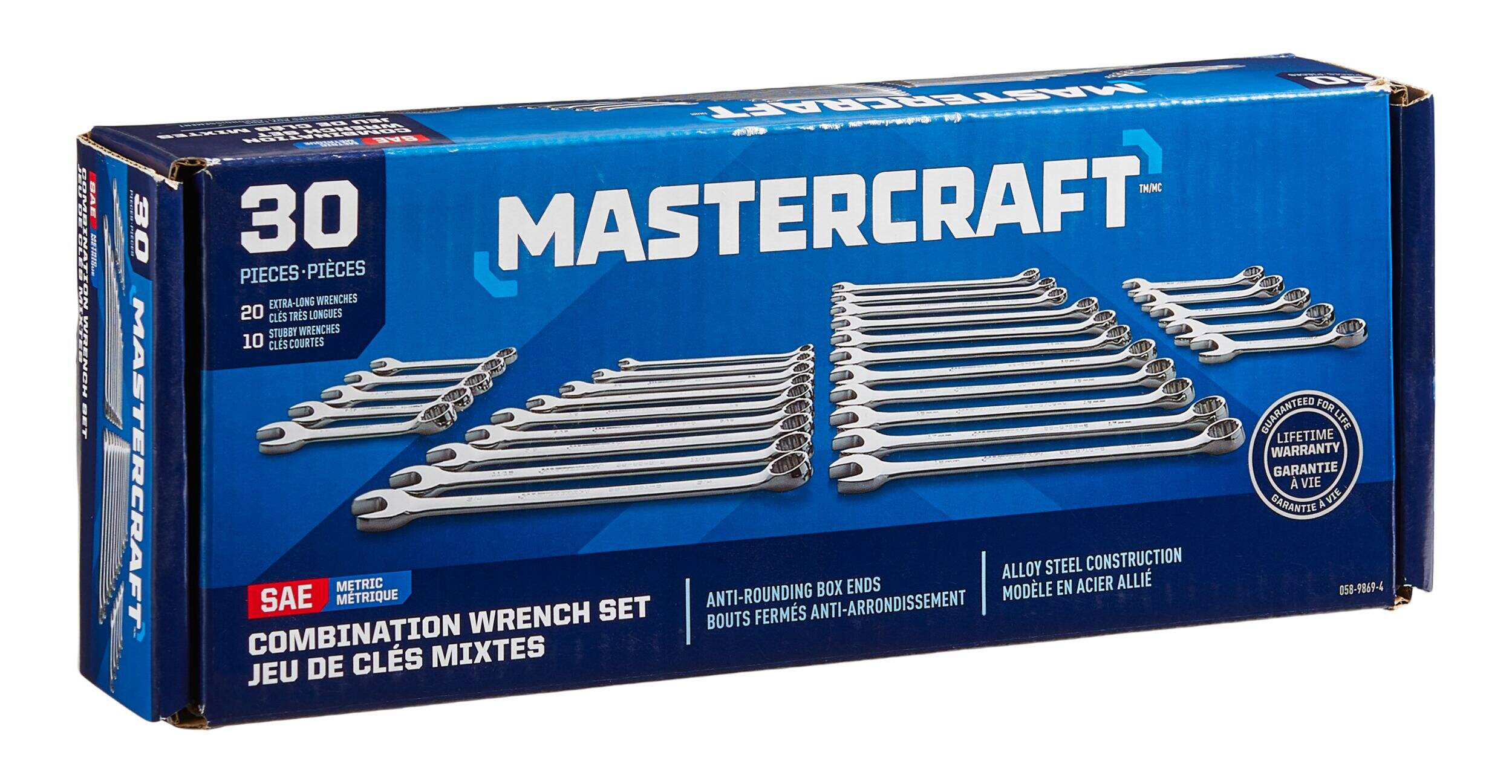 Tackle any project with ease using the Mastercraft 30-piece Combination Wrench Set. With durable chrome alloy steel construction and nickel-chrome plating to resist corrosion, this wrench set is built for long-lasting performance on a wide variety of DIY and general repair jobs.