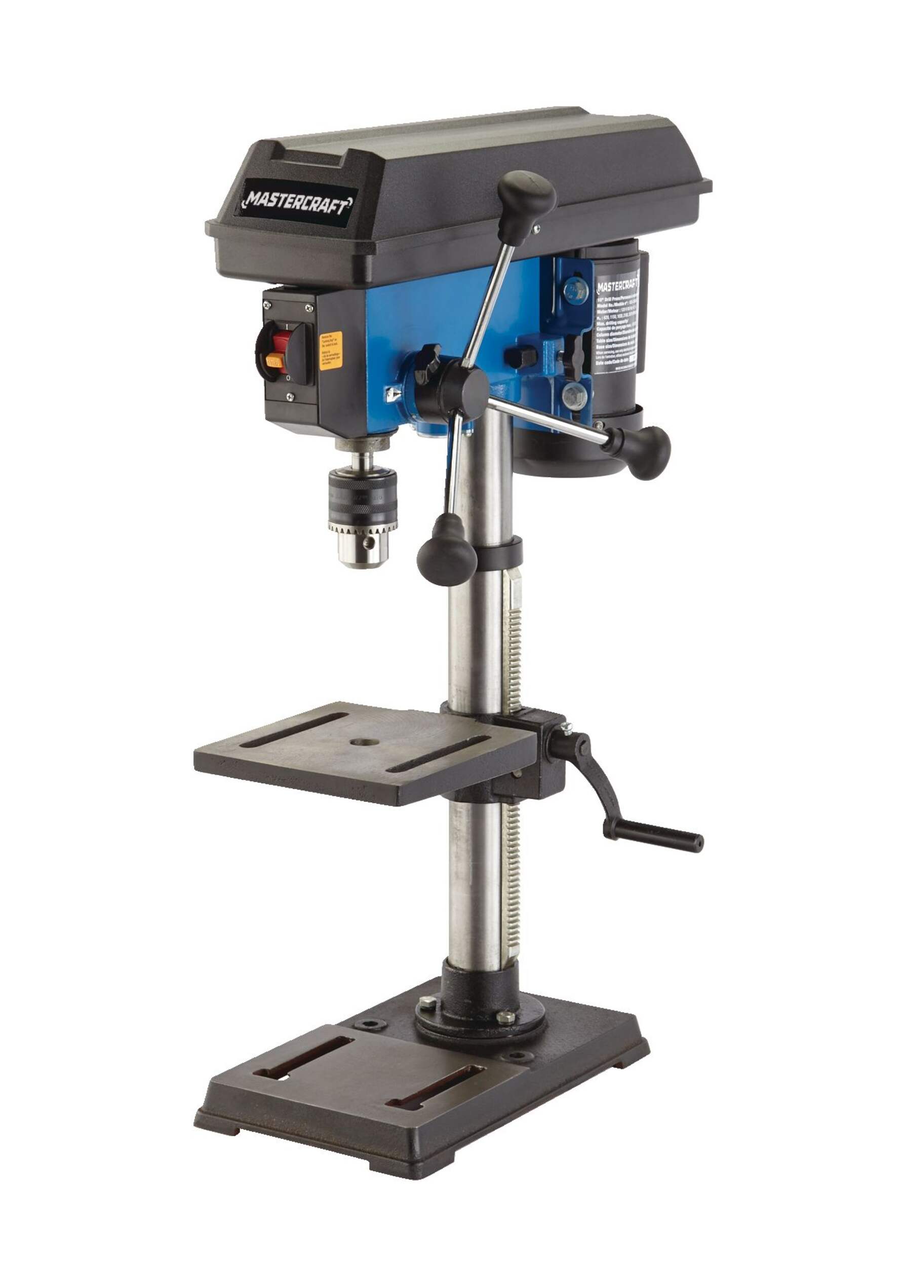 The Mastercraft Drill Press with LED offers a 4.1 Amp motor, 5 speeds and 620-3,070 RPM