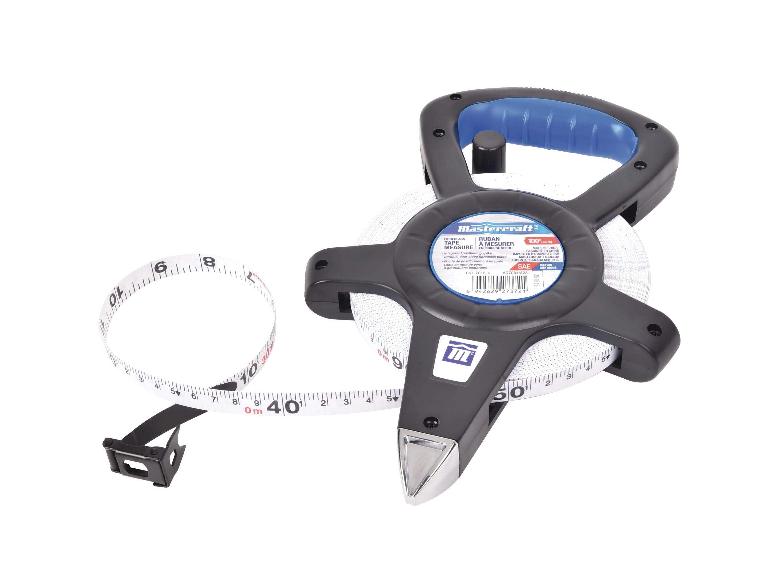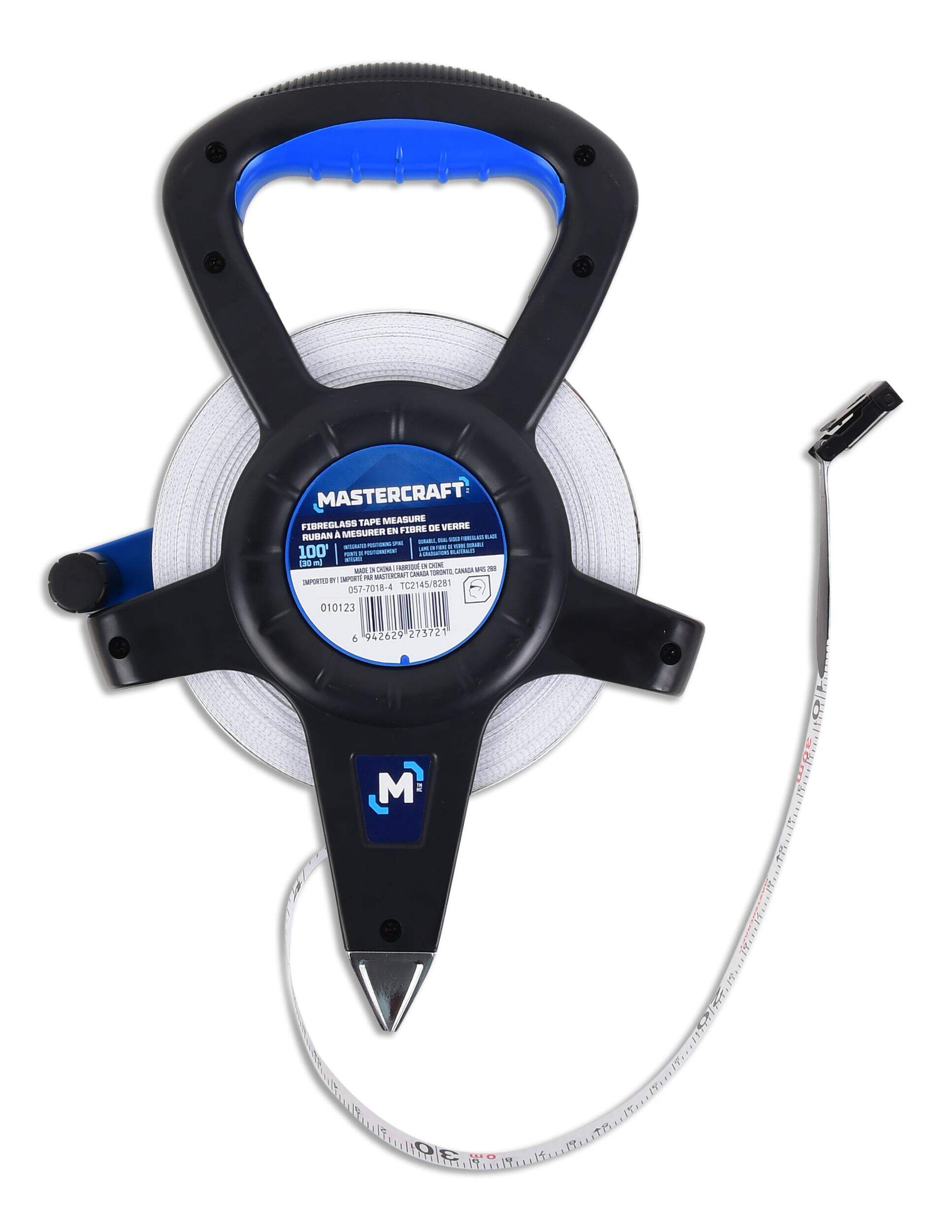 This Mastercraft Fibreglass Tape Measure is made to take on big measuring jobs. Featuring a durable fiberglass blade to withstand the elements and general wear and tear, this tape measure also features a lightweight and durable case, making it the ideal choice for job sites and heavy-duty use both indoors and out. This tape measure is finished with an ergonomic handle for added comfort while you're working.