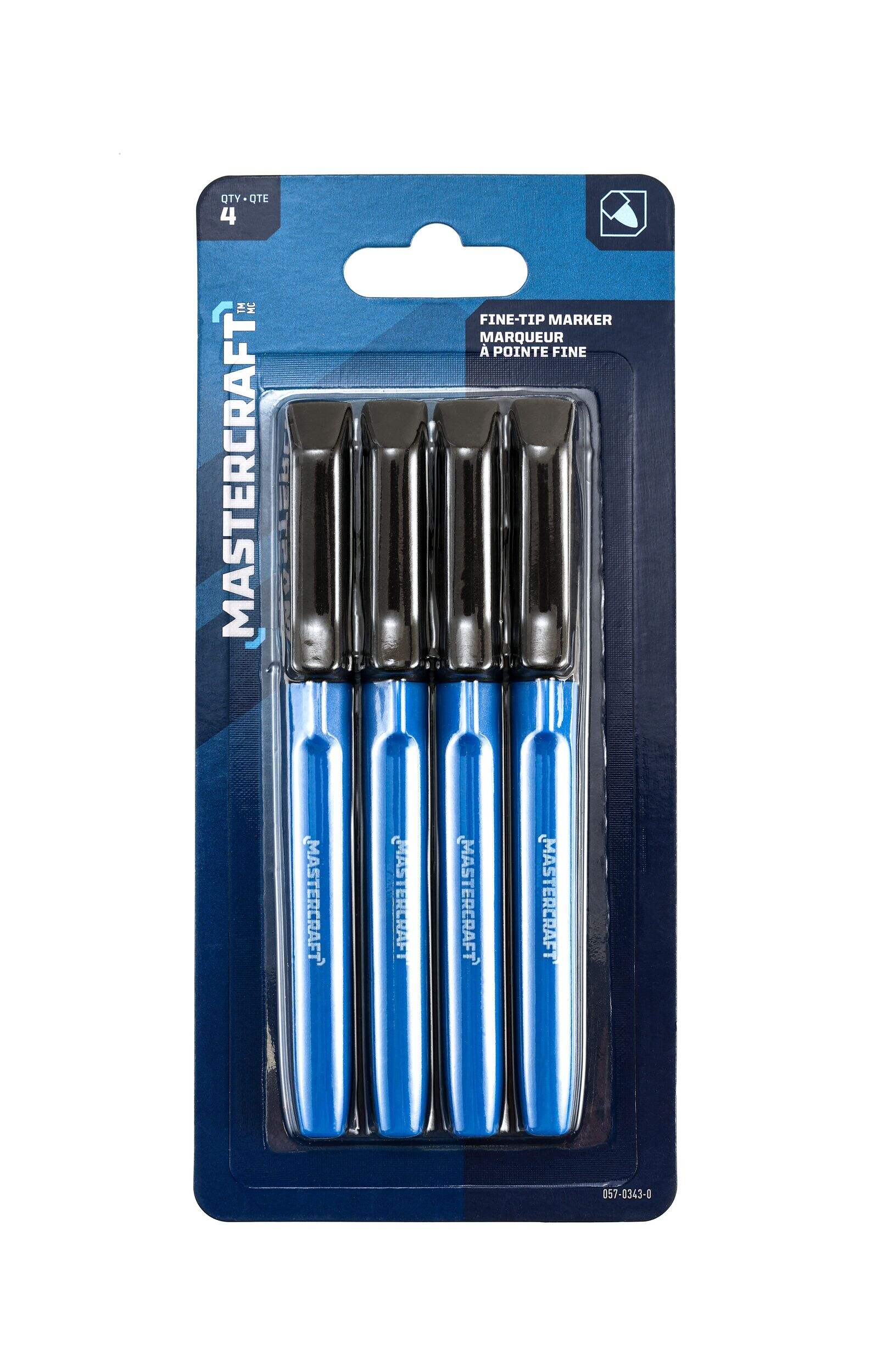 The Mastercraft Fine Tip Markers are designed with black permanent ink, making them ideal for marking hard-to-reach areas such as drilled holes, tight corners, and even for DIY art projects. These versatile marking tools can be used on most wet and dry surfaces, allowing for a wide range of applications. Whether you need to mark intricate spots or express your creativity, the Mastercraft markers provide a reliable solution with their long-lasting permanent ink.