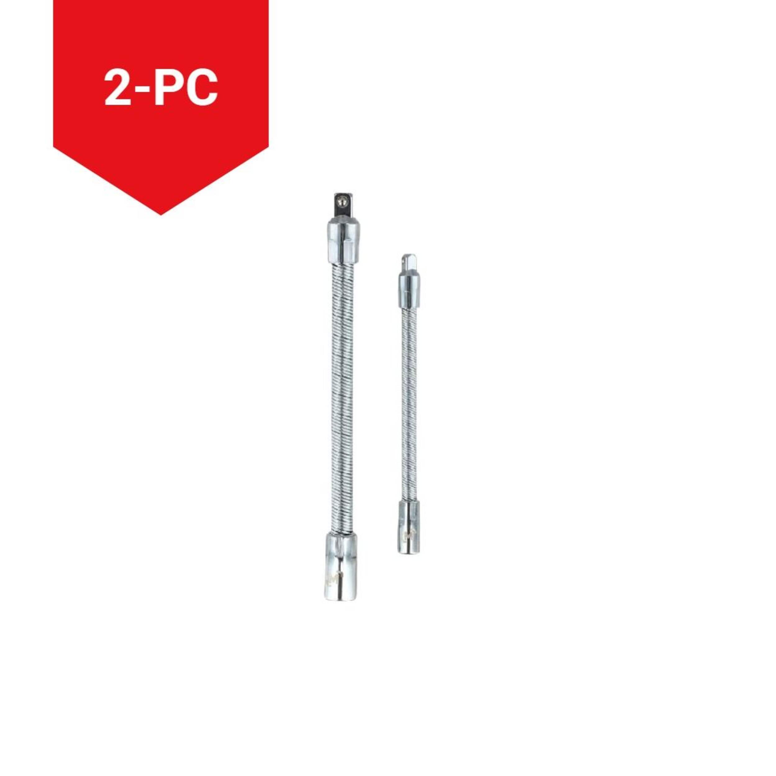 Includes 2 flexible extension bars: 1/4" and 3/8" drive sizes