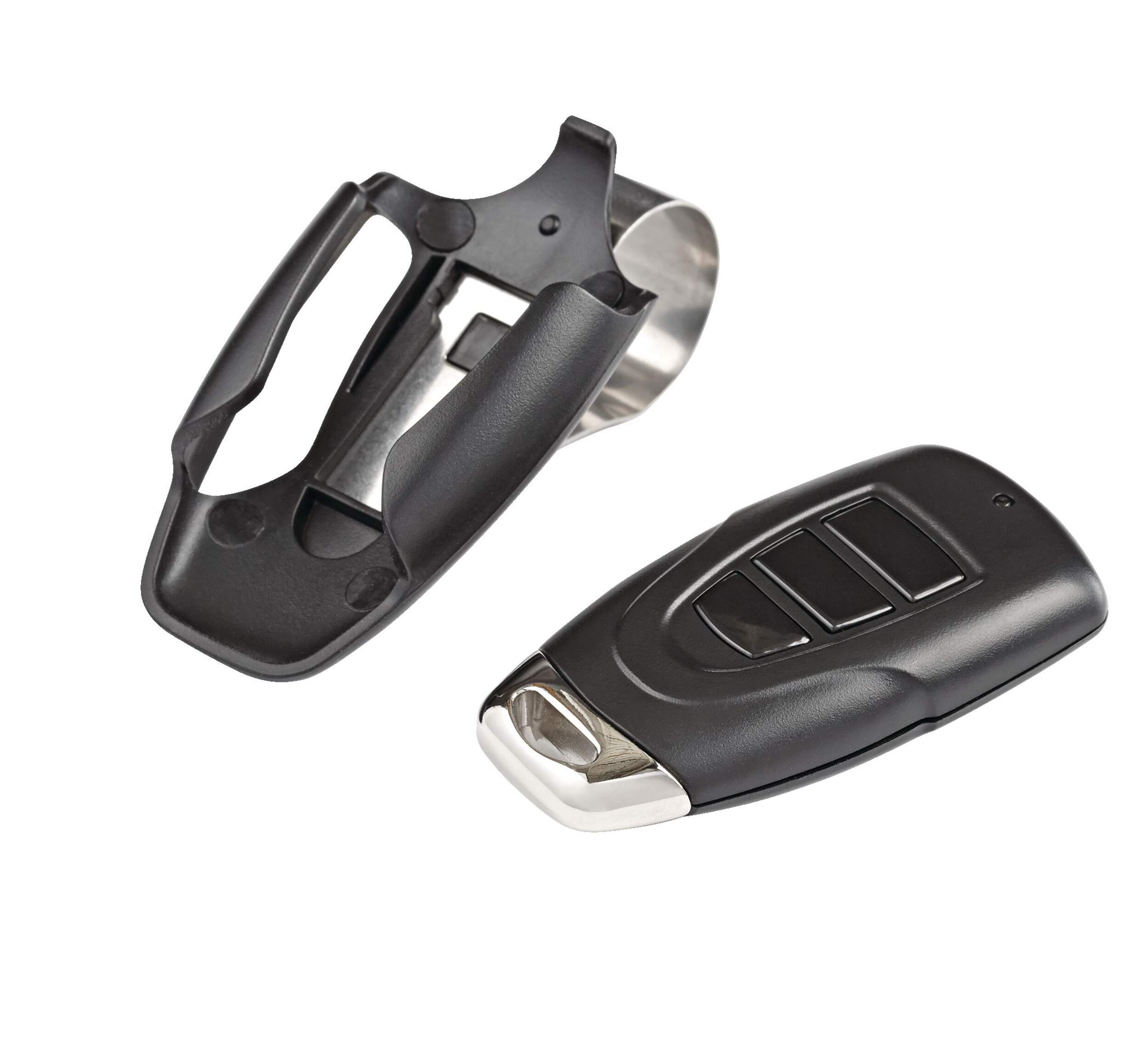 The Mastercraft 3-Button Remote Garage Door Opener is a versatile product that can open up to three doors. With advanced technological features, this compact remote can be programmed with a personal passcode for added security. Featuring a small and compact design, this efficient remote for garage doors can easily fit into your bag or pocket. It has a keychain style that can comfortably be attached to your car keys and a visor clip with the option to mount it inside your car.