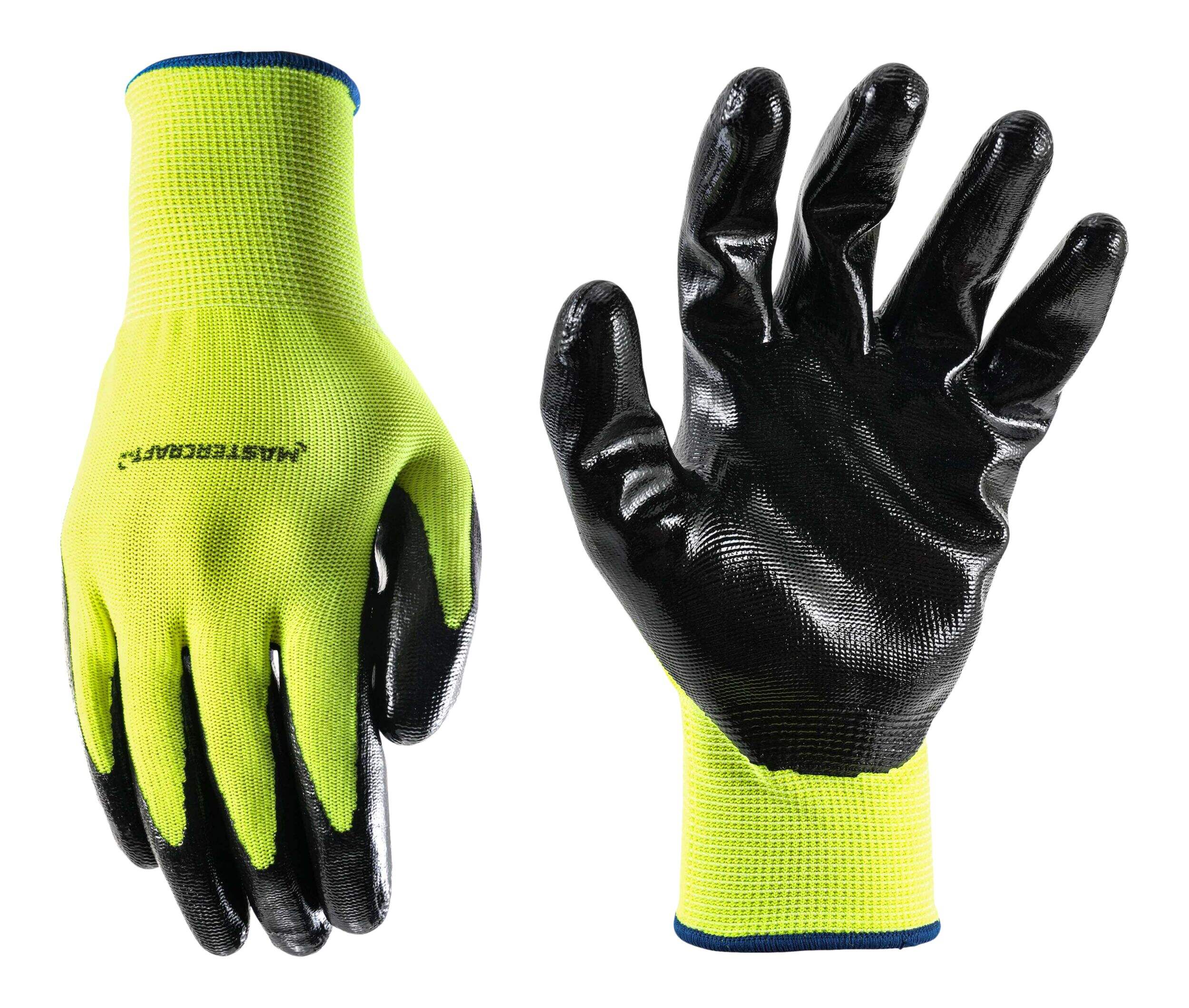 Mastercraft High-Vis Nitrile Dipped Work Gloves with Enhanced Grip, Latex Free, Large, Black, 3 Pairs