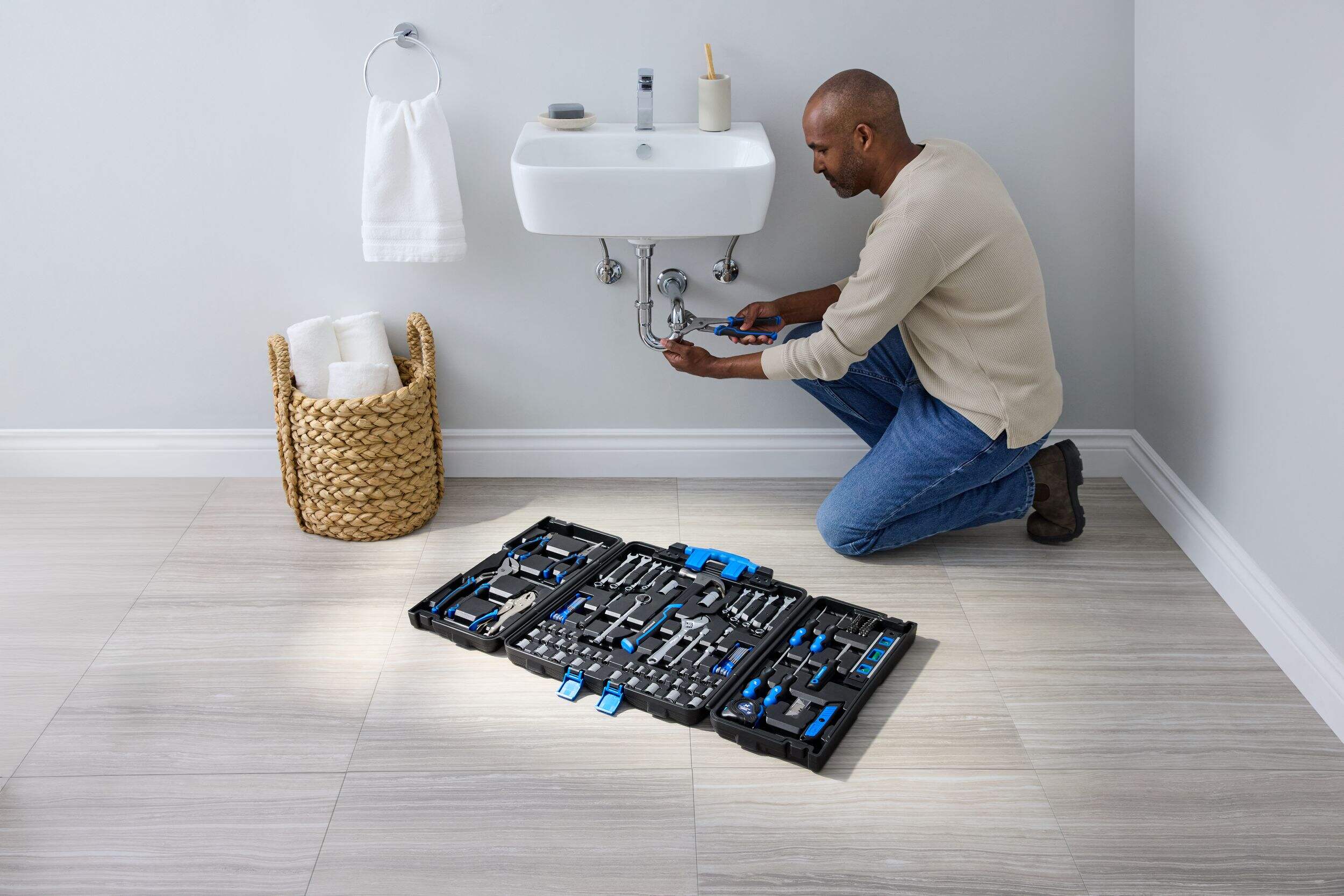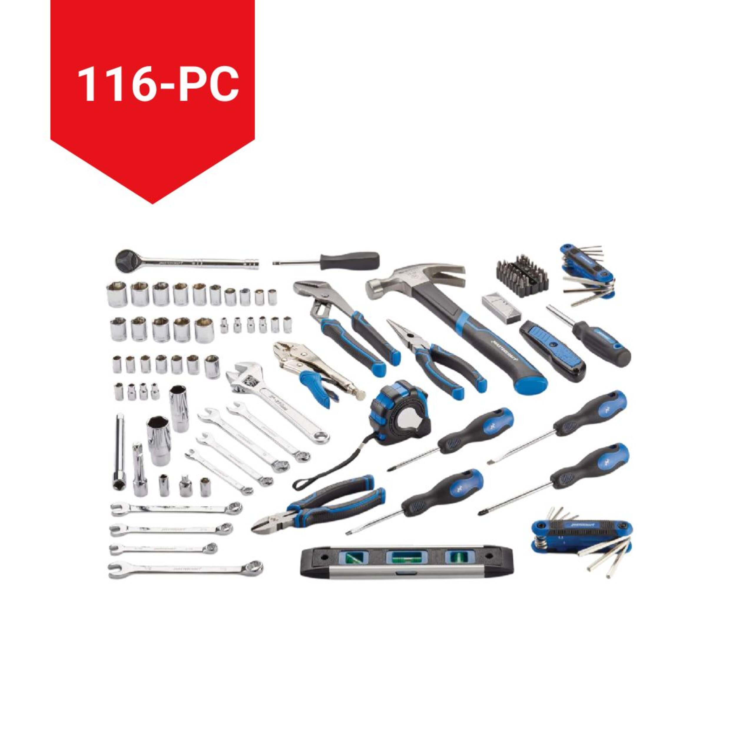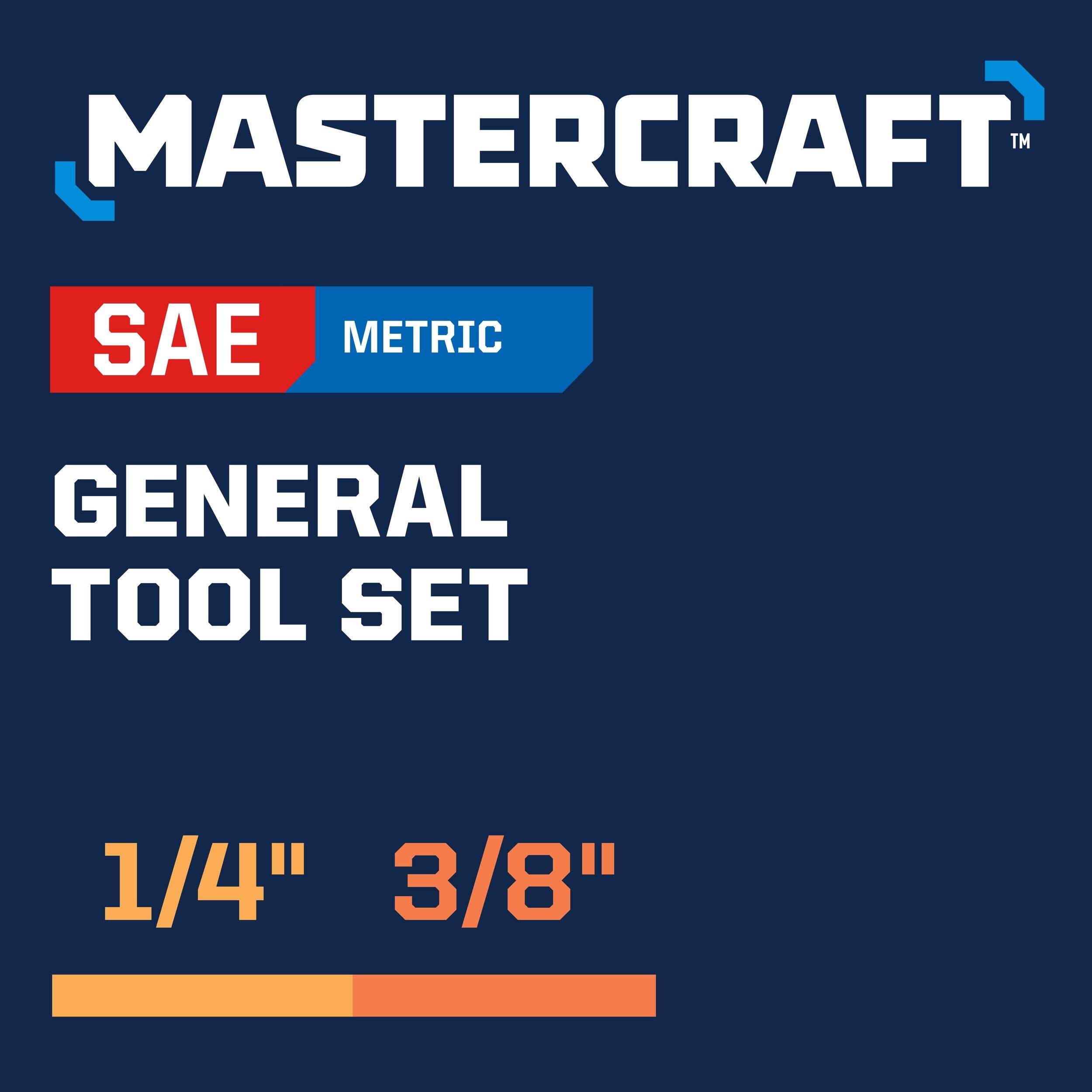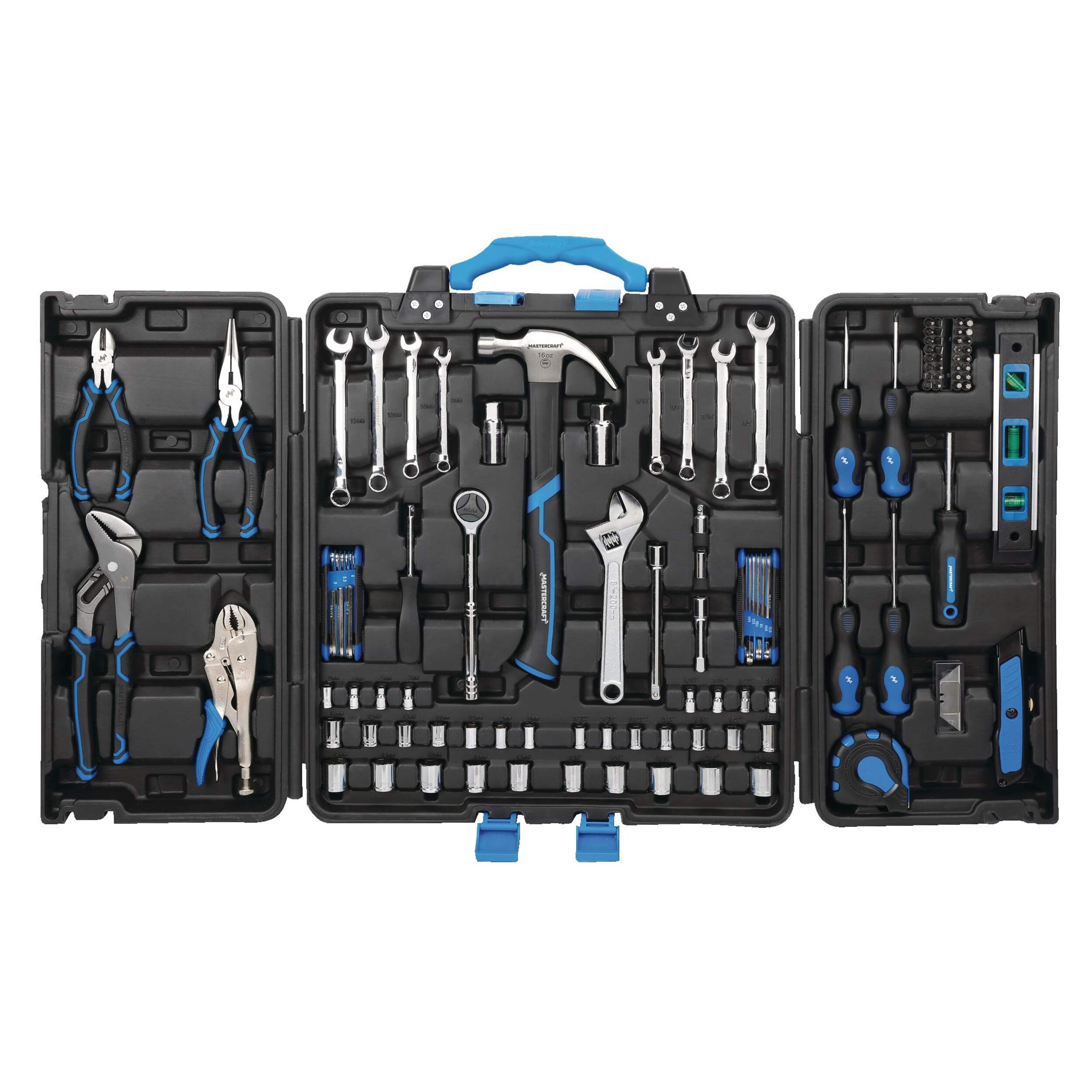 The Mastercraft Home Repair Tool Set is the ultimate mobile repair kit for the DIYer. Perform almost any home-maintenance task with this varied selection of high-quality wrenches, sockets, screwdrivers and much more. Almost every hand tool you need is here for fastening, removing, tightening and adjusting an infinite number of fixtures and appliances in the home and garage. This one-stop workshop comes housed in a heavy-duty, blow-moulded carrying case for added convenience, protection and portability.