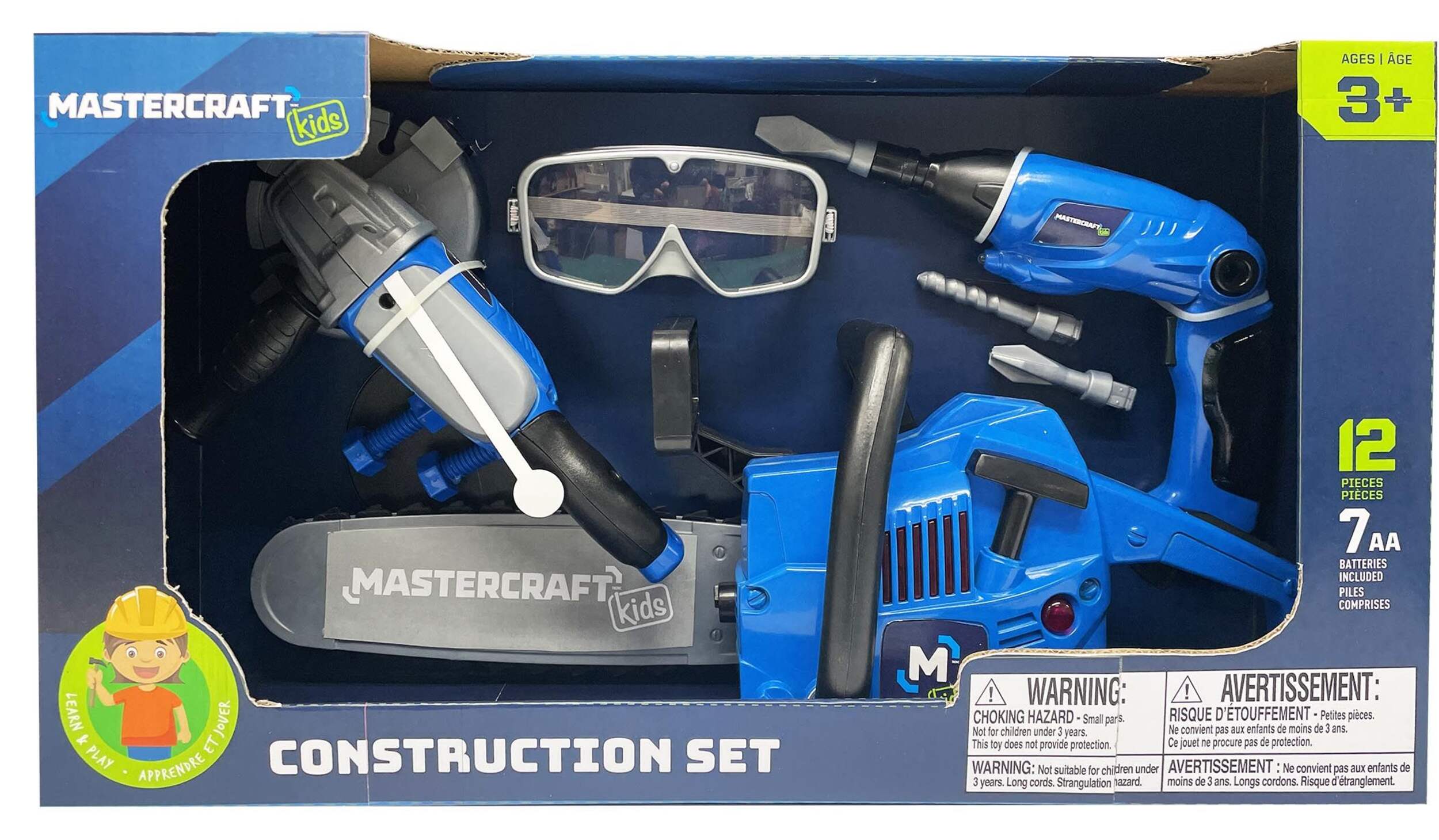 The Mastercraft Kids Learn & Play Pretend Construction Toy Set with 3 Pieces makes for an engaging roleplay collection ideal for imaginative kids who love to mimic grown-up jobs. Budding builders will enjoy hours of pretend play as they safely imitate mom and dad with the durable, long-lasting toy tools included in this set. The toy set contains a power chainsaw, a bendable screwdriver with 2 interchangeable bits, and an angle grinder with goggles. Be forewarned, however, that the set’s small parts can pose a choking hazard for children under 3 years of age.