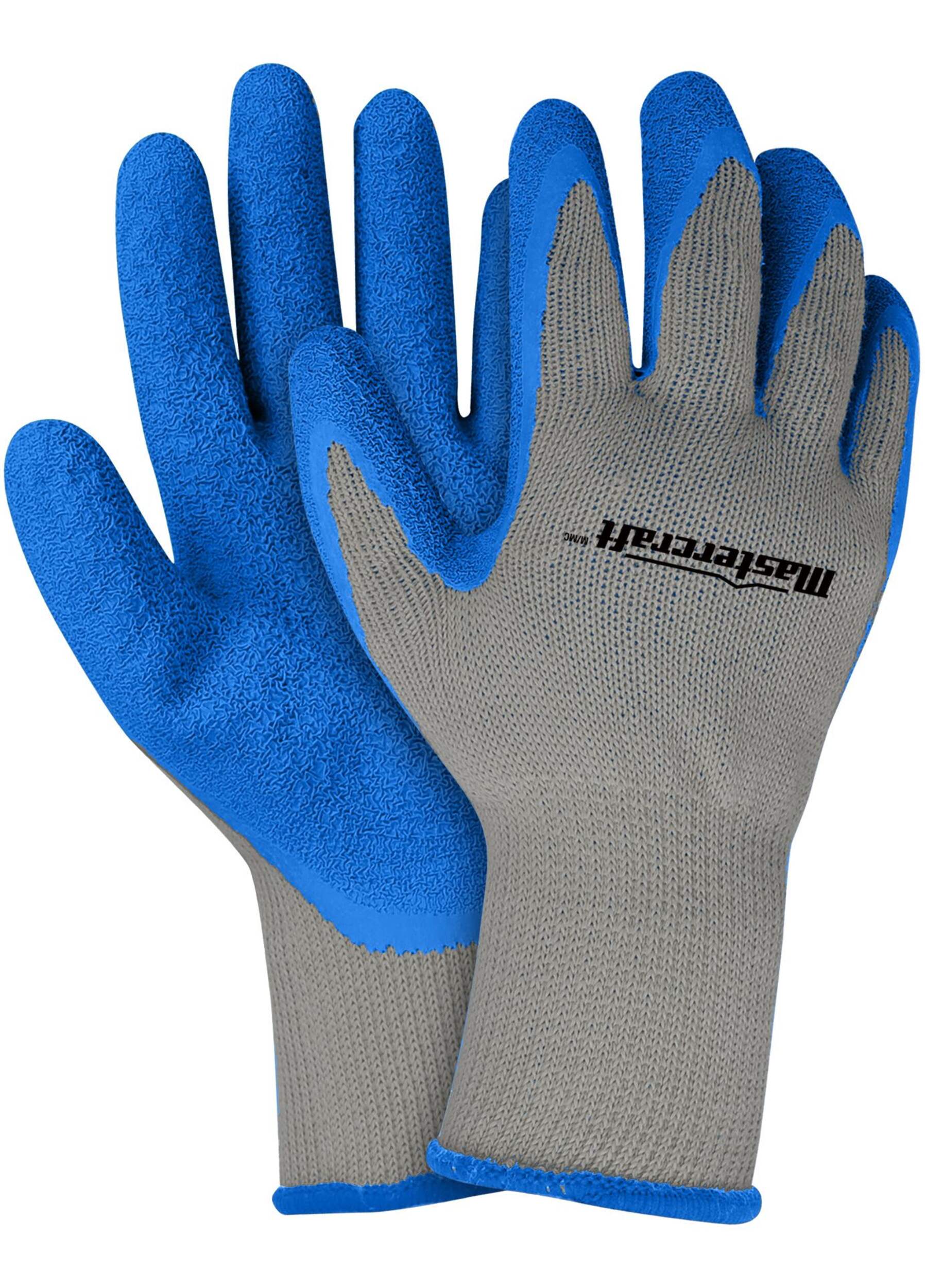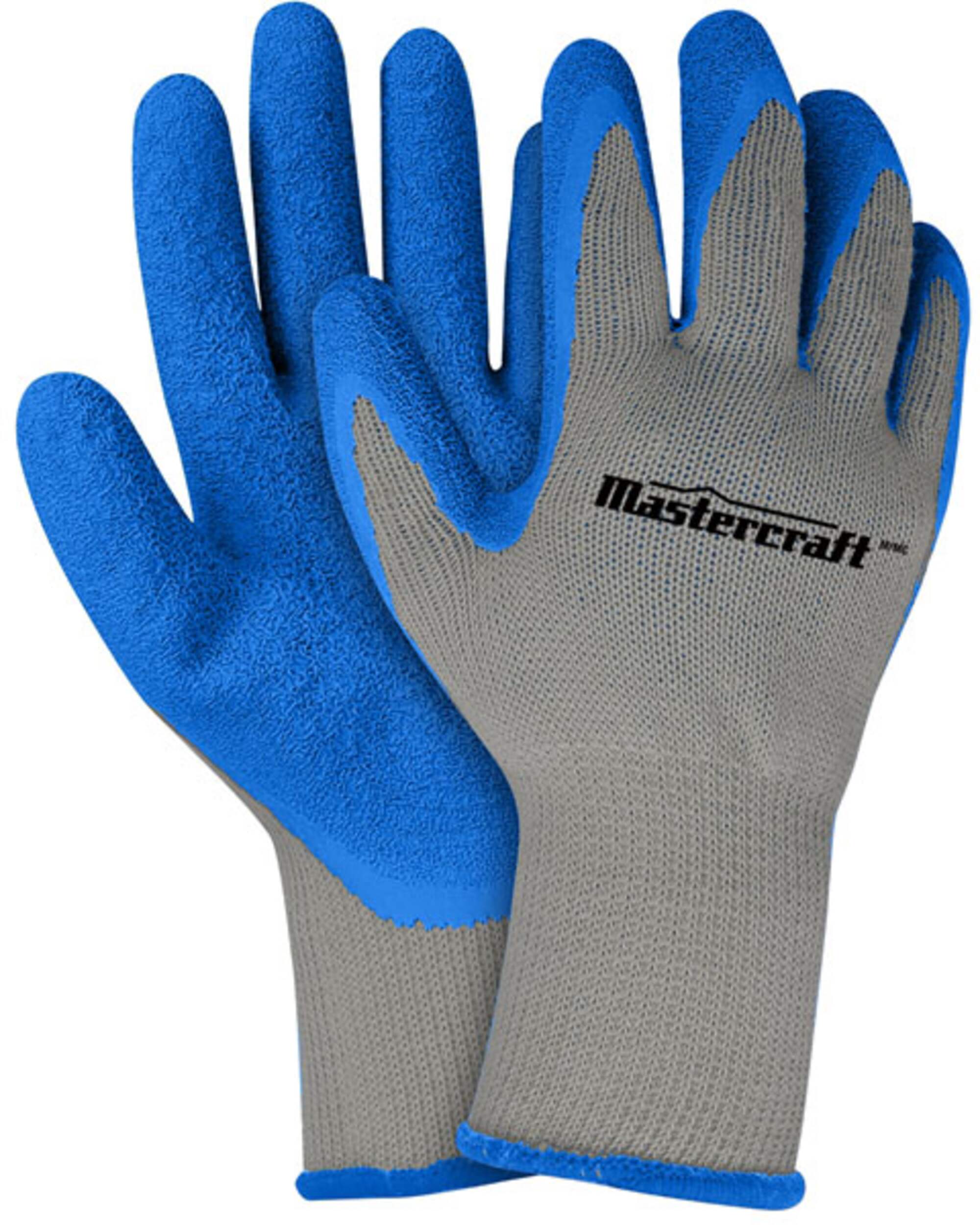 The Mastercraft Latex Elastic Cuff Gloves provide great abrasion resistance and wet/dry grip for heavy duty work. With high flexibility and comfort, these white and blue work gloves help prevent fingerprints while handling smooth surfaces. Great for construction, manufacturing, shipping, carpentry, concrete and other demanding applications, these gloves are also hand and machine washable. Available in multiple sizes, the Mastercraft Latex Elastic Cuff Gloves are an ideal flexible, durable and comfortable pair of gloves for tough jobs.
