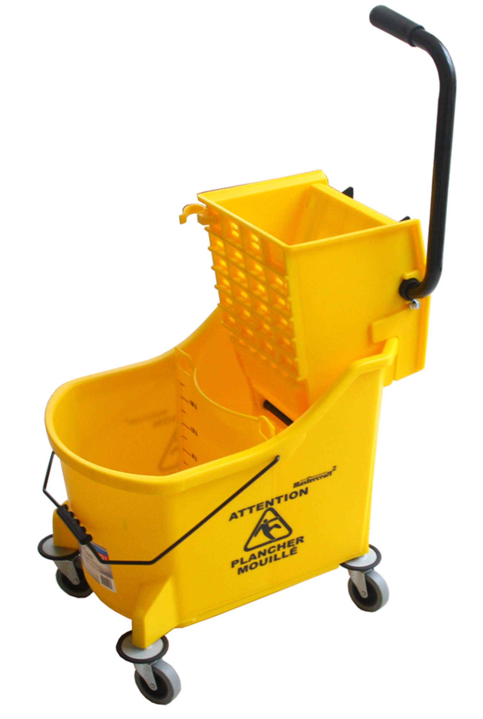 High-efficiency side-press wringer transfers pressure to the middle of the bucket and accommodates a variety of mop sizes