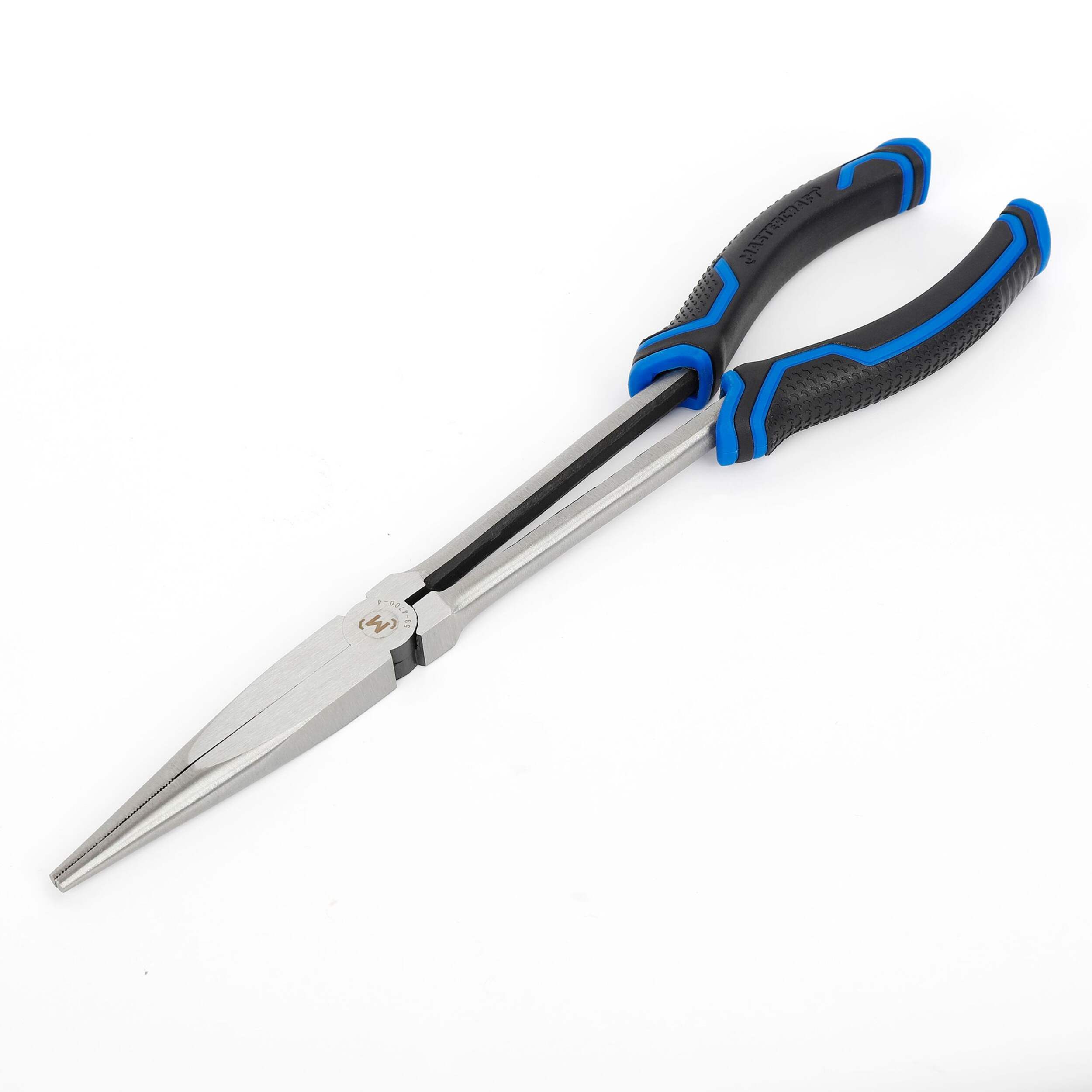 The Mastercraft Long-Reach Long-Nose Pliers help you make cleaner, faster cuts. A clear coat of anti-rust finish allows the pliers to resist corrosion and rust, extending their overall tool life. They are ideal for projects in hard-to-reach areas, and feature comfort grips to achieve high levels of precision. Lastly, these long-nose pliers feature a set of double-injected moulded handles that reduce the slippage while you work, preventing costly errors when you’re on the job.